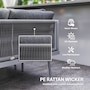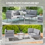 Create an inviting outside with this Outsunny wicker patio sofa set, including two single-arm loveseats and a matching coffee table. Steel frames add a strong core to the set, wrapped in stylish plastic wicker strings. Thick seat and back cushions on each outdoor couch offer optimal comfort, with removable covers for easy cleaning. A steel-top table is a stylish and tough addition to deck furniture set.Features: