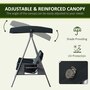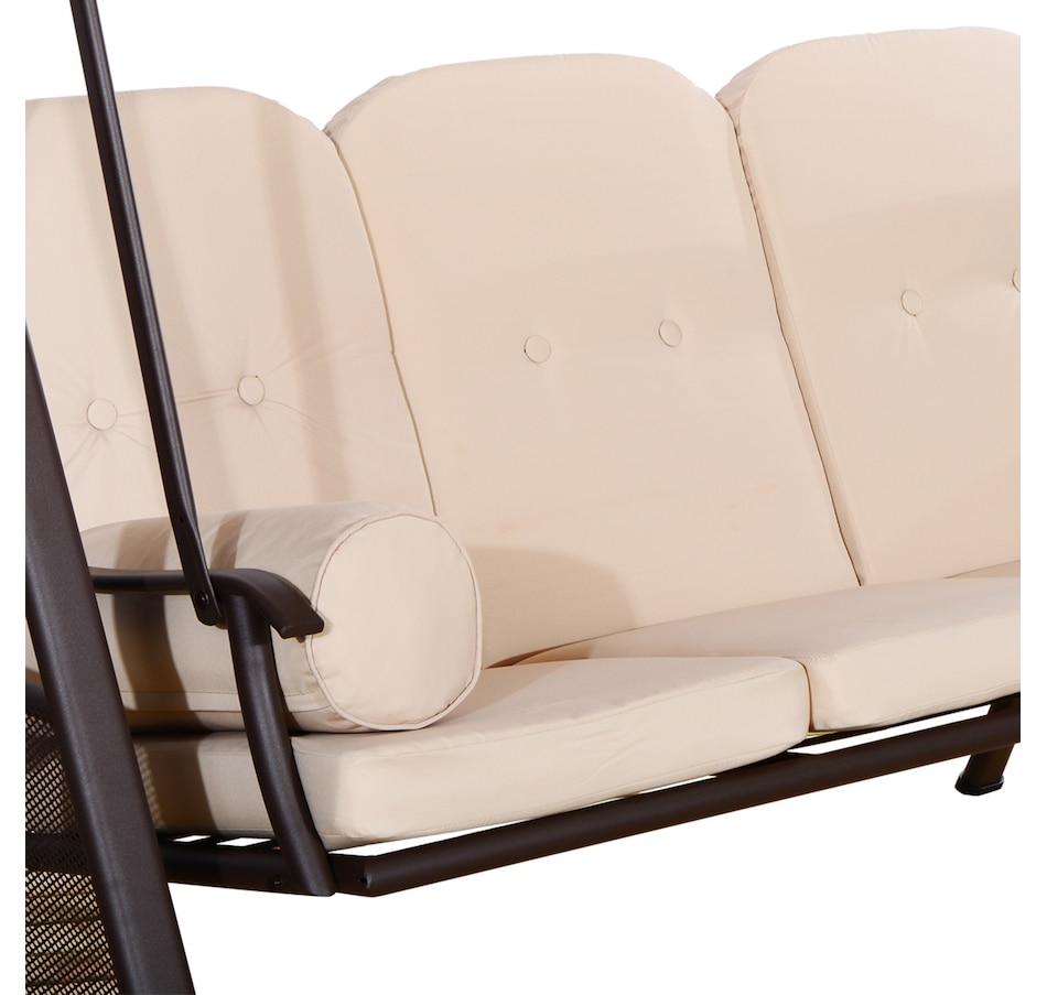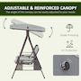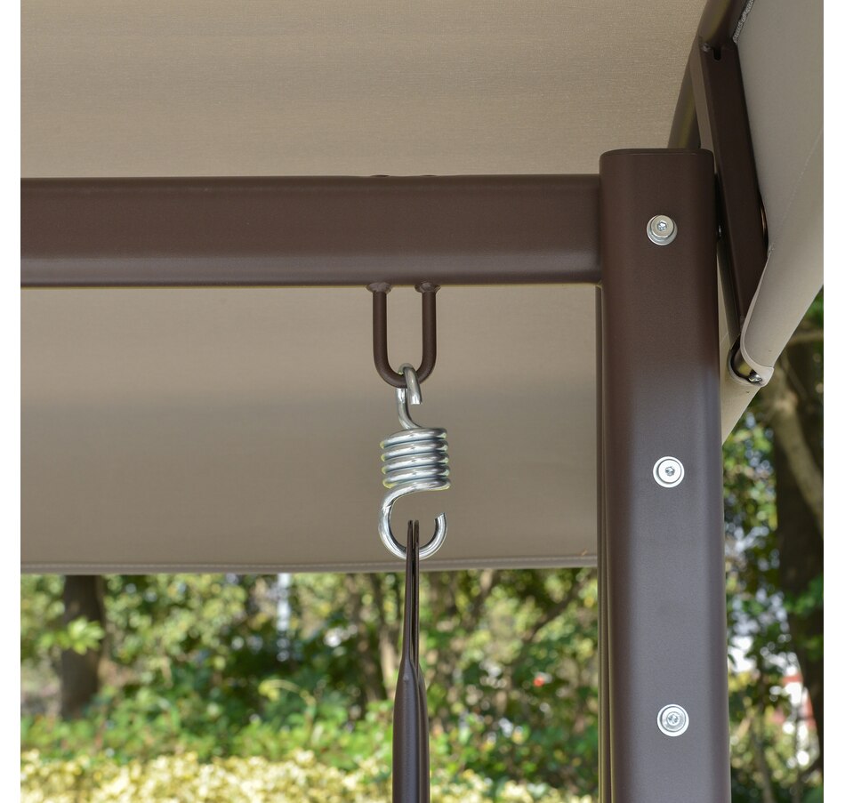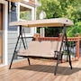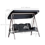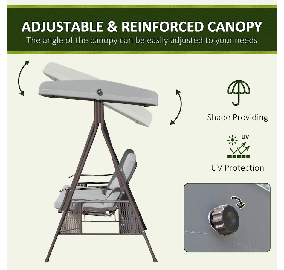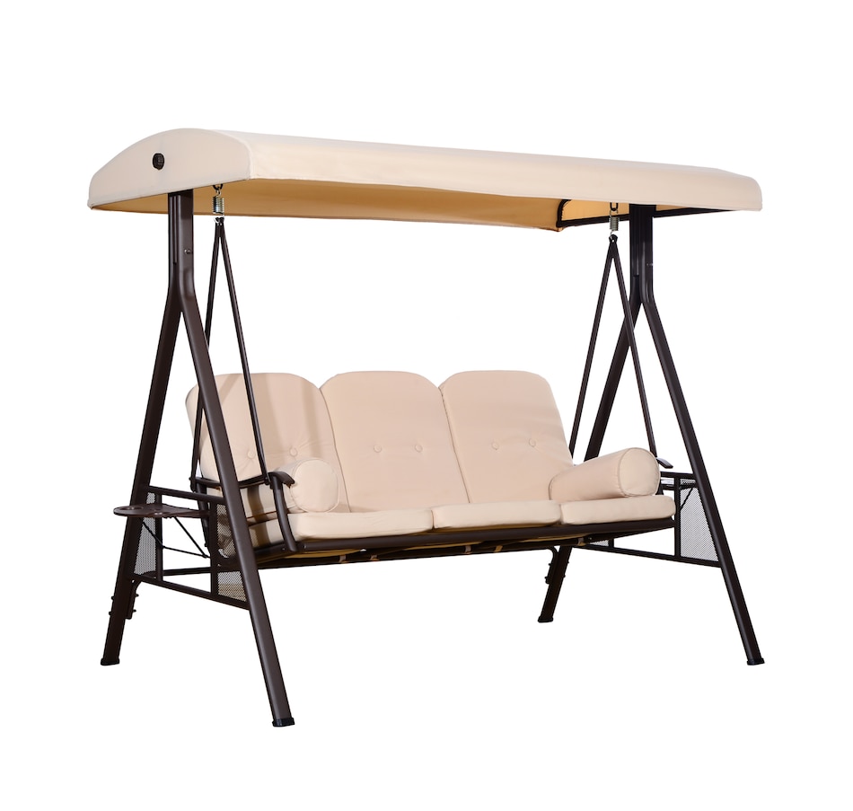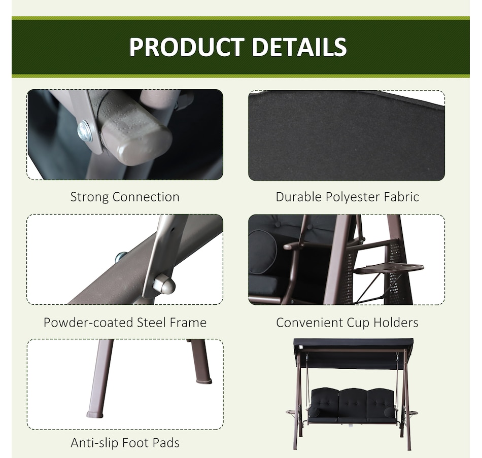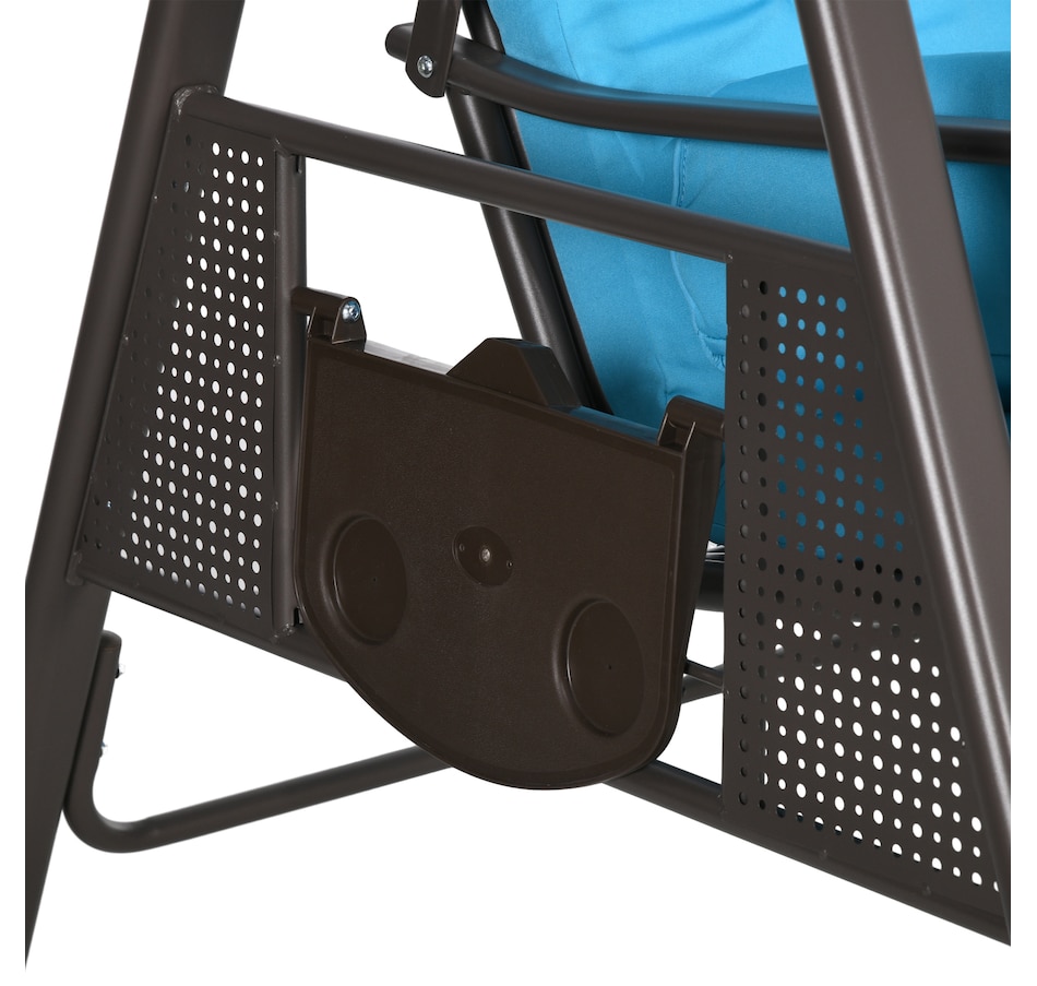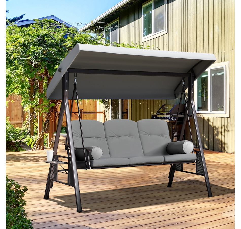 Relax and enjoy with friends and family in outdoor swing chair for adults from Outsunny. The 3 seat swing frame is made of powder coated steel with a polyester canopy for extra shade. The adjustable outside swing tilt canopy provides maximum shade, foldable cup holders for convenience, and two extra round pillows for added comfort. Sit back, grab your favorite drink, and let the summer breeze take you away in this relaxing Outsunny covered swing.