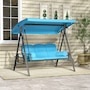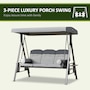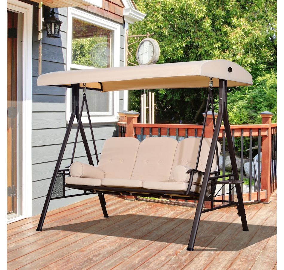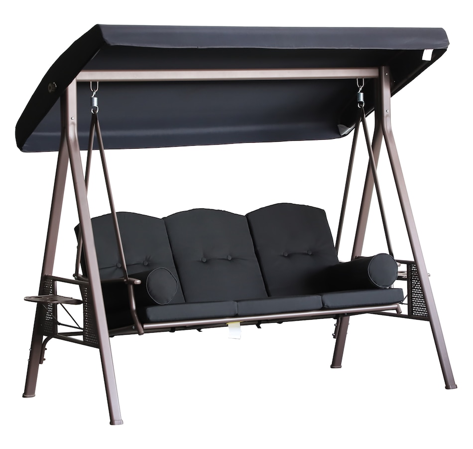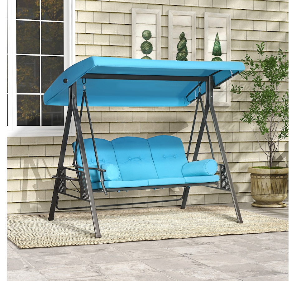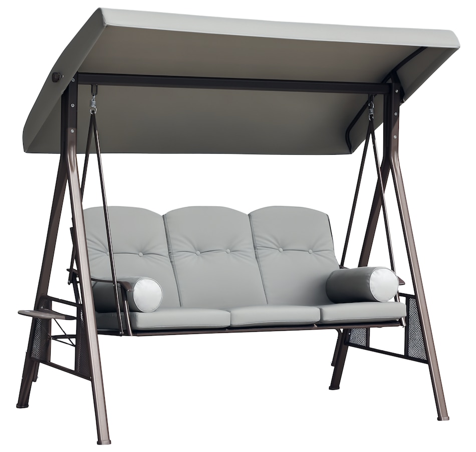 ● Heavy duty freestanding outdoor swing comfortably holds 3 people for lounging experience