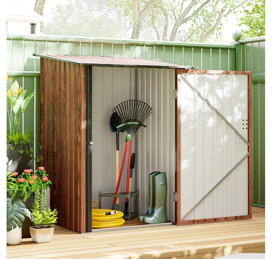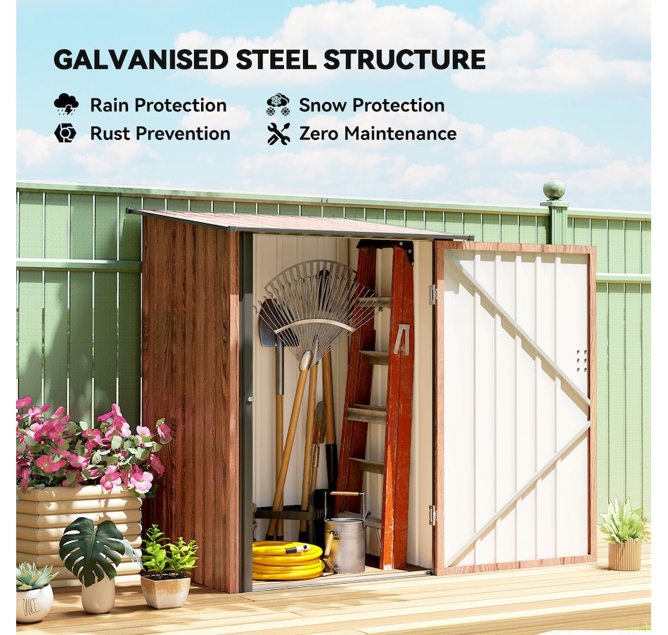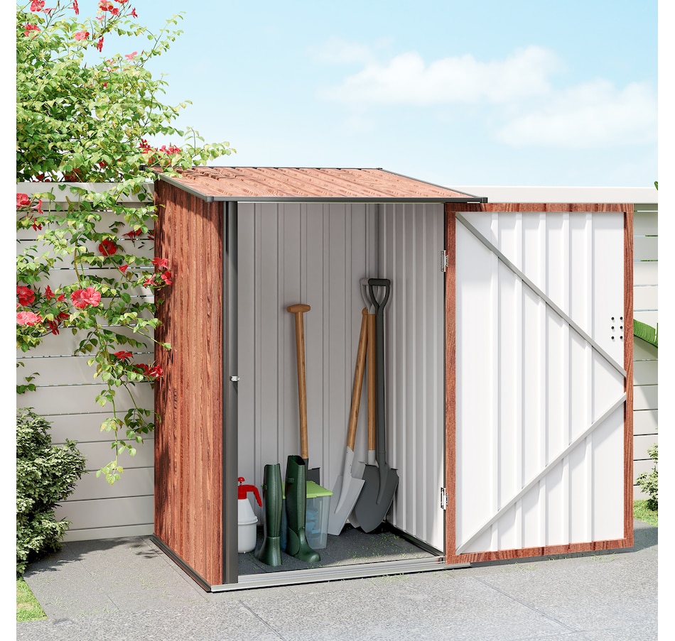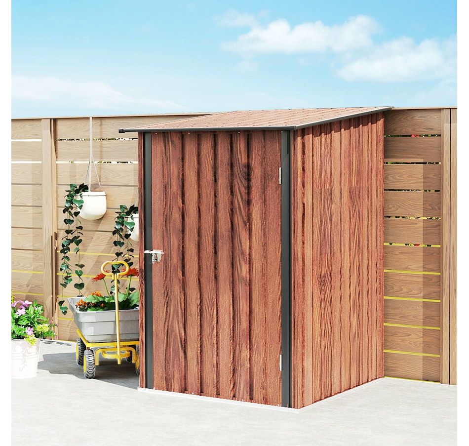 Easily add storage space and value to your property with a garden shed house from Outsunny. The metal garbage shed outdoor has distinct advantages over traditional wooden models that make it a much more attractive choice for purchase. If you've been looking for a way to add much-needed storage space to your property but don't want to deal with the cost and upkeep of a traditional wooden model, this backyard shed can be a wonderful choice.Features: