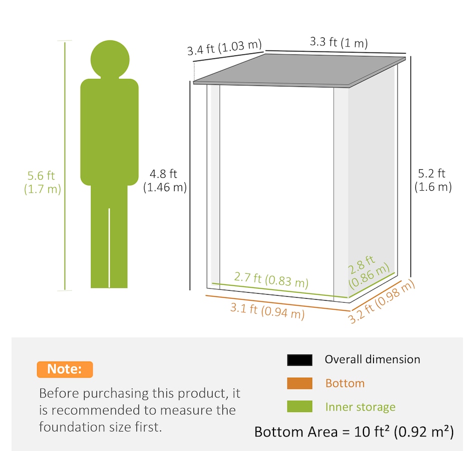 ● Bottom Size: 37"W x 38.6"D (94 x 98 cm)/9.9ft² (0.92m²);