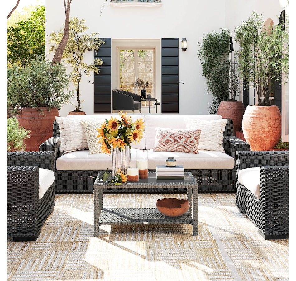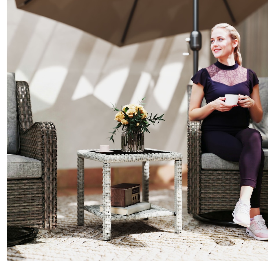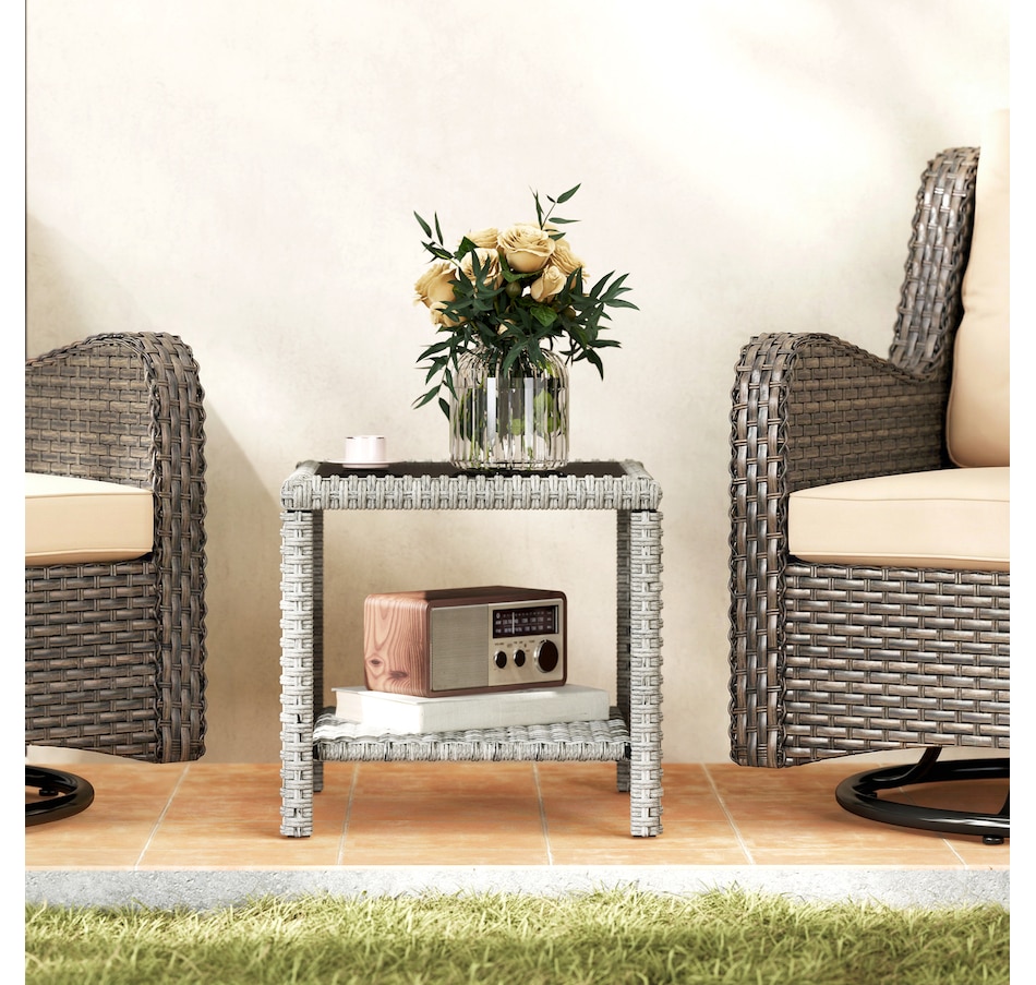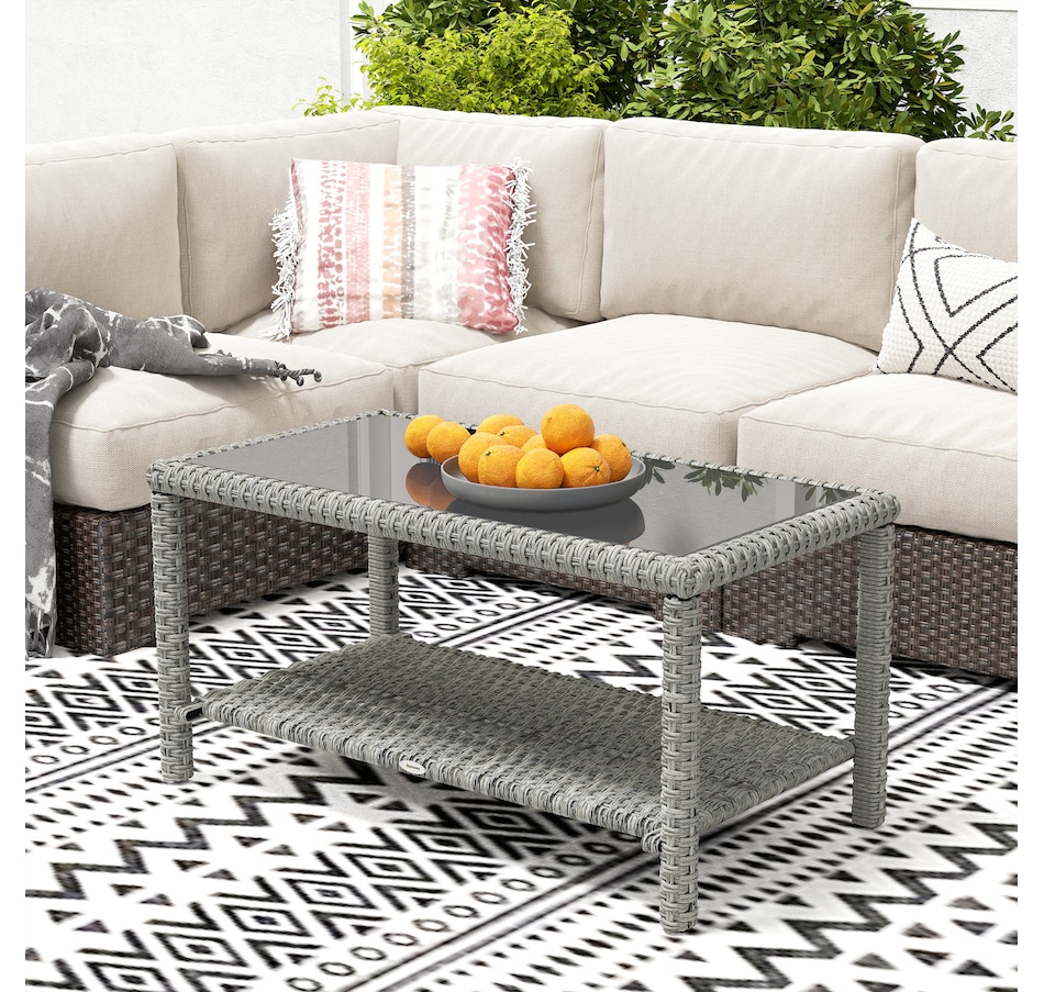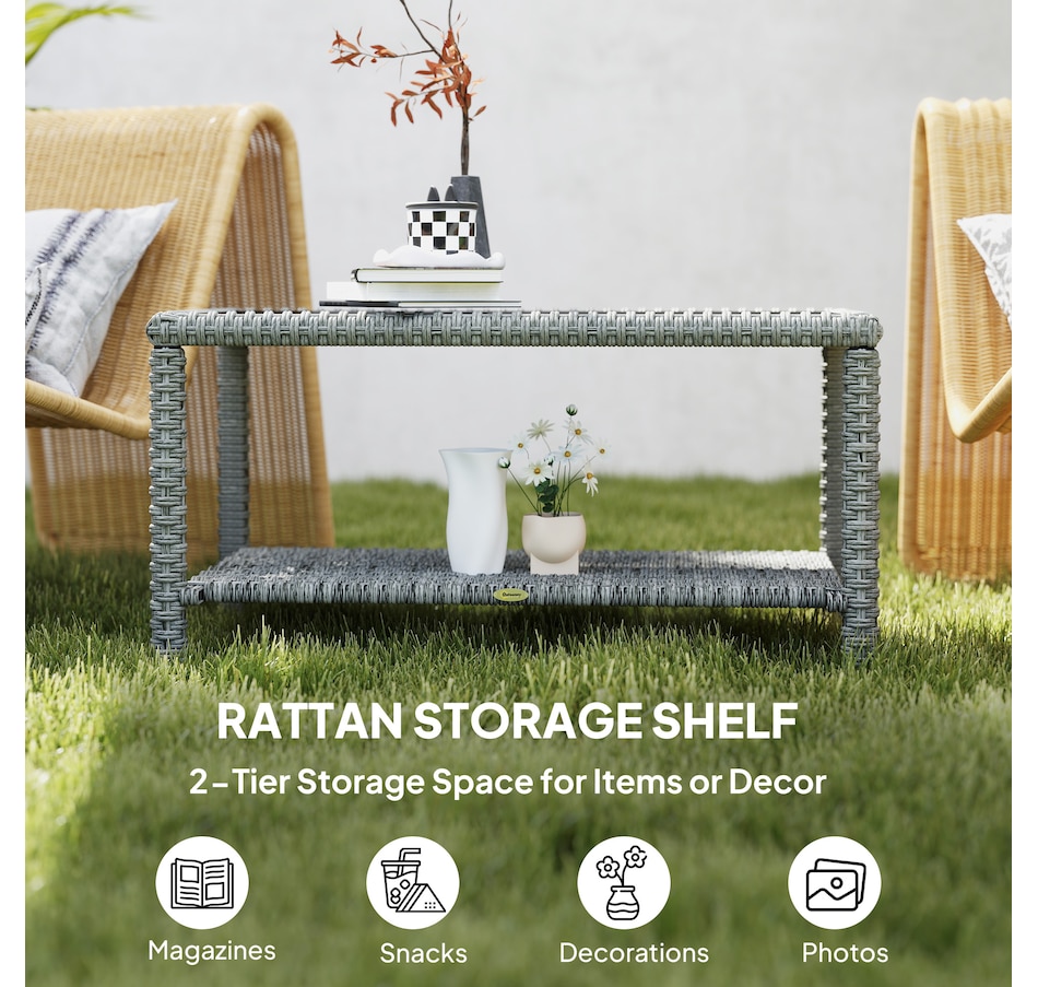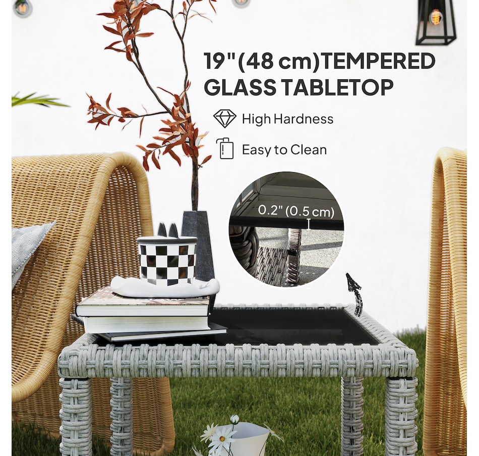 Discover the charm and versatility of the Outsunny Rattan Coffee Table. A chic staple for any home, this low table blends seamlessly from patio to poolside with its elegant rattan design. Enjoy a clutter-free zone with its double-layer glass coffee table with storage, all supported by a robust steel frame. Elevate your living space effortlessly!