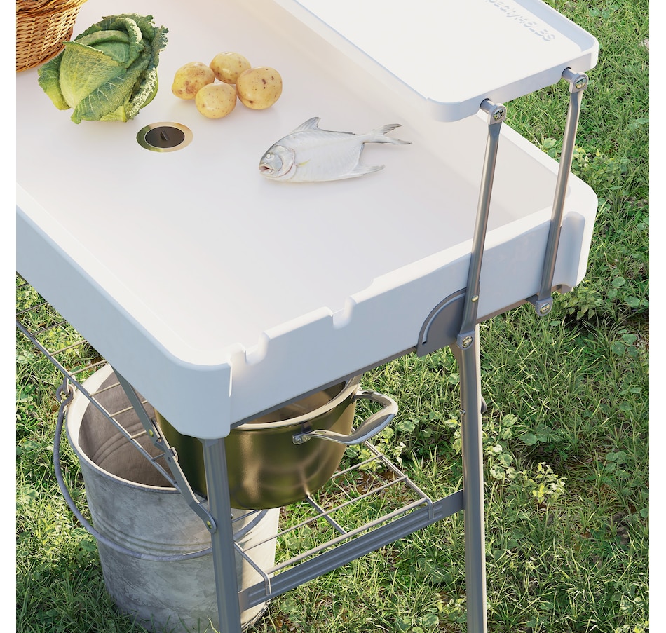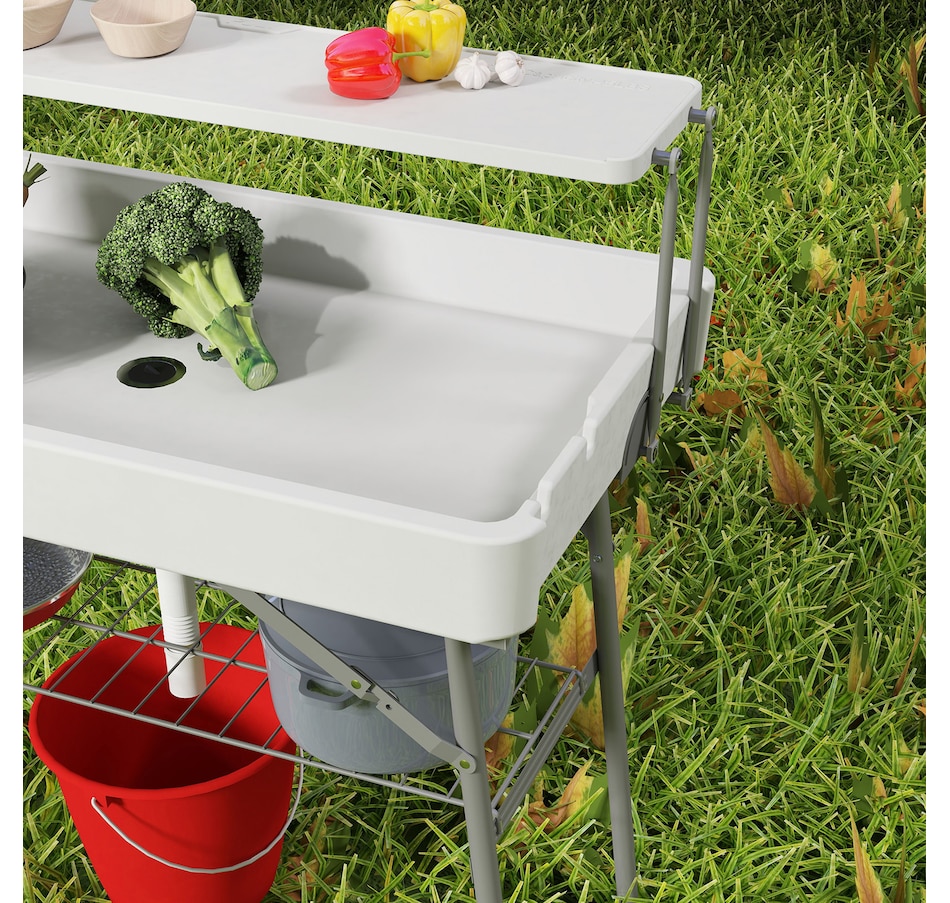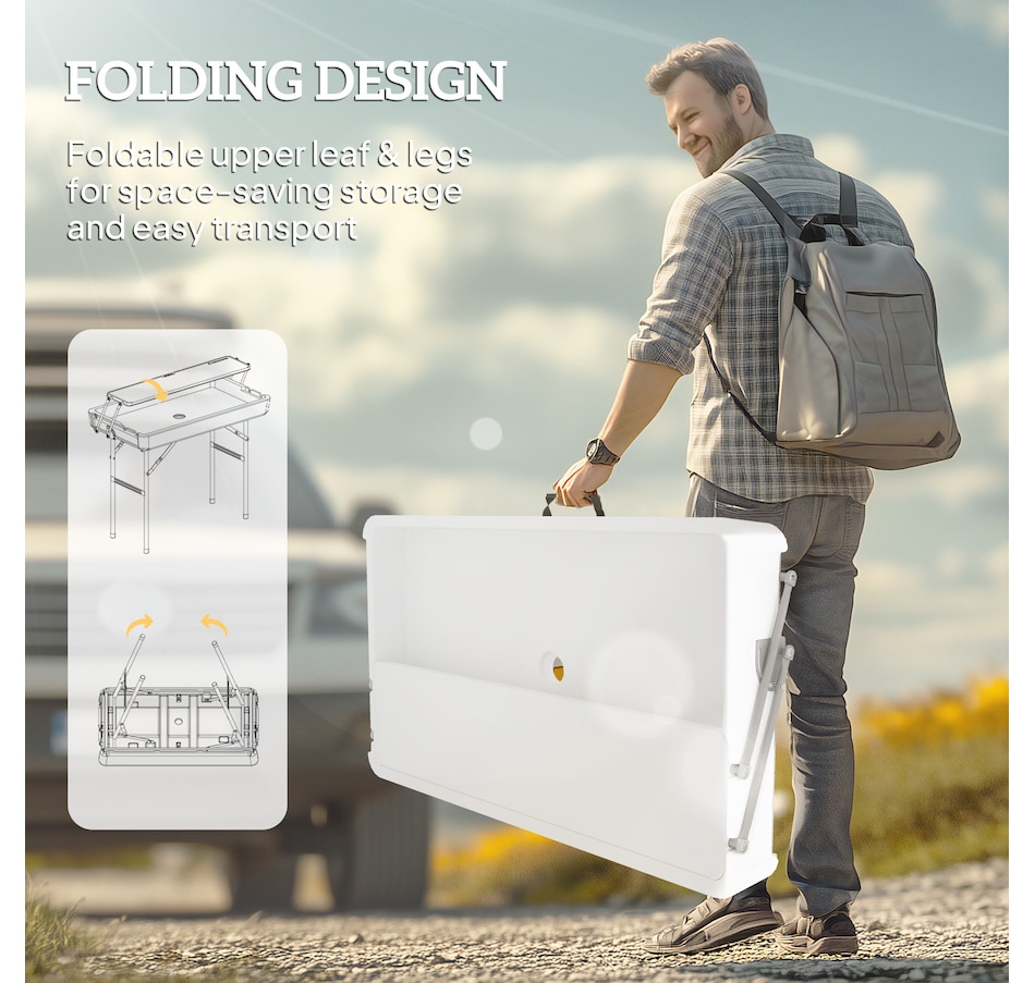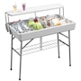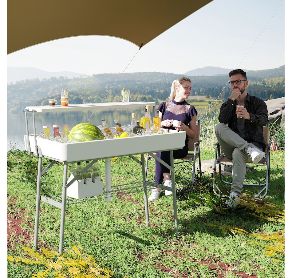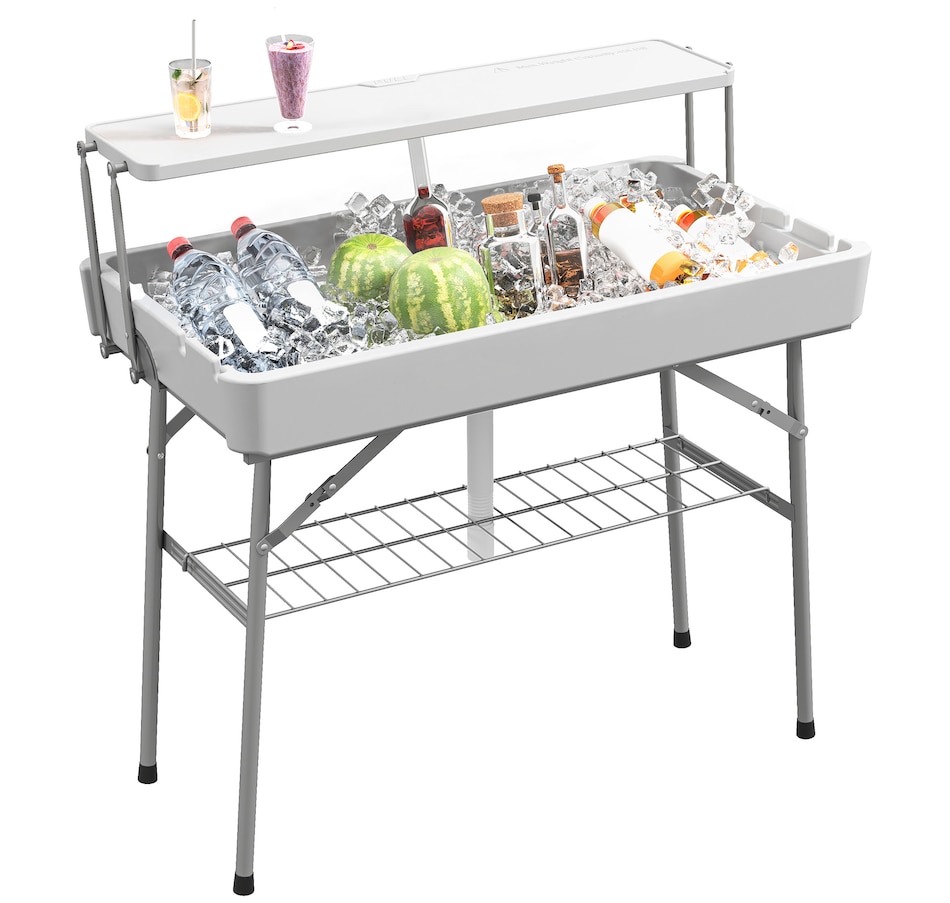 2-Tier Folding Ice Table with Drain, Outdoor Cooler Table, White