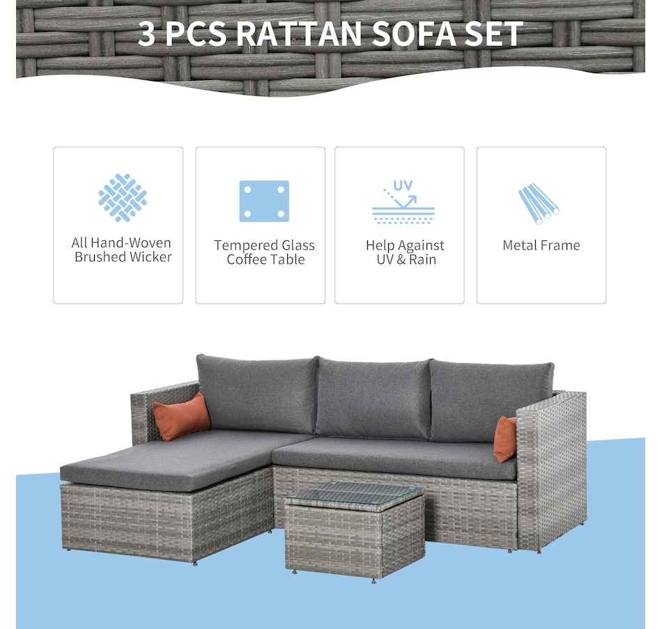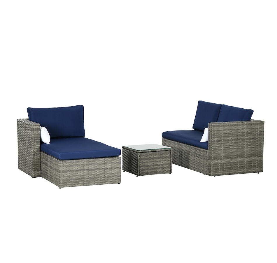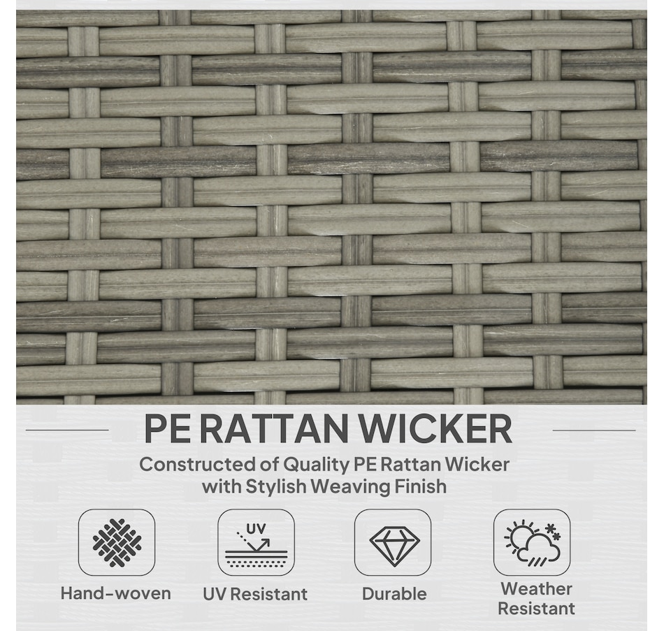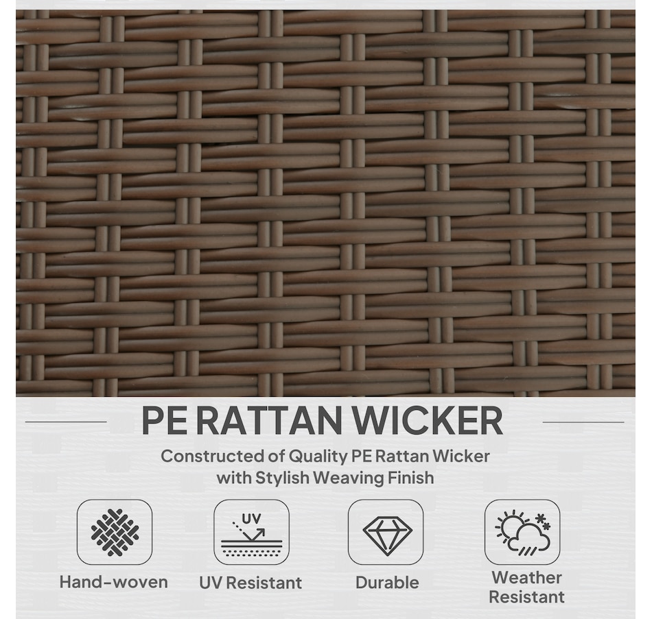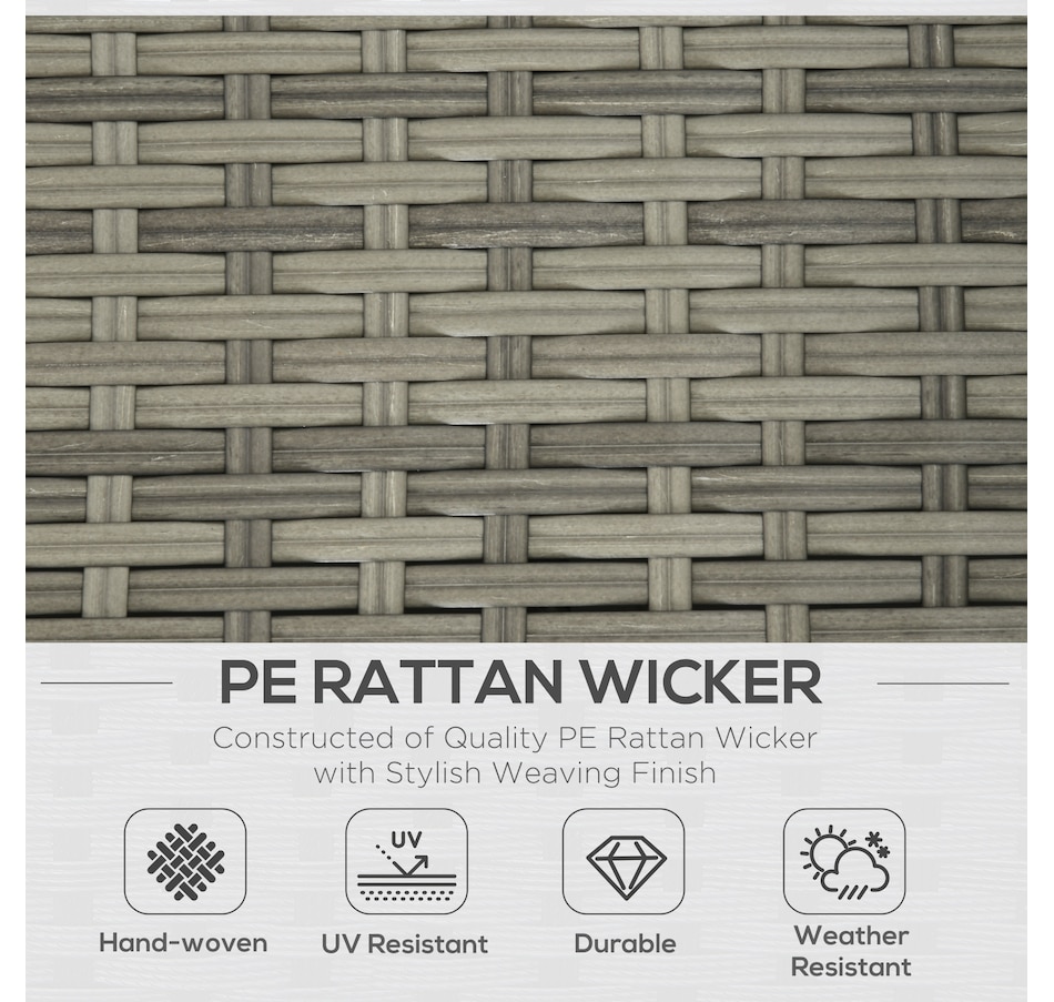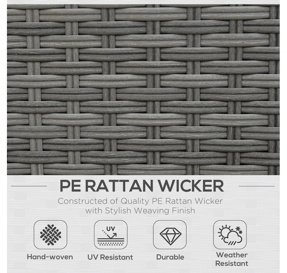 This 3-piece PE rattan wicker set from Outsunny features a high-quality galvanized steel frame and hand-woven PE rattan. It can be arranged in various configurations to fit your outdoor space, whether for decks, poolside areas, or backyards. The set includes a soft, cotton-filled seat and back cushions for comfort, with zippered covers for easy removal and washing. Enjoy your summer with this stylish and functional Outsunny rattan furniture.