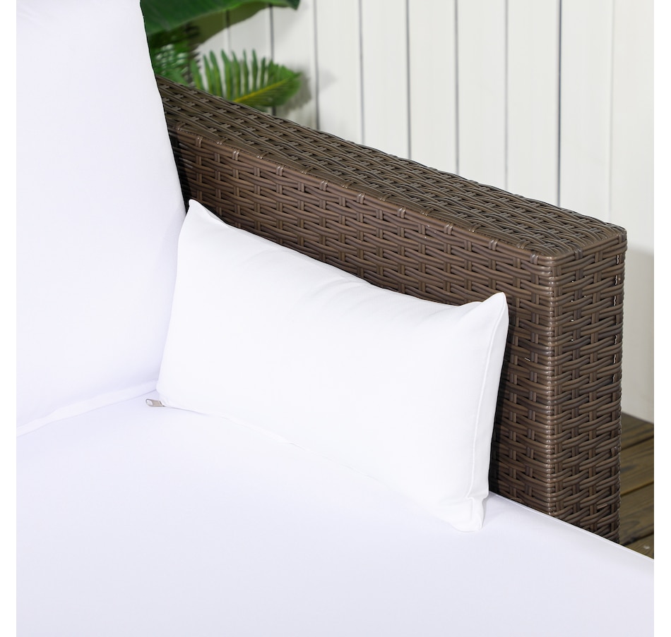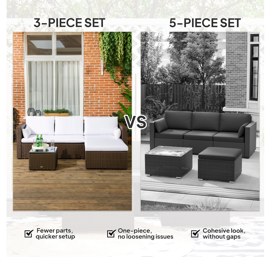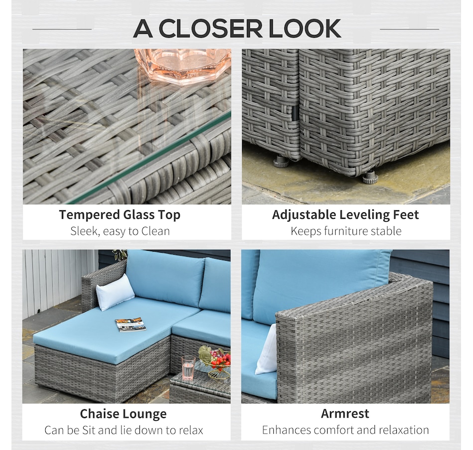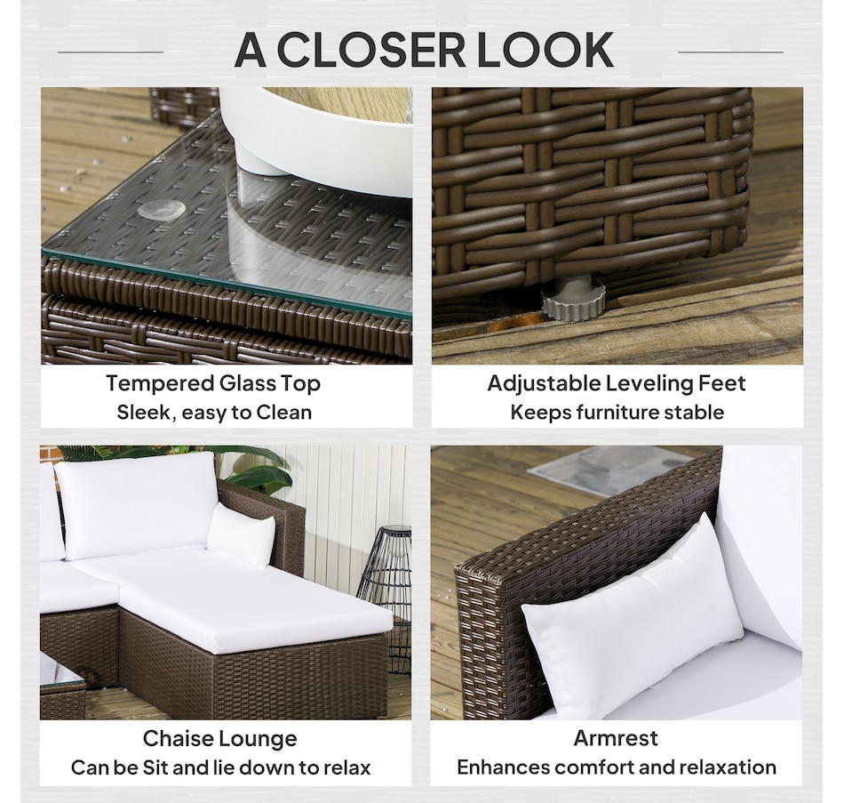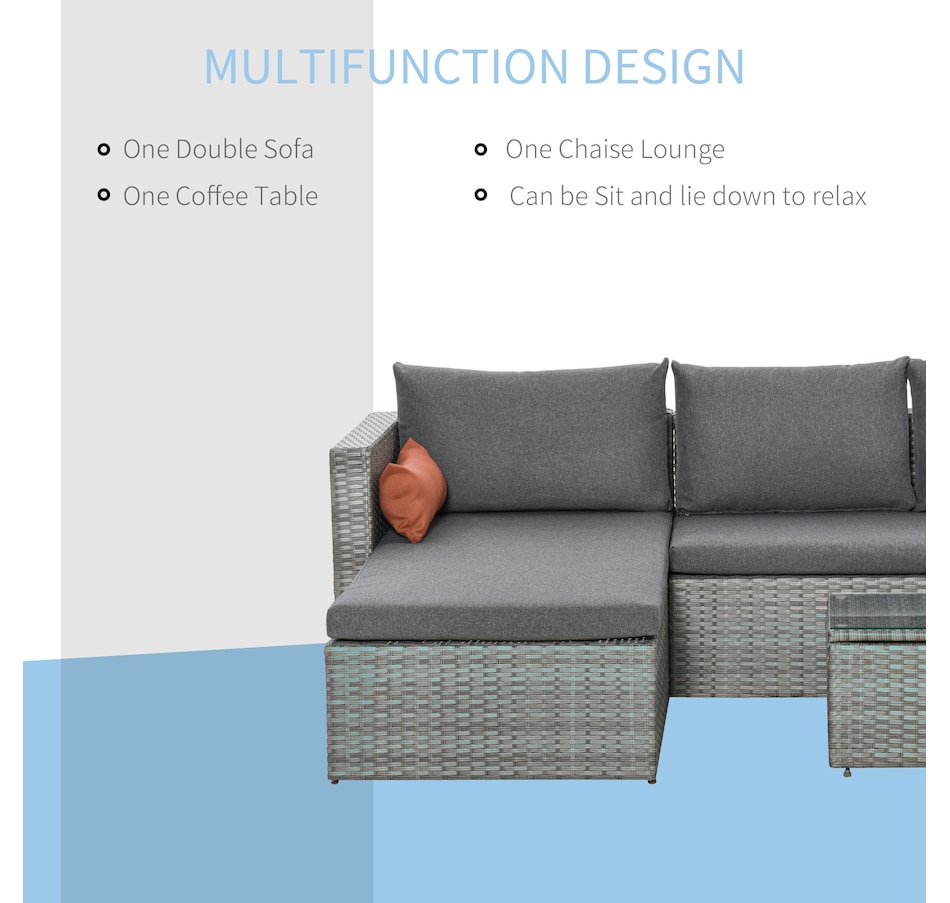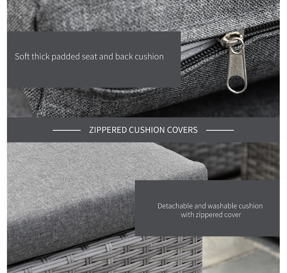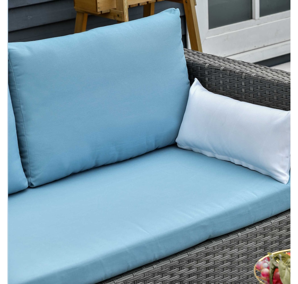 This 3-piece PE rattan wicker set from Outsunny features a high-quality galvanized steel frame and hand-woven PE rattan. It can be arranged in various configurations to fit your outdoor space, whether for decks, poolside areas, or backyards. The set includes a soft, cotton-filled seat and back cushions for comfort, with zippered covers for easy removal and washing. Enjoy your summer with this stylish and functional Outsunny rattan furniture.
