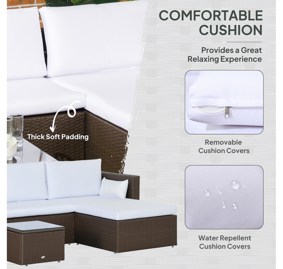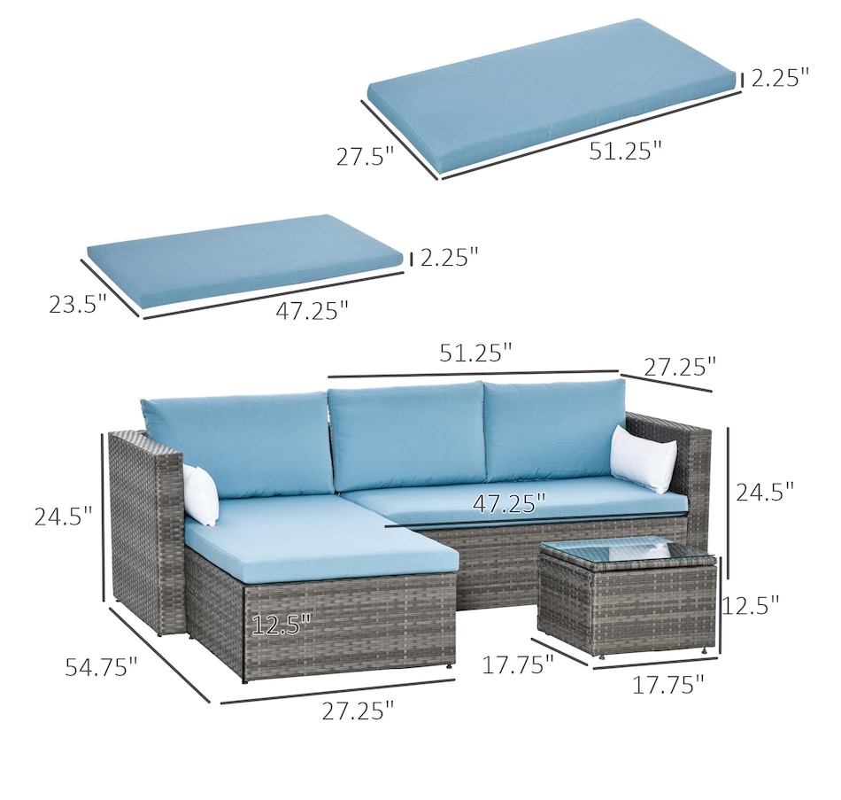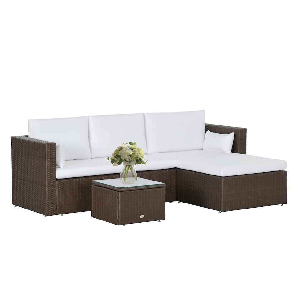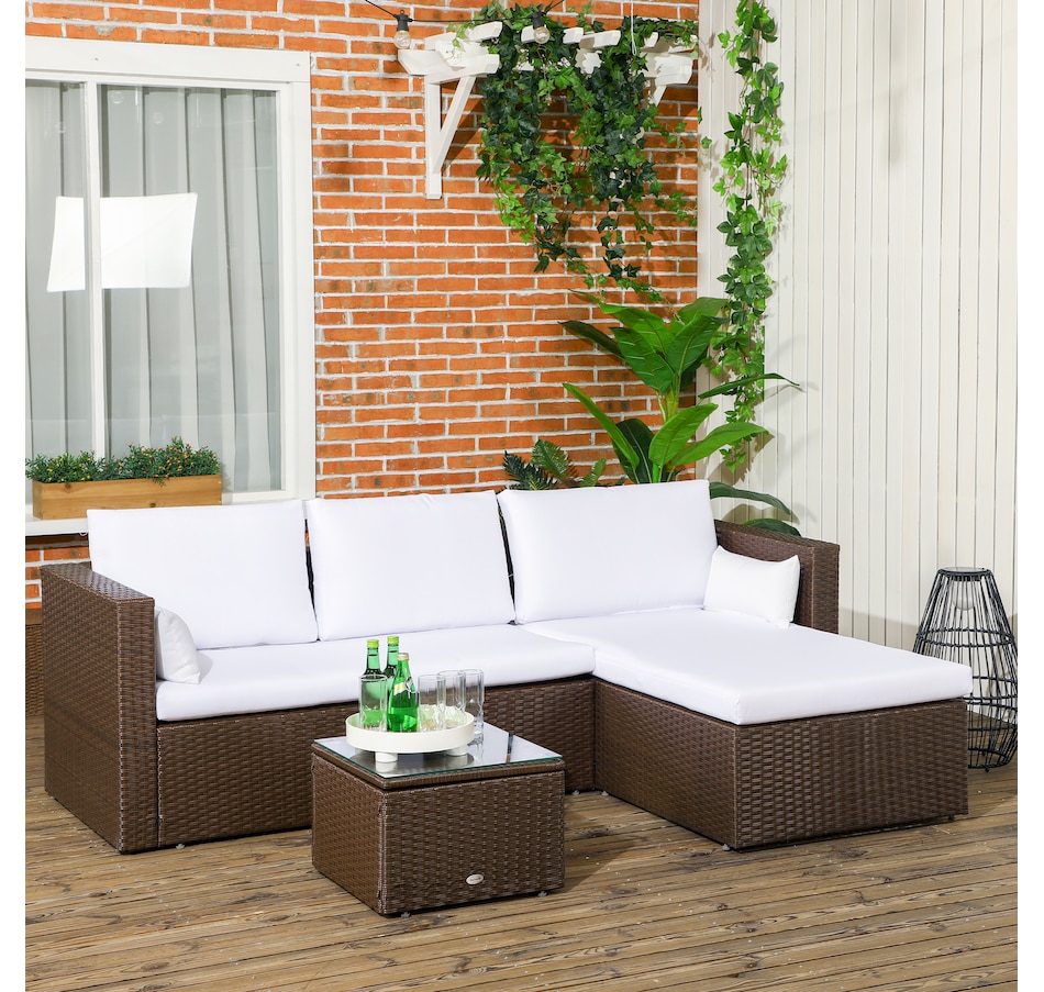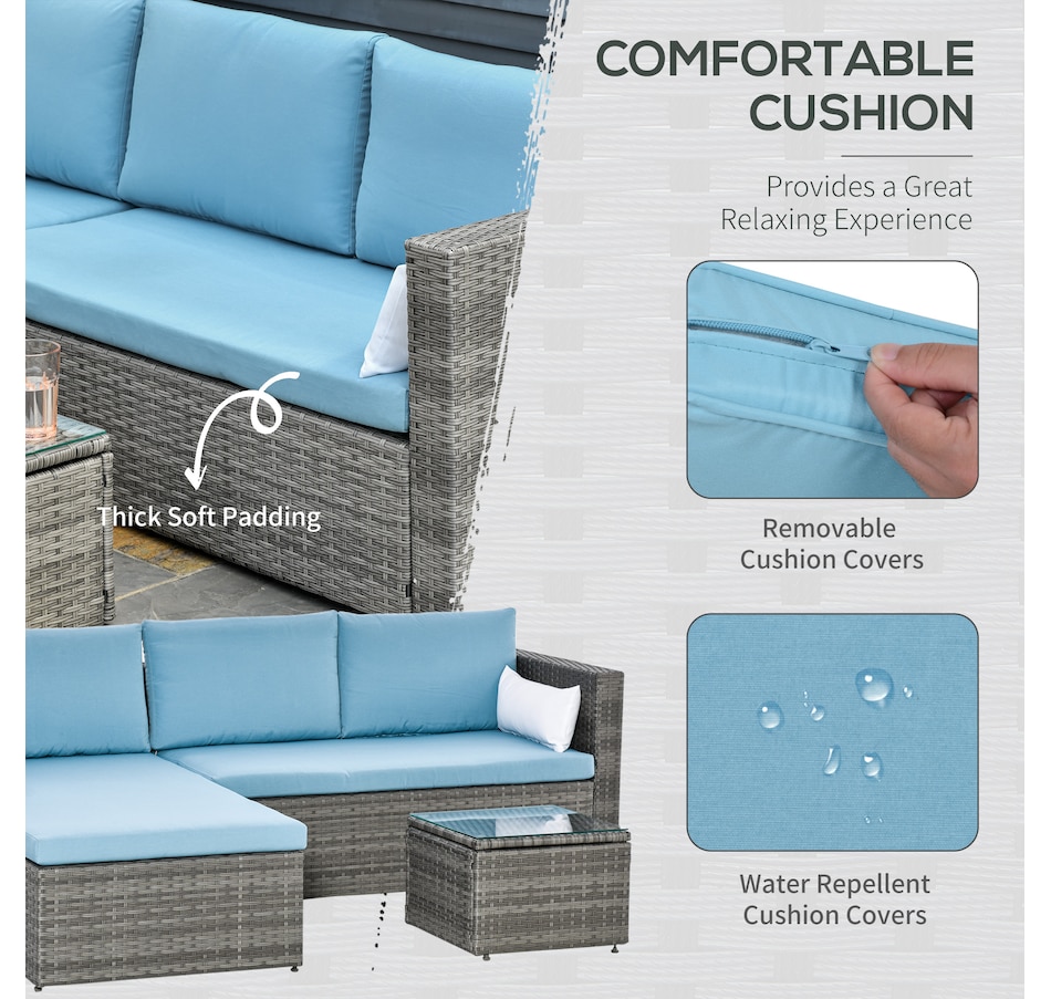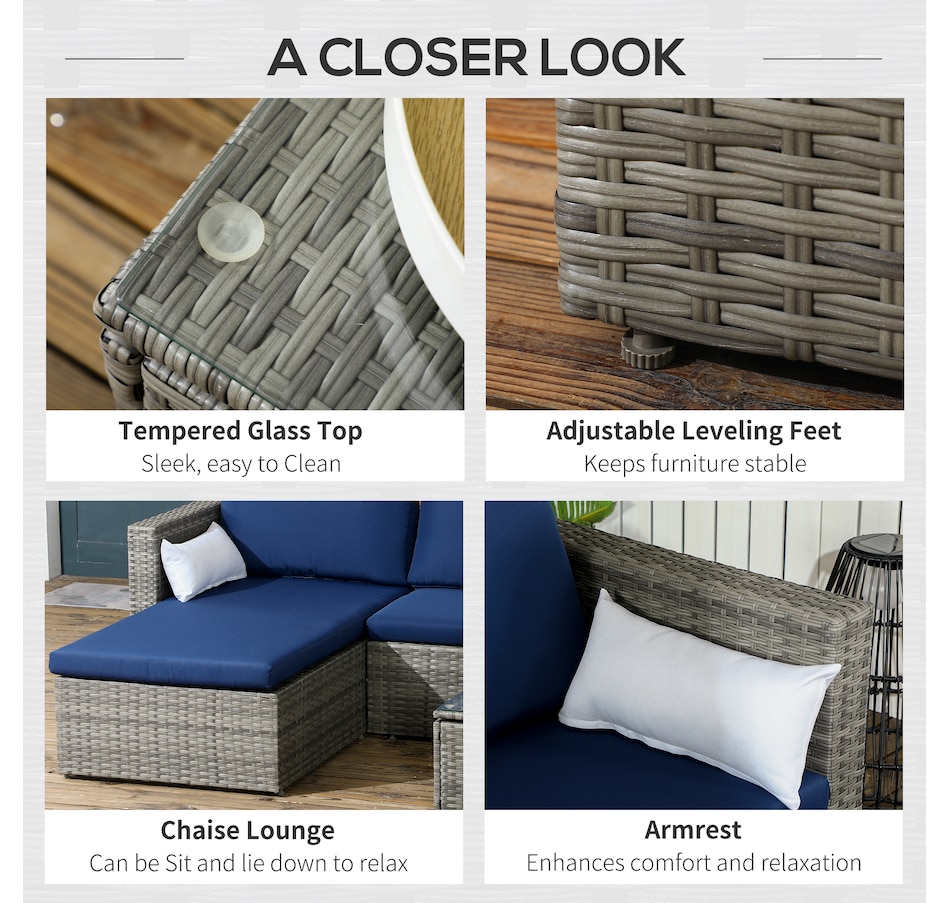 This 3-piece PE rattan wicker set from Outsunny features a high-quality galvanized steel frame and hand-woven PE rattan. It can be arranged in various configurations to fit your outdoor space, whether for decks, poolside areas, or backyards. The set includes a soft, cotton-filled seat and back cushions for comfort, with zippered covers for easy removal and washing. Enjoy your summer with this stylish and functional Outsunny rattan furniture.