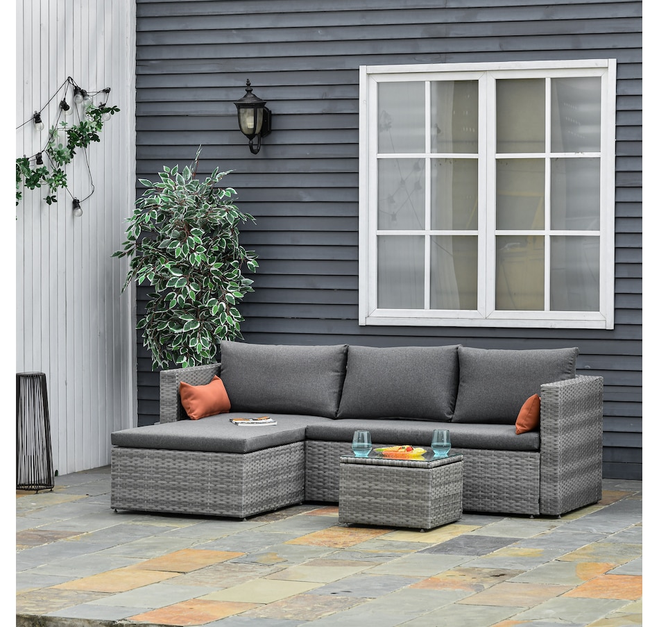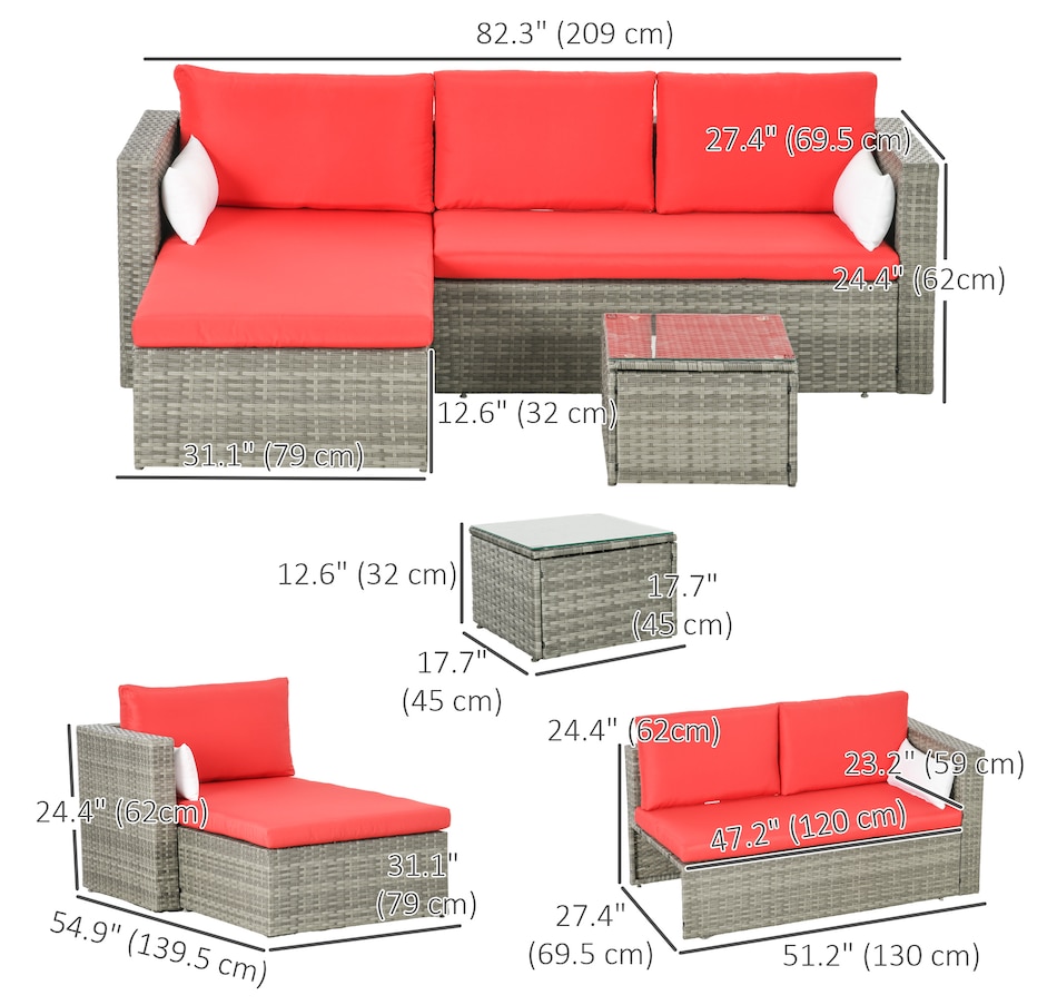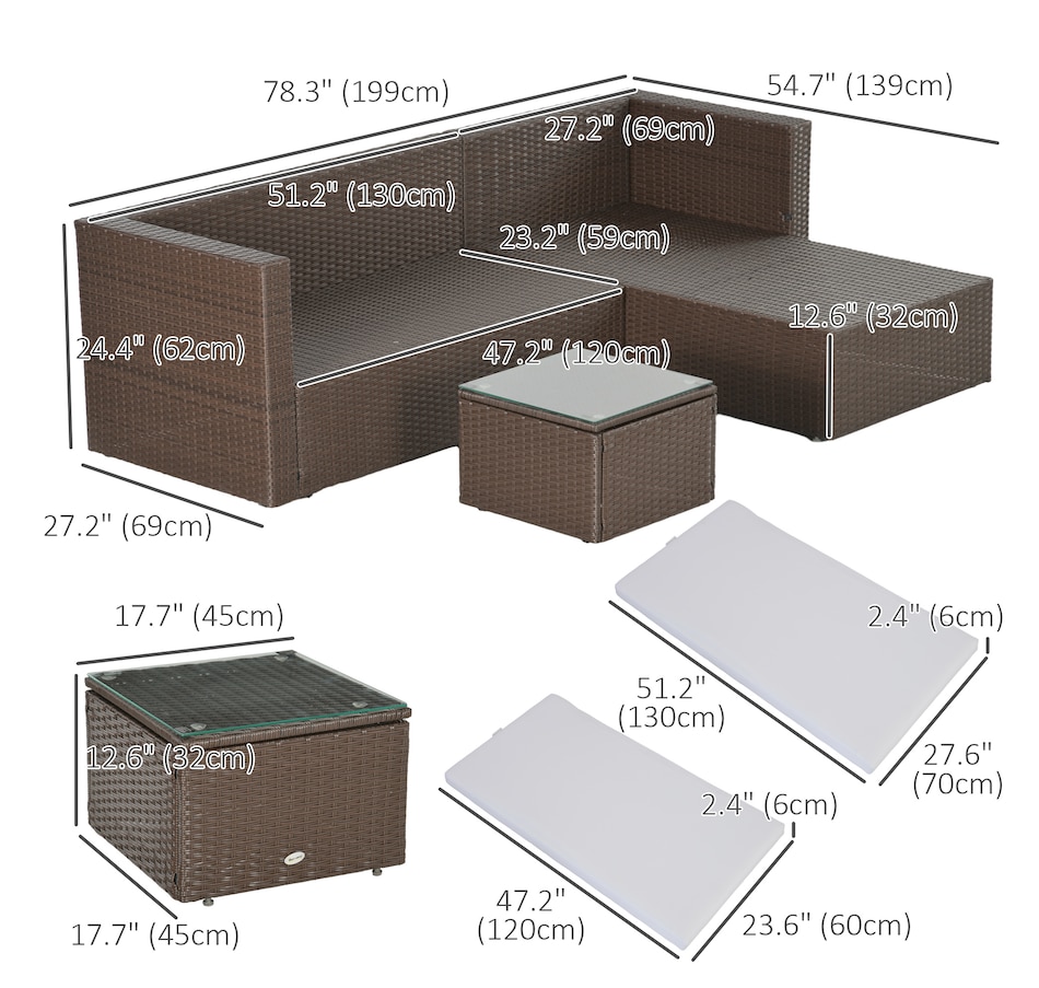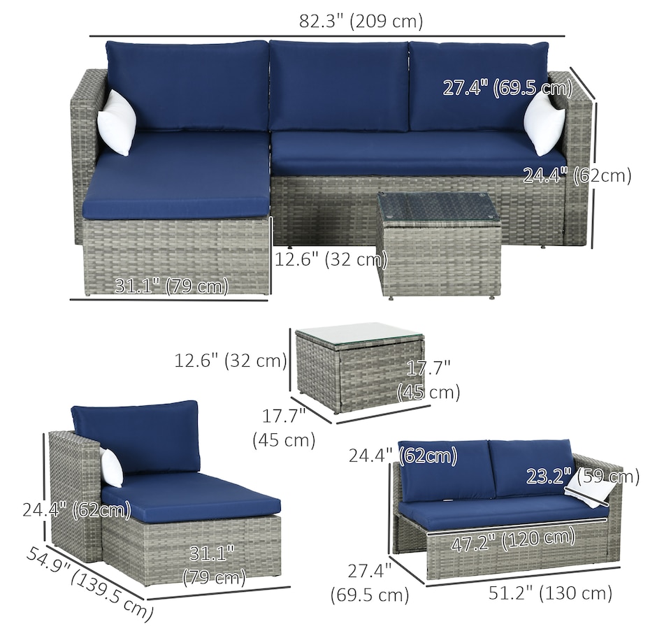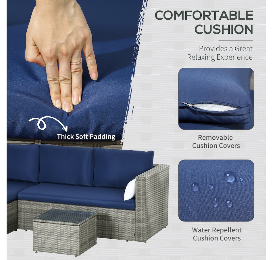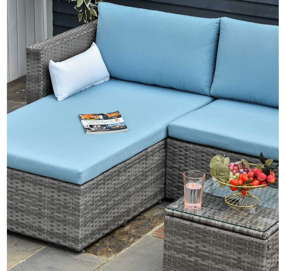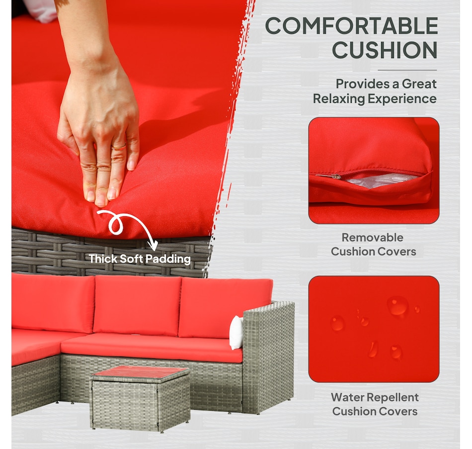 This 3-piece PE rattan wicker set from Outsunny features a high-quality galvanized steel frame and hand-woven PE rattan. It can be arranged in various configurations to fit your outdoor space, whether for decks, poolside areas, or backyards. The set includes a soft, cotton-filled seat and back cushions for comfort, with zippered covers for easy removal and washing. Enjoy your summer with this stylish and functional Outsunny rattan furniture.