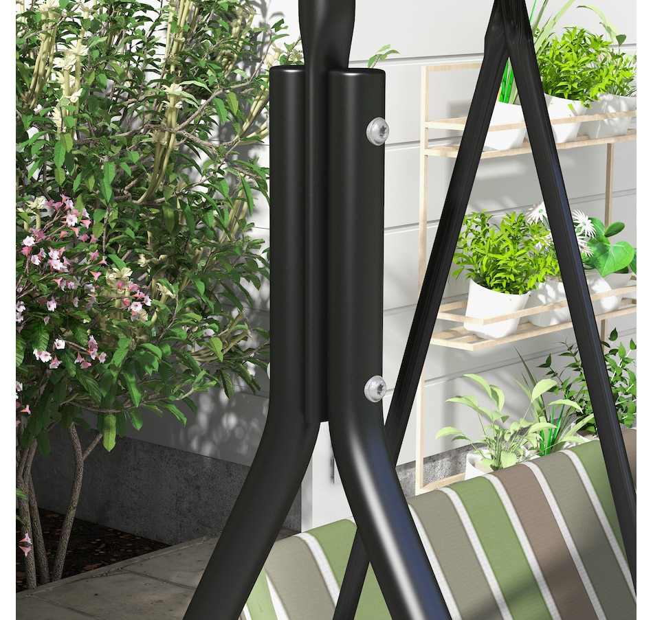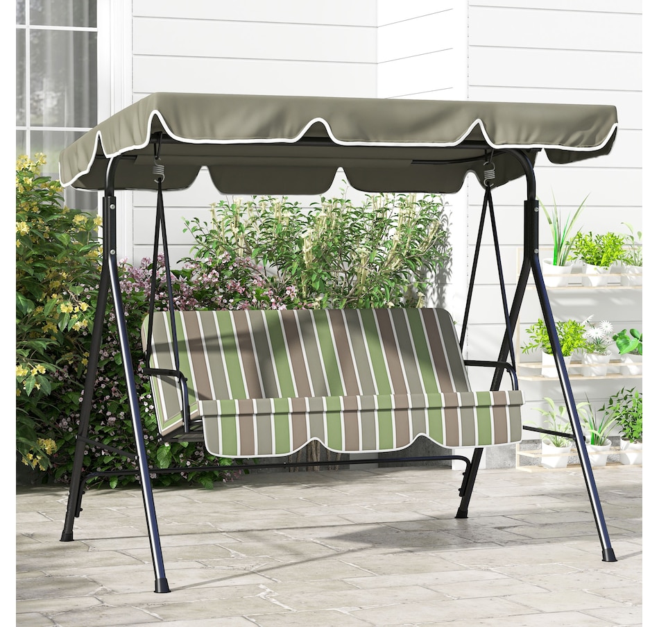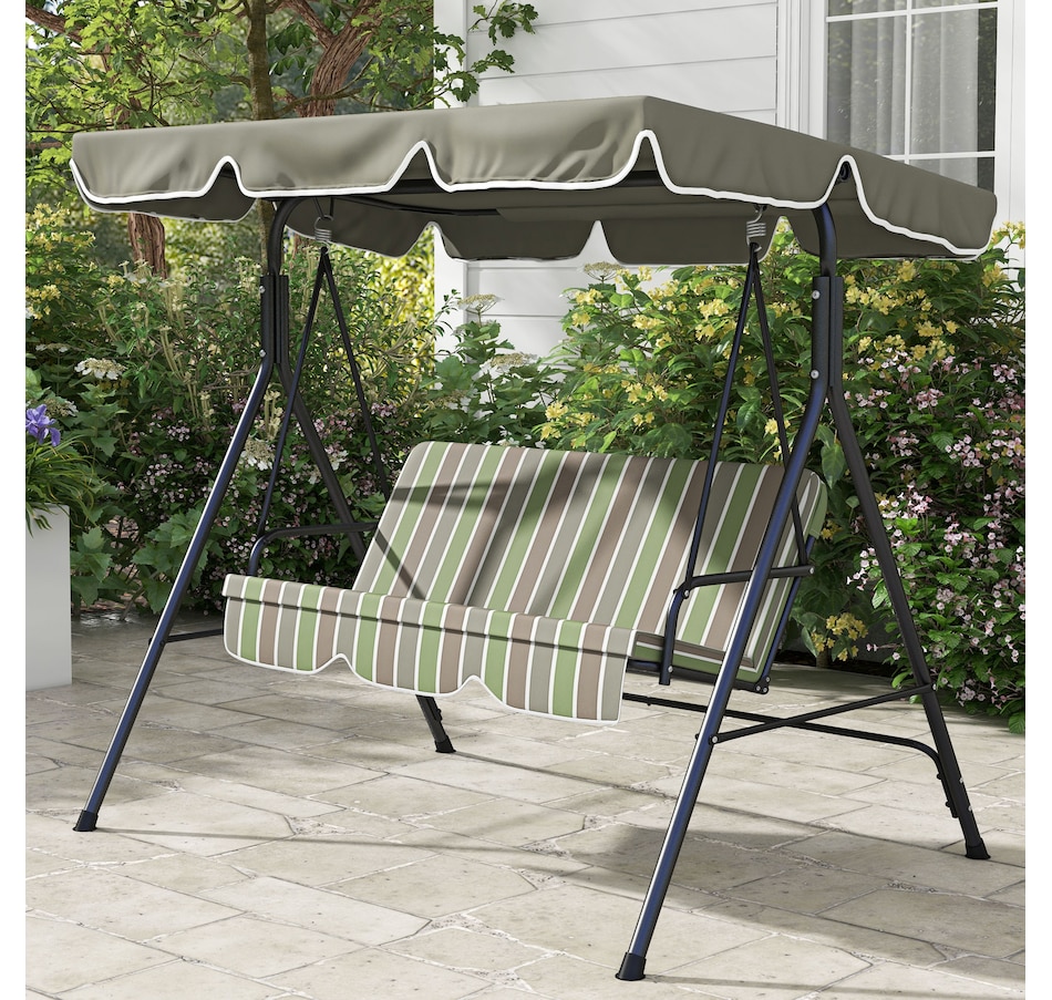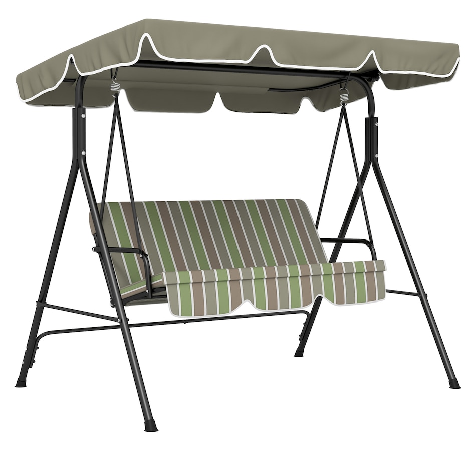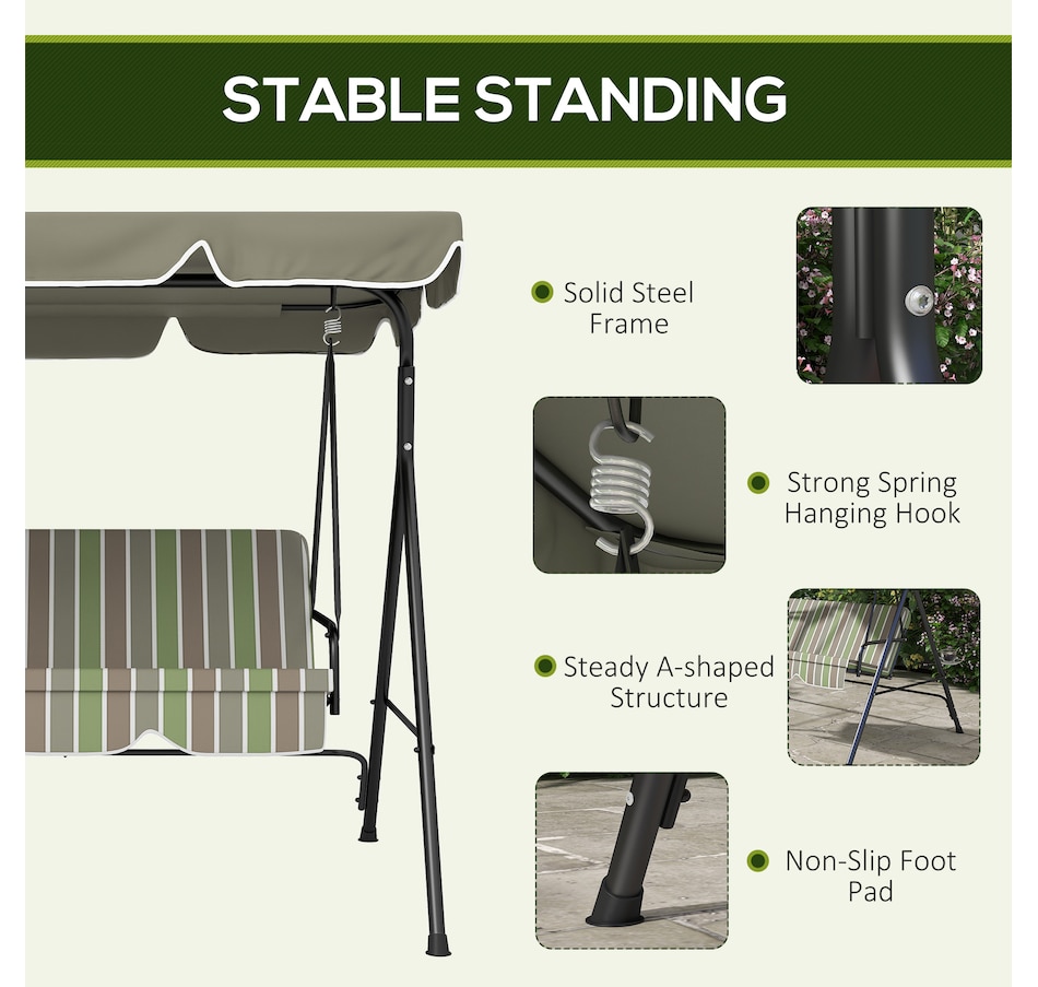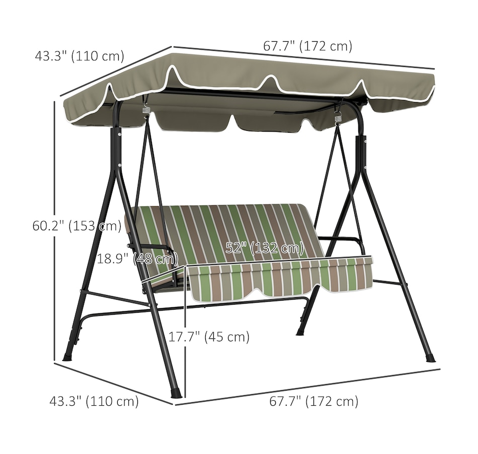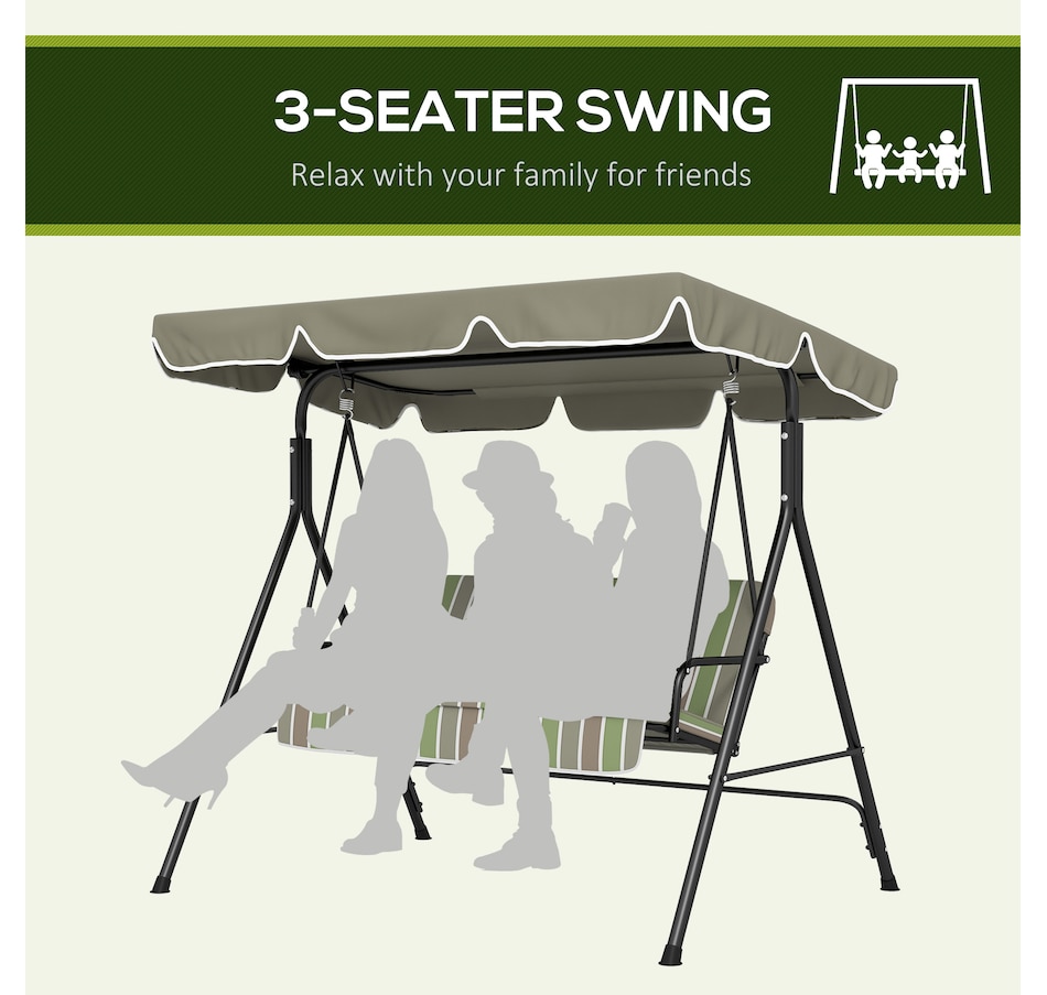 Enjoy the beautiful weather with your friends and family by lounging on Outsunny outside swings for adults. Have a seat and let the gentle rocking sway you back and forth. The adult swing frame is made of durable powder coated steel with a water resistant polyester canopy for extra shade. The seats are curved for an incredibly comfortable seating angle complete with arm rests on each side. So sit back, let the summer breeze take you away in this relaxing Outsunny canopy swing.Features: