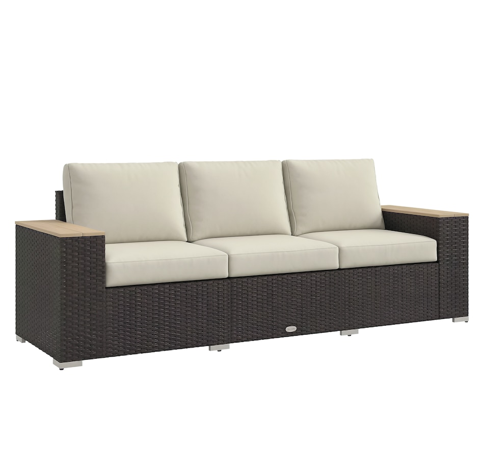 3-Seater Outdoor Couch with Cushions, Outdoor Sofa, Cream White