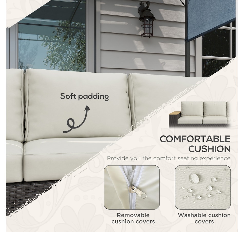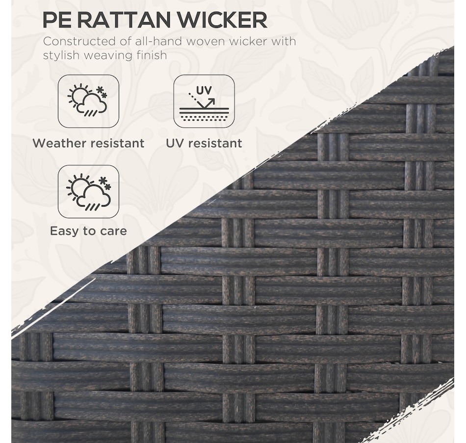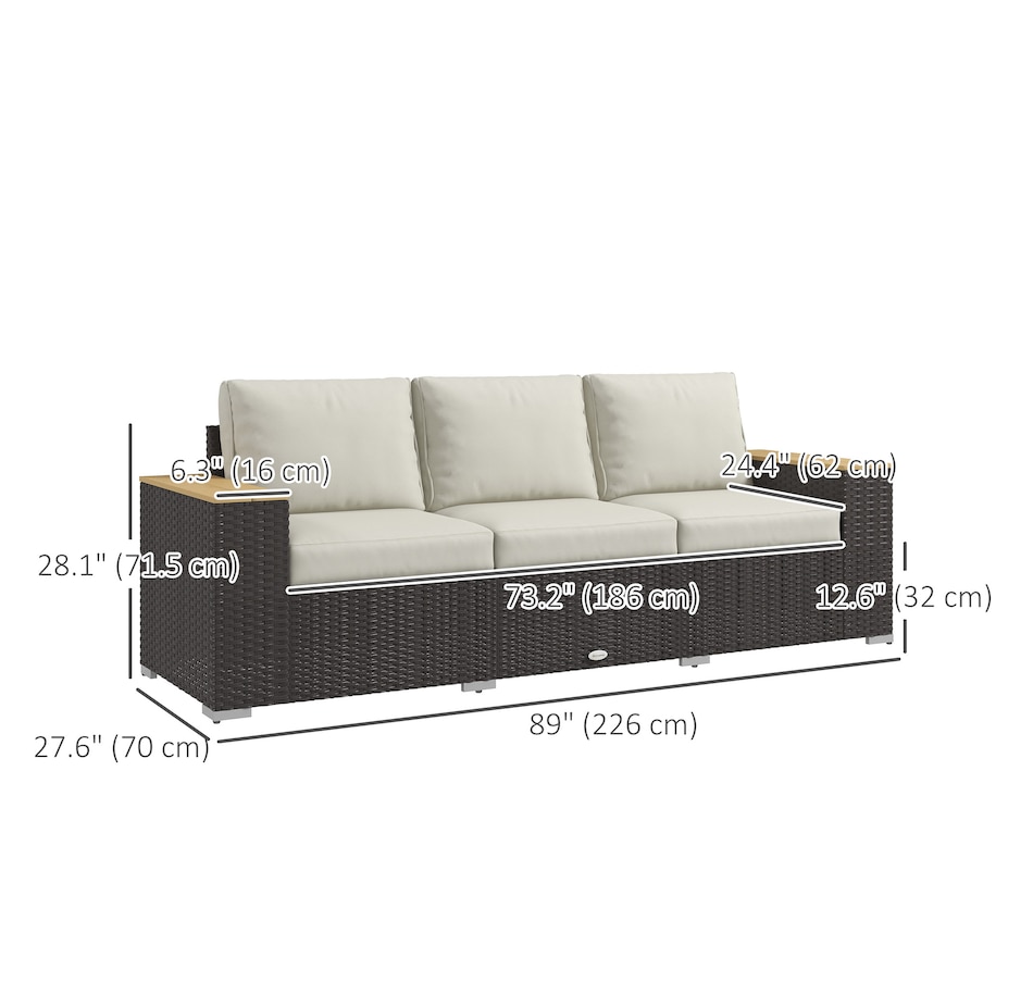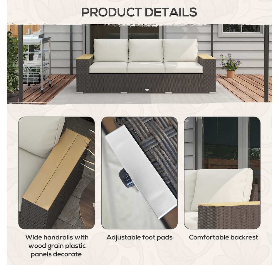 Who says a couch can't go outside? Make your outdoor space just as comfy as indoors with an Outsunny 3-seat outdoor sofa. This sofa is soft and cushioned with plush padding on the seats and backs. It's hand-woven, making it an excellent accent piece for your porch, patio, poolside, or garden. Made to endure outdoor conditions, it has PE rattan and a strong galvanized frame, letting it endure the outdoors with ease. Invite over some friends. Get out and get comfy with an Outsunny outdoor couch.