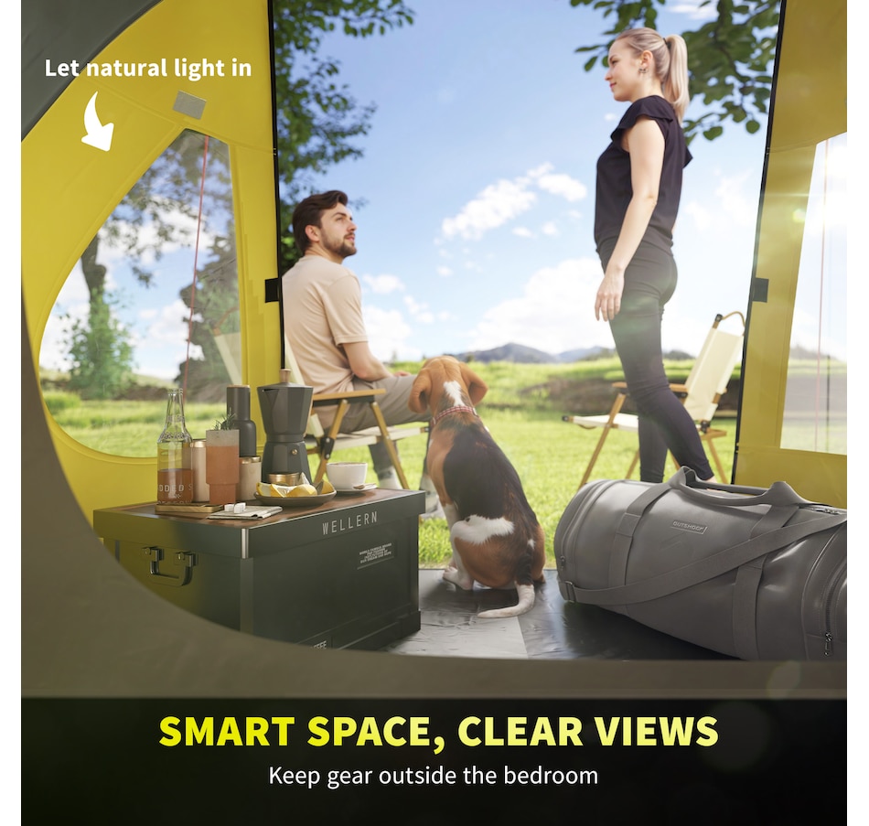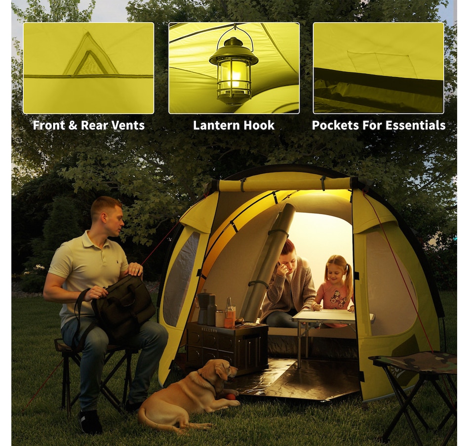 ● Note: Recommended setup for 2 people. Please avoid setting up the tent during strong winds or heavy rain