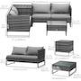 ●Material: Metal, PE rattan, Polyester;●Colour: Mixed Grey;●Loveseat Sofa Size: 52" W x 27.2" D x 25.2" H (132 x 69 x 64 cm);●Corner table: 27.2" L x 27.2" W x 25.2" H (69 x 69 x 64 cm);●Coffee table: 24.8" L x 24.8" W x 13.4" H (63 x 63 x 34 cm);●Seat Size: 50.4" L x 25.6" W x 12.2" H (128 x 65 x 31 cm);●Weight Capacity: Single seat: 352 lbs (160 kg). Corner table: 110 lbs (50kg). Coffee table:110 lbs (50kg);●Item Label: 860-114;Package Includes: