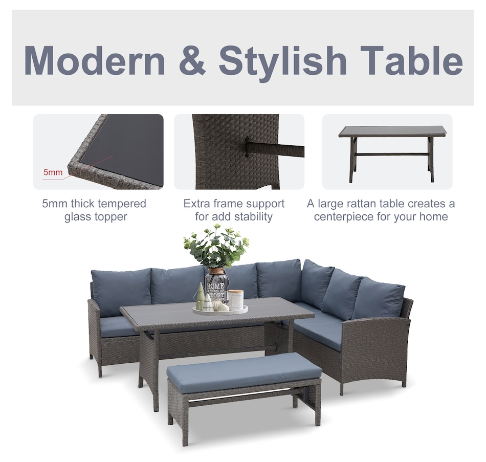 ● Weight Capacity: Sofa(858lbs), Dining Table(176lbs), Bench(704lbs)
