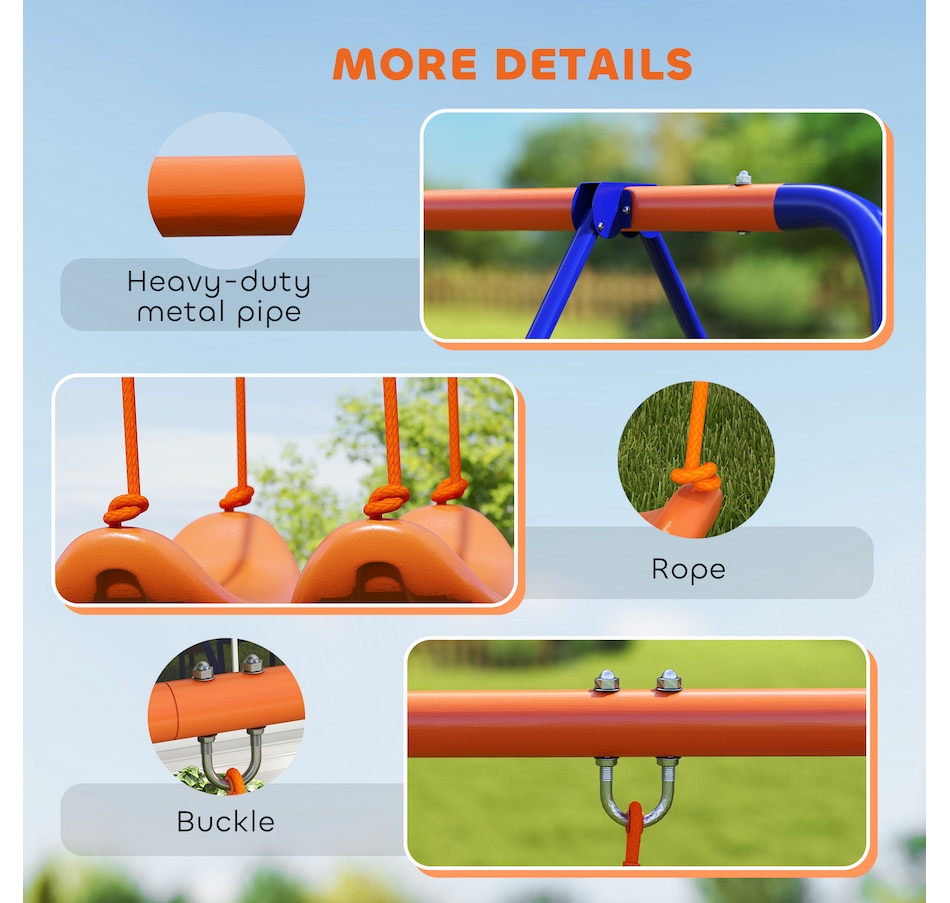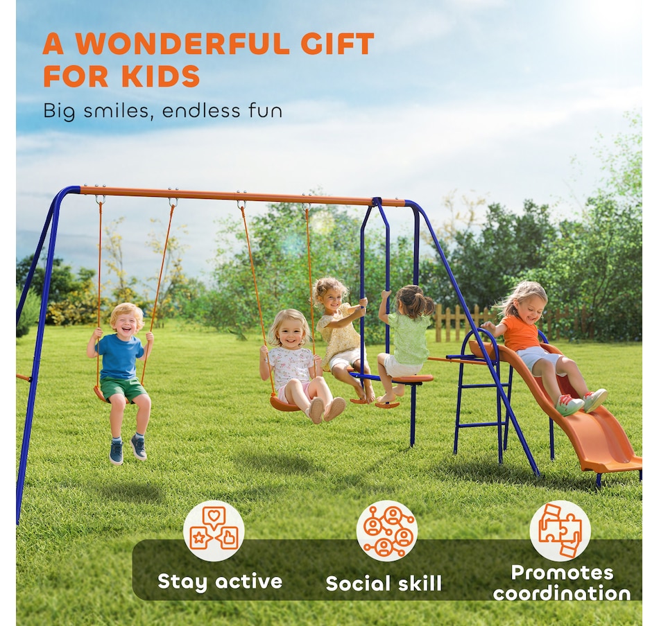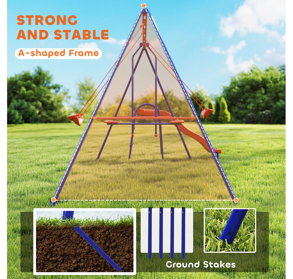 Turn your garden into an exciting playground with the Outsunny kids swing set. Packed with an array of features, this swing set offers endless fun for children. With lots of space, they can play and enjoy together in a safe surrounding. The steel frame and ground stakes ensure stability and security, keeping the set firmly anchored to the ground.