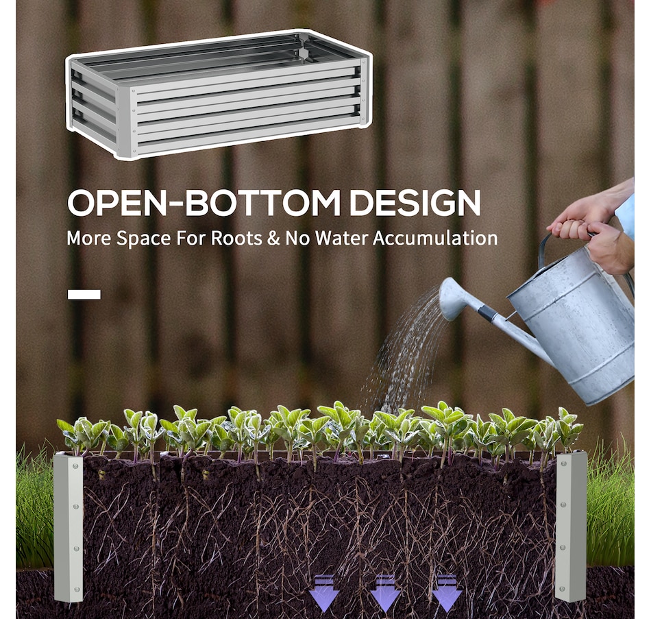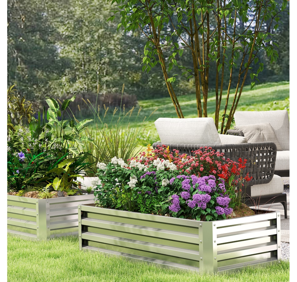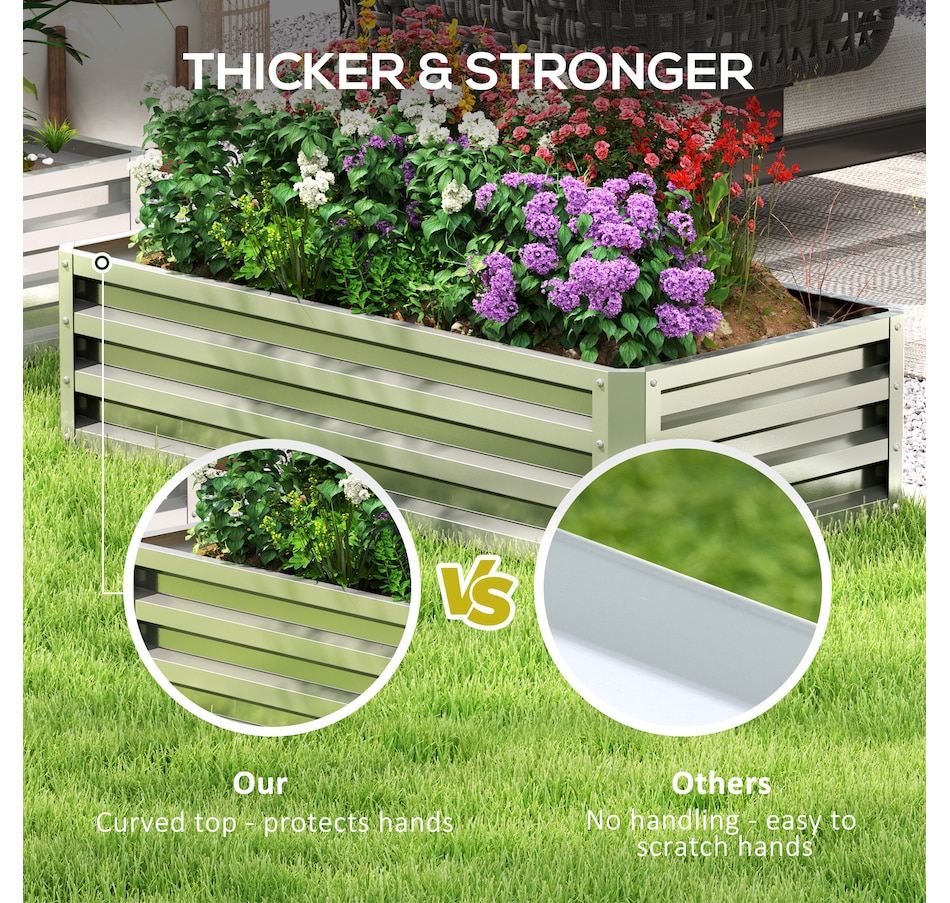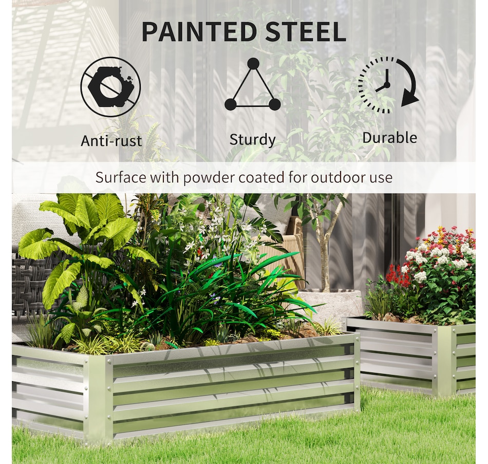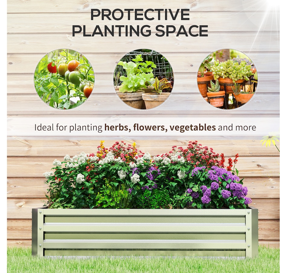 A great way to grow plants and vegetables at home is in a galvanized steel garden raised bed. With our Outsunny flower planter box, you can get started on your garden right away. This garden box keeps weeds out of your soil, prevents soil compaction, improves drainage, and protects your plants from other unwanted visitors. Start your best garden with this herb garden from Outsunny.