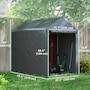 Discover the versatility of the Outsunny bike storage shed, your new haven for everything from bikes to garden tools. This spacious outdoor shed features a UV-resistant canopy and a robust galvanized steel frame, ensuring your items stay protected from light wind and rain. Zip up your motorcycle or bike under the large door and keep your outdoor space tidy and organized!Features:
