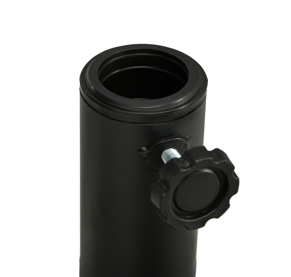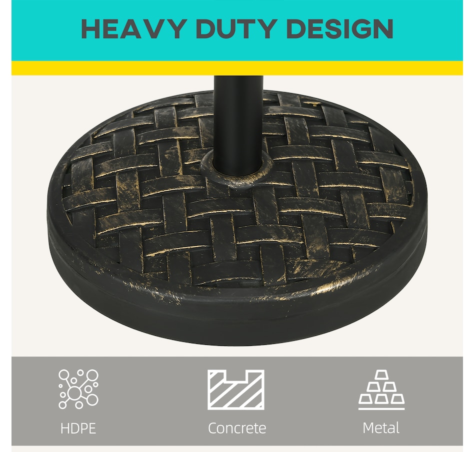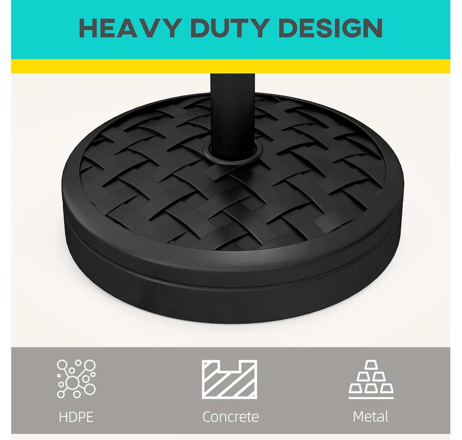 The Outsunny weighted parasol stand holds your umbrella securely and evenly in place, so the umbrella can provide much-needed shade. Using HDPE plastic for a strong and shell, inside it is filled with cement for extra weight. The powder coated metal pole holds a parasol in place, with a tightening knob for extra security.