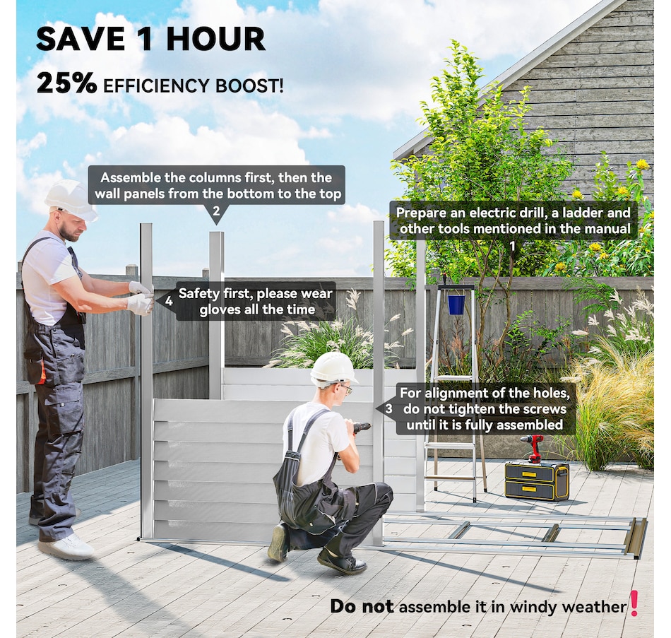 ● Note: Requires at least three people to install it in three hours. Do not install in strong windy conditions.Package Includes: