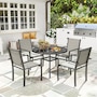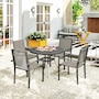 ● Five-piece outdoor garden furniture set accommodates family meals and gatherings;