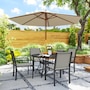 Enjoy al fresco dining with the Outsunny outdoor table and chairs! This 5-piece outdoor patio set features stackable chairs crafted from breezy Texteline fabric to keep you cool on sunny days. The round outdoor dining table fosters a friendly atmosphere for every gathering. Made from robust, powder-coated steel, this balcony furniture promises easy maintenance for endless summer fun.
