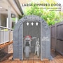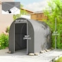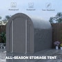 Offering a large amount of space with a level 5 windproof rating, the Outsunny tarp shed tent is a portable shelter to protect your motorcycle, garden tools, or other items outside. It has a thick PE tarp that can create a seal with the ground by burying its edges. The tarp holds on its frame with a ratchet tension system. Built with strong galvanized steel that mounts to the ground with stakes, our motorcycle shed provides outdoor protection at a moment's notice.Features: