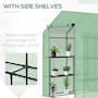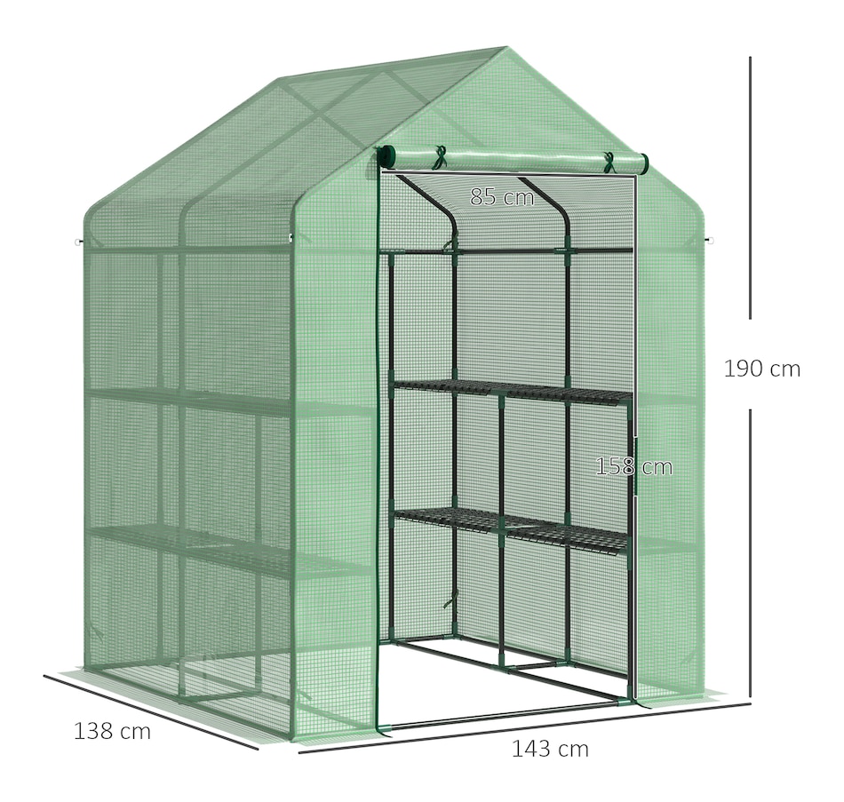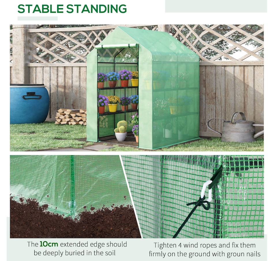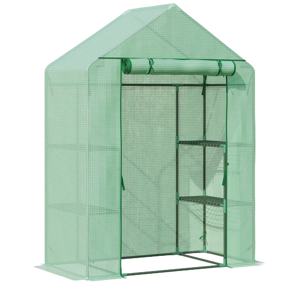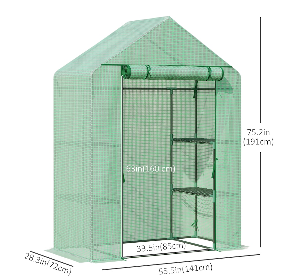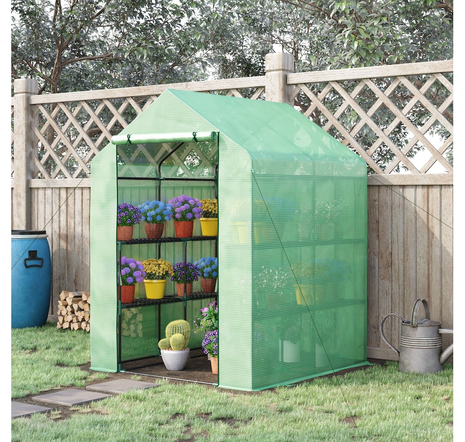 This Outsunny portable walk-in greenhouse is ideal for seedlings and growing young plants. It has a front door panel which retains solar energy to help enhance plant growth while also providing easy access and optimal air circulation. Built using sturdy steel, the 4 wire shelves provide ample space where you can place your potted plants or seedling trays. Add the Outsunny walk-in greenhouse wherever it's convenient for you to enjoy fresh flowers and healthy vegetables all year round!