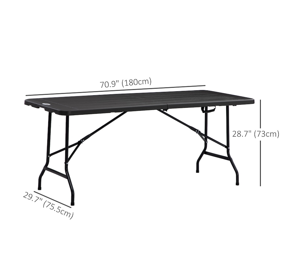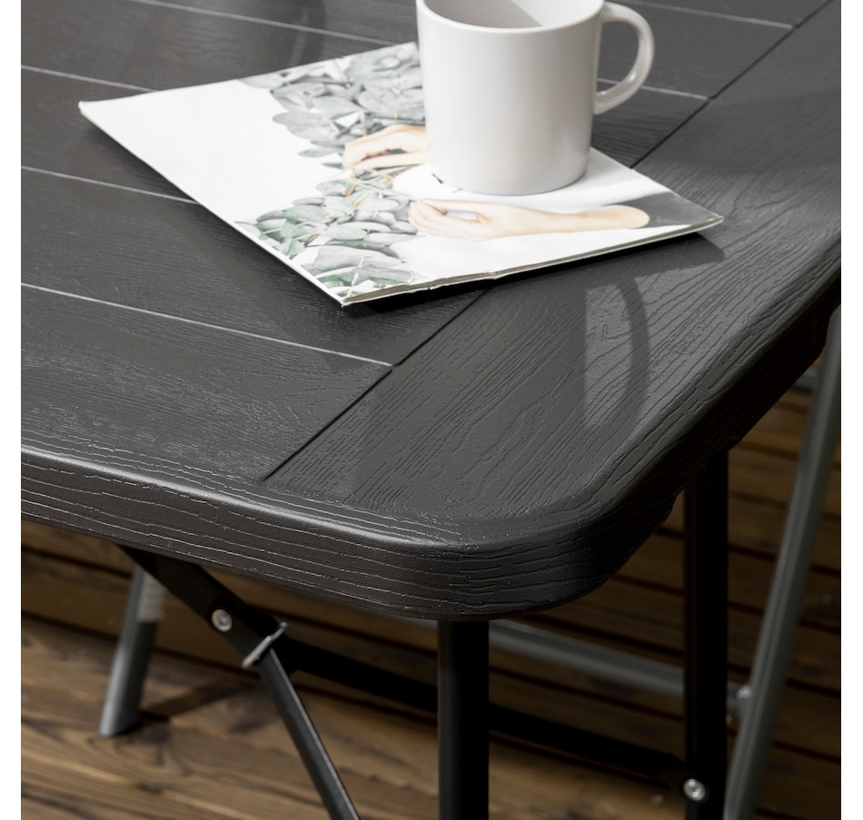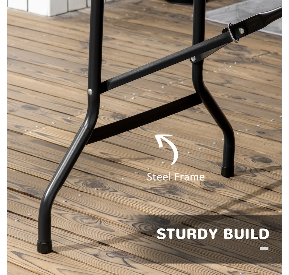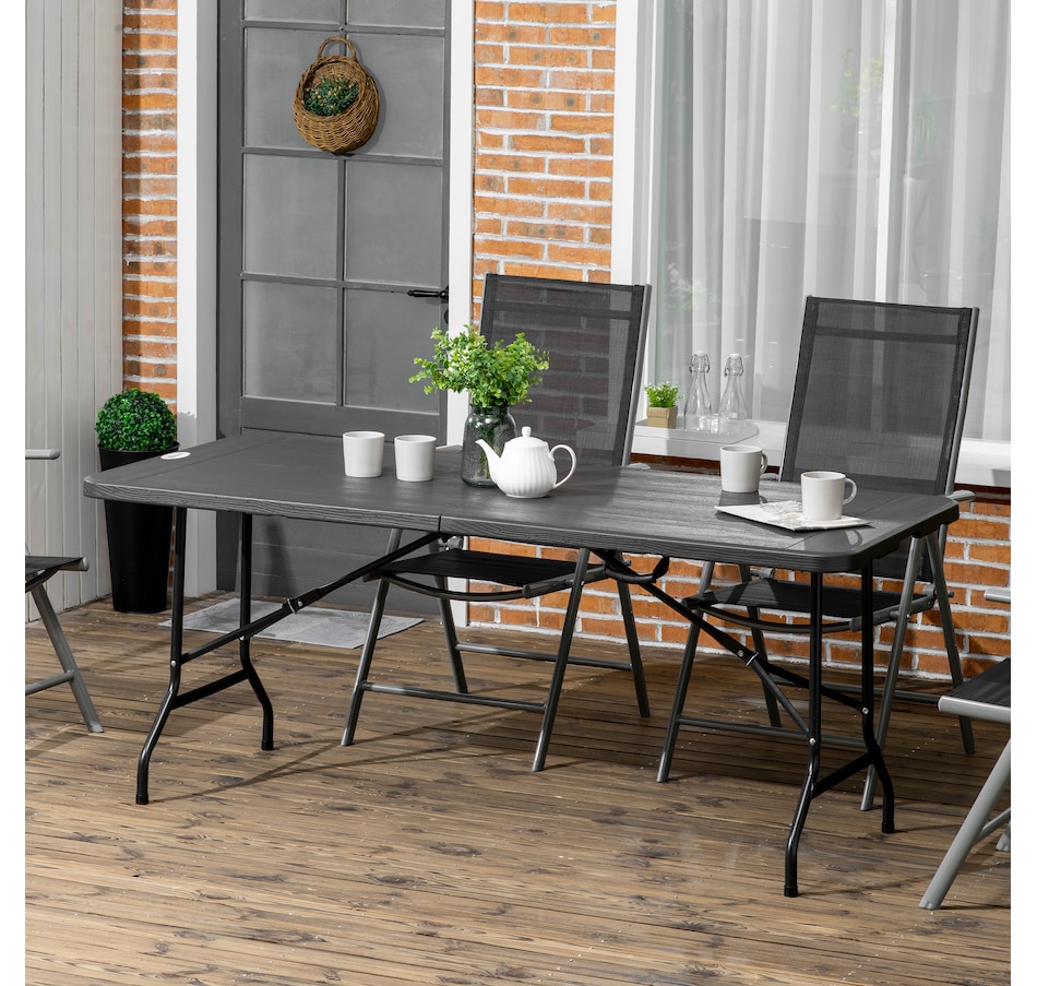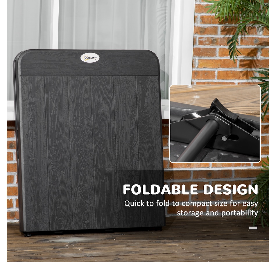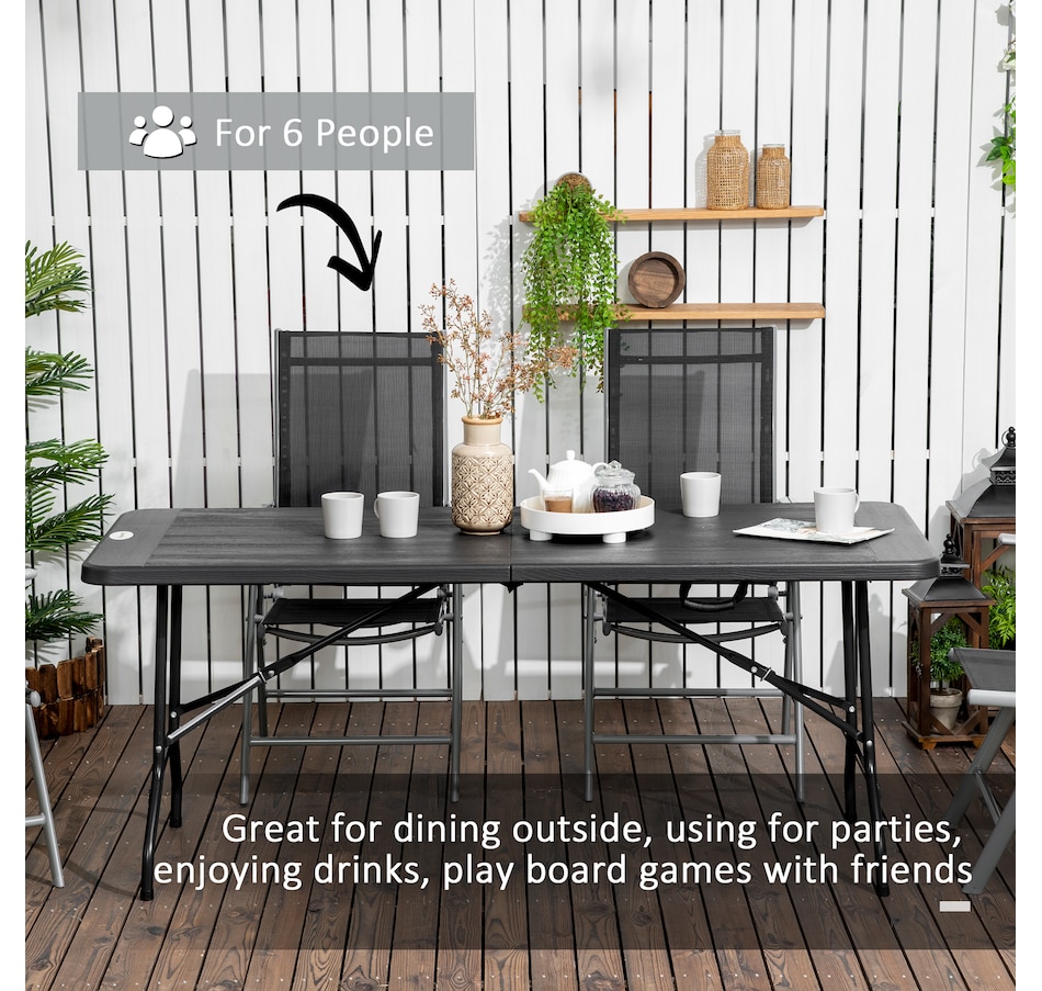 Pick a stylish addition for dining, afternoon tea and party on patios, decks with this garden dining table from Outsunny! The combination of steel frame and HDPE tabletop ensure reliable daily use. The table is a foldable structure, easy to carry anywhere you want and store in a corner when not in use for saving space. Add enduring beauty, style and grace to your garden with this essential part of any outdoor living space.Features: