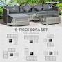 Patio Wicker Sofa Furniture Set with Cushions Mixed 6 Pieces grey