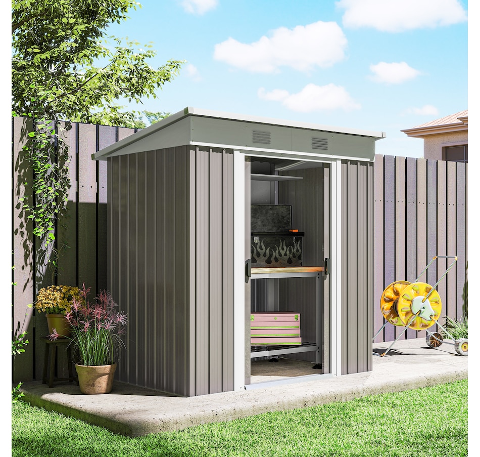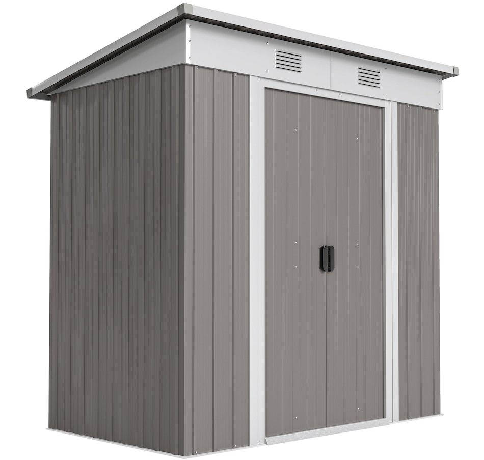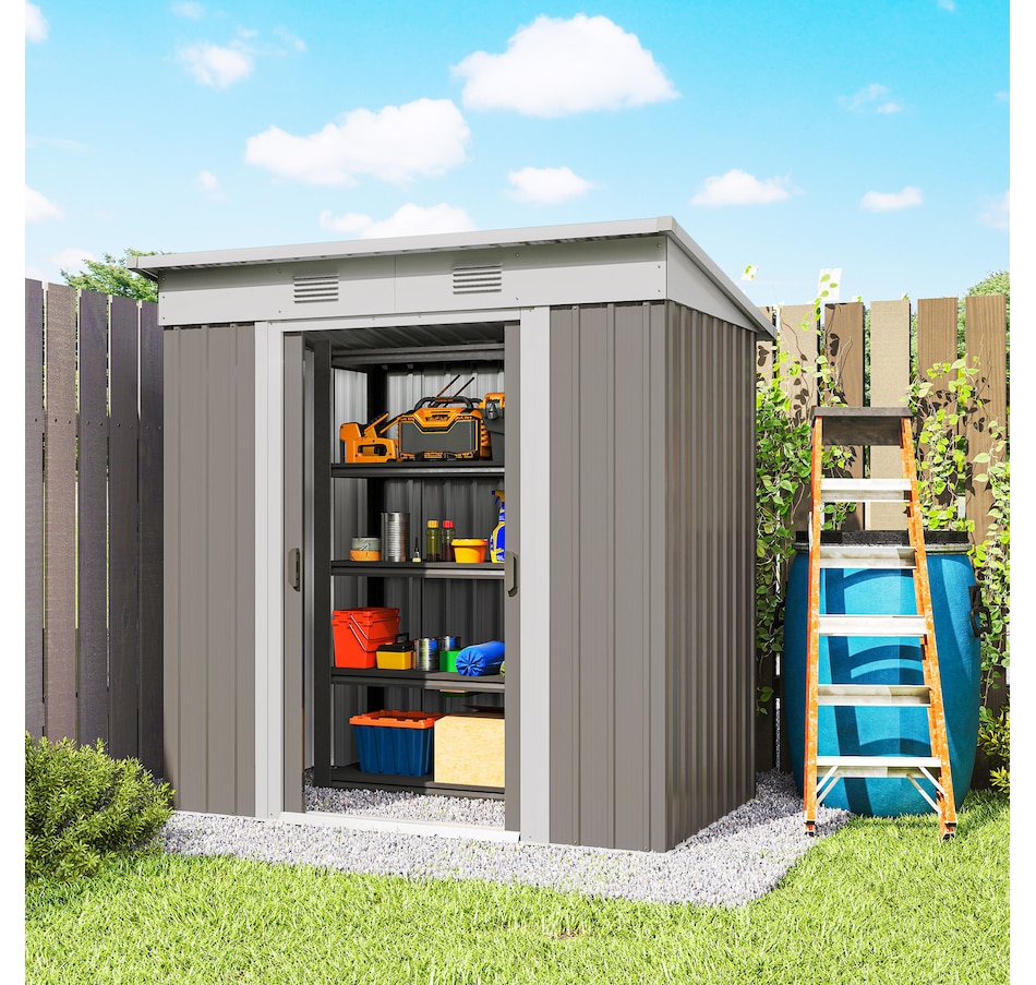 6' x 4' Metal Outdoor Storage Shed w/ Sliding Doors Light Grey