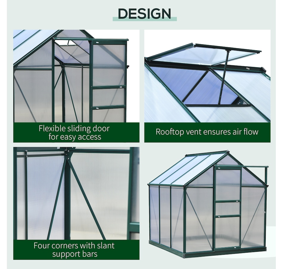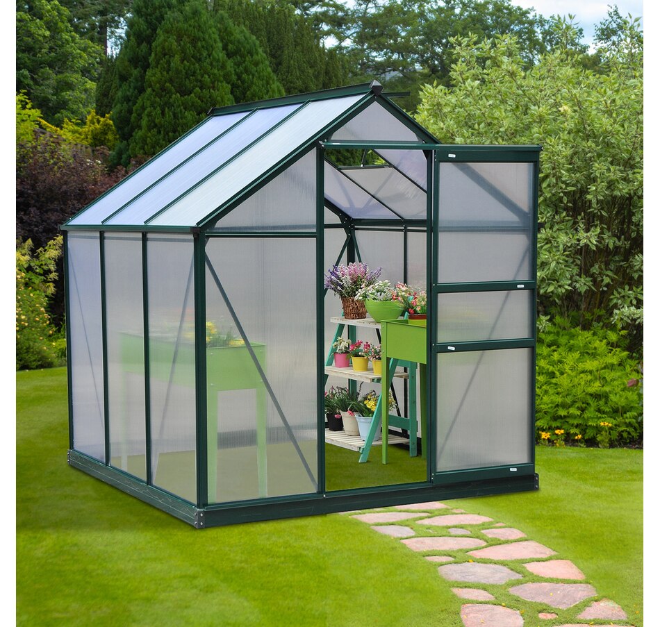 Looking to keep your shovel outside and in the soil year-round? Go with the greenhouse. Outsunny offers a winter greenhouse you can place outside on your patio or backyard. The garden just got an upgrade. Nurse new seedlings or go tropical. Control heat and humidity in a solid polycarbonate shed. Slide the door to walk in with equipment easily. Open the vent, and the climate is under your control. Rain, cold, wind, UV, and wild animals are worries of the past.
