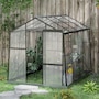 Explore the benefits of greenhouse gardening with the Outsunny greenhouse. Featuring a unique sloping wall design, it maximizes light penetration and shields against harsh weather. Its spacious interior and robust aluminum frame accommodate various plant sizes. Equipped with an adjustable roof vent and a sliding door, it ensures optimal ventilation and humidity control, enhancing your gardening experience for abundant harvests.