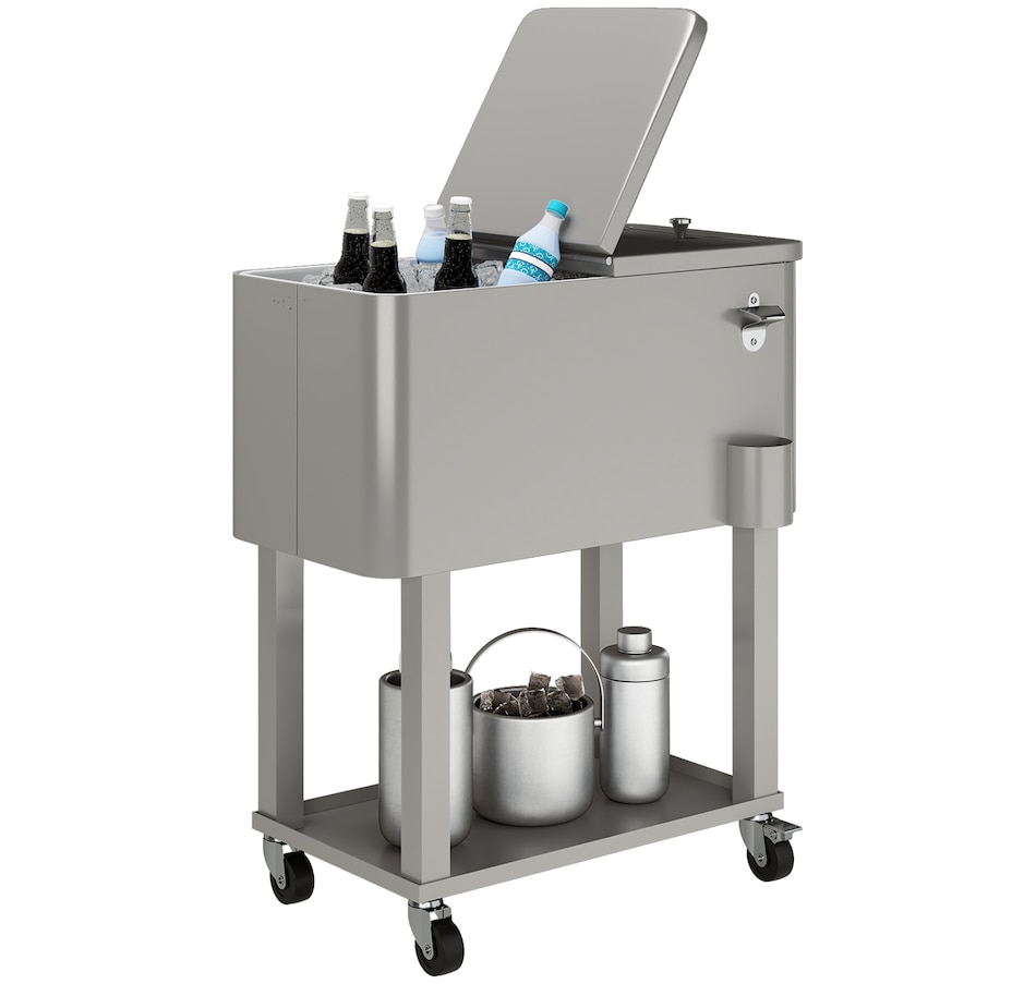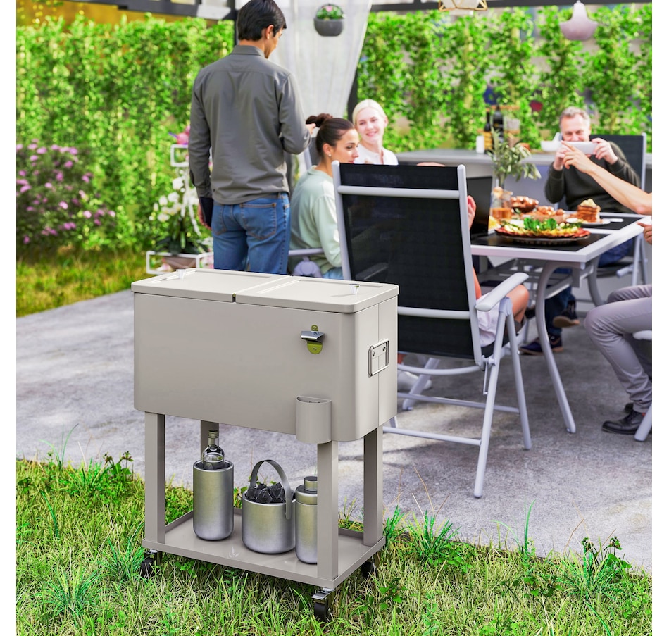 60qt Rolling Patio Cooler Cart, Portable Outdoor Cooler, Silver