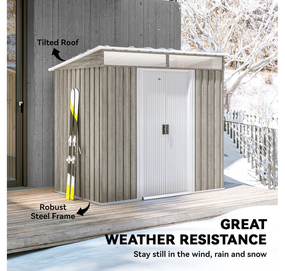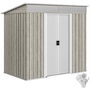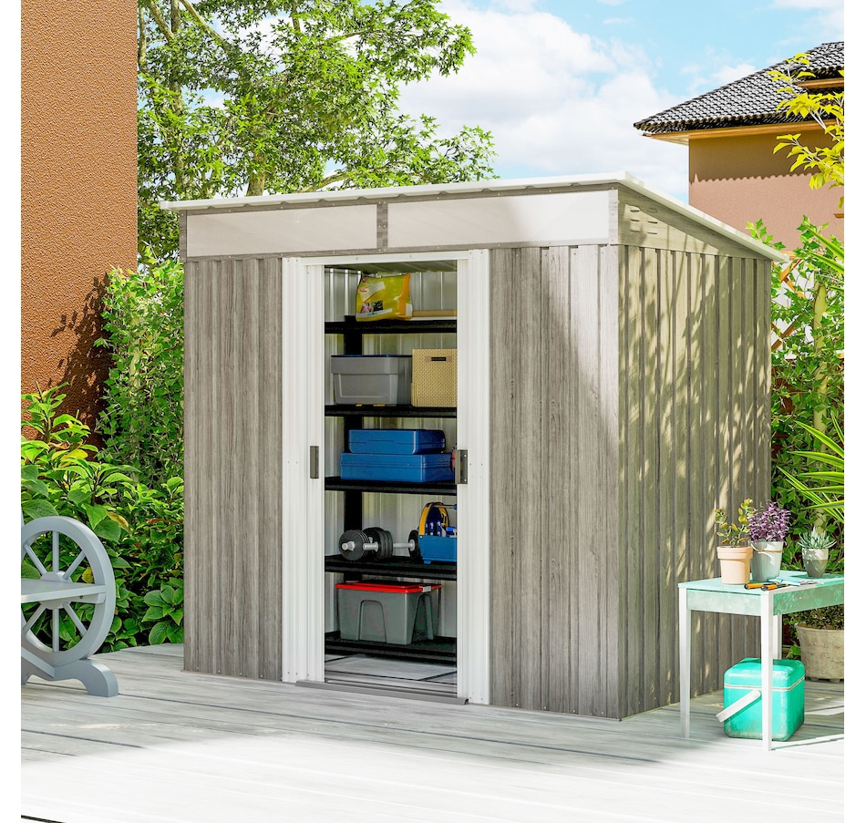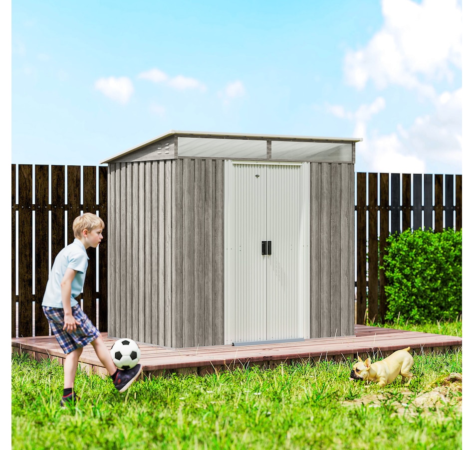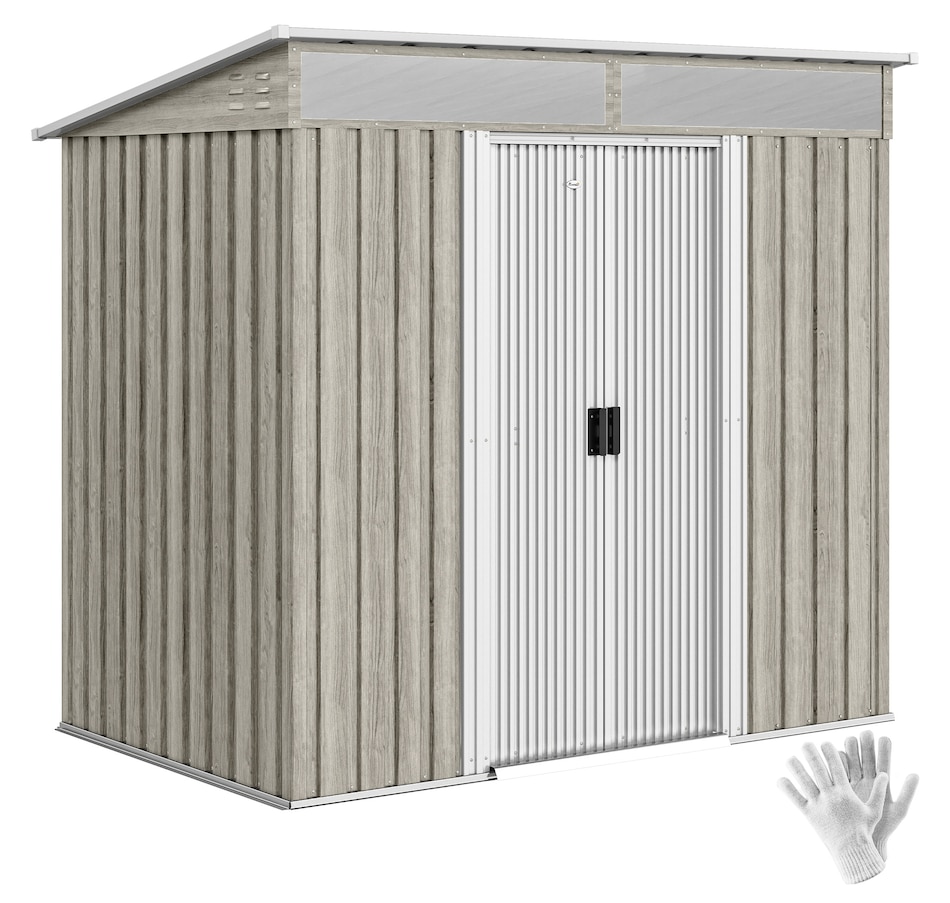 Easily add storage space and value to your property when you use an outdoor storage shed from Outsunny. Keep expensive equipment outside and out of harm's way with its waterproofed galvanised roof. Mitigate moisture and musty odours with ventilating windows. The door has a locking mechanism to keep tools safe from thieves and misuse. Roll out your lawnmower with space to spare. Feel free to place shovels, seeds soil and rakes. Get out, get productive, get Outsunny.