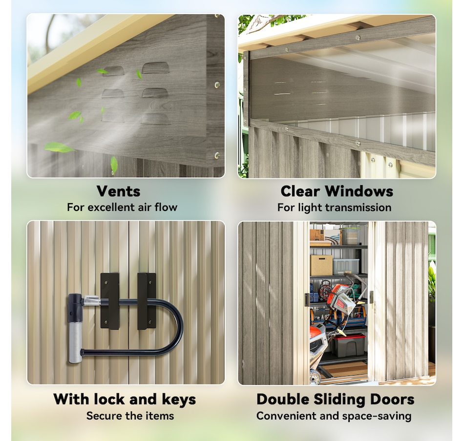 ● Works as a metal bike shed, a tool shed, a generator shed, or a lawn mower storage;