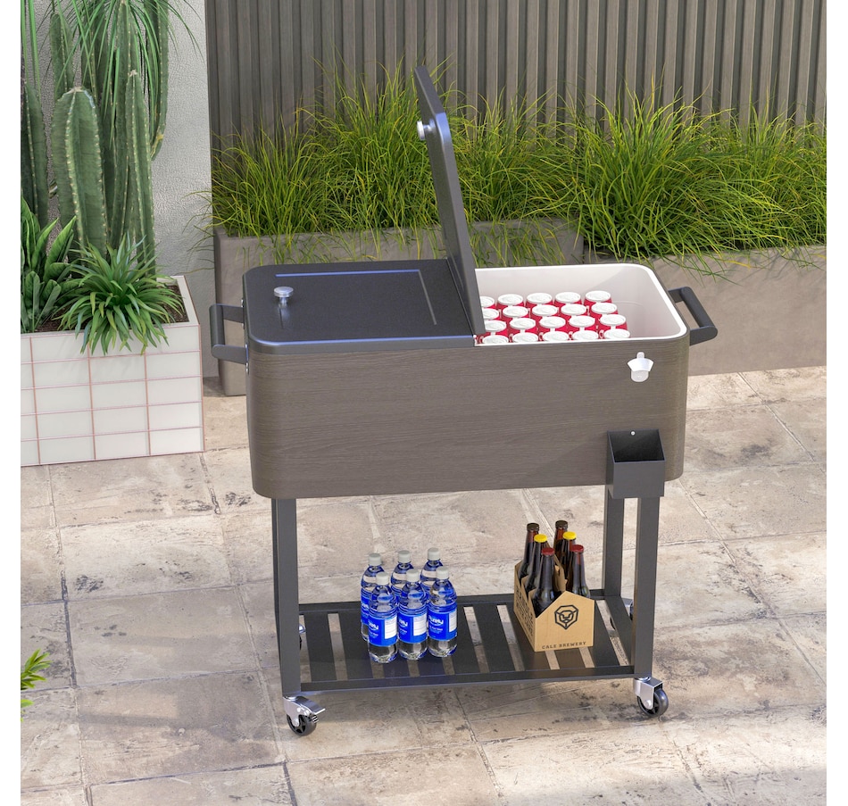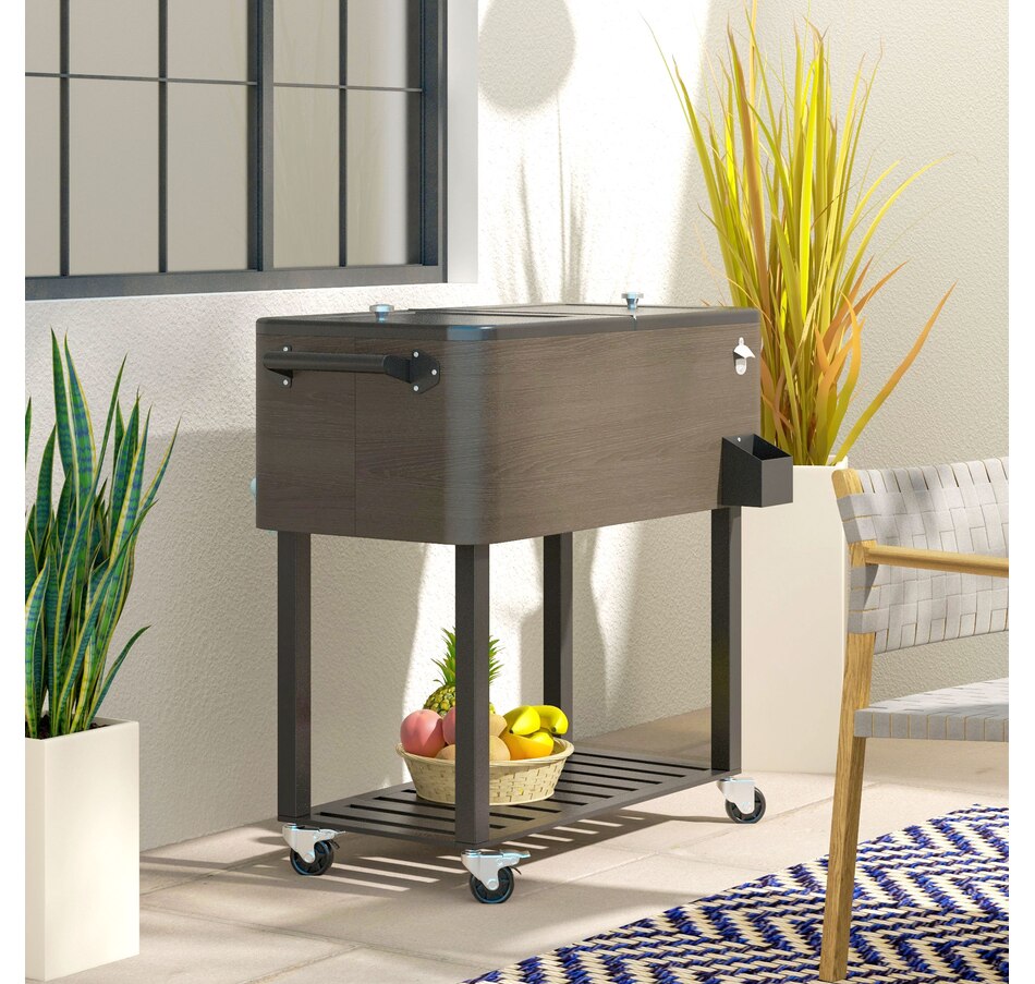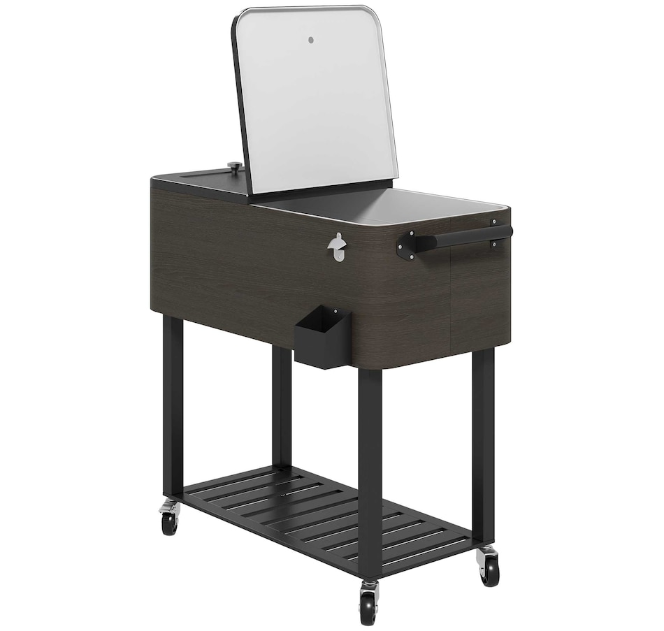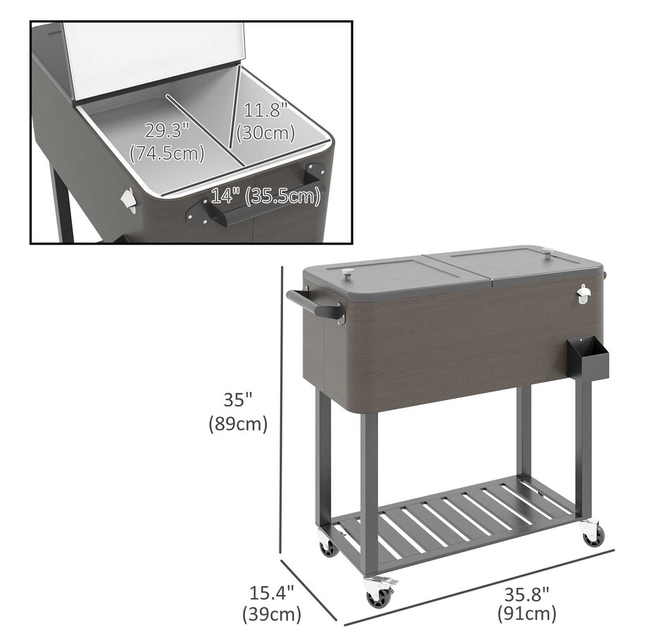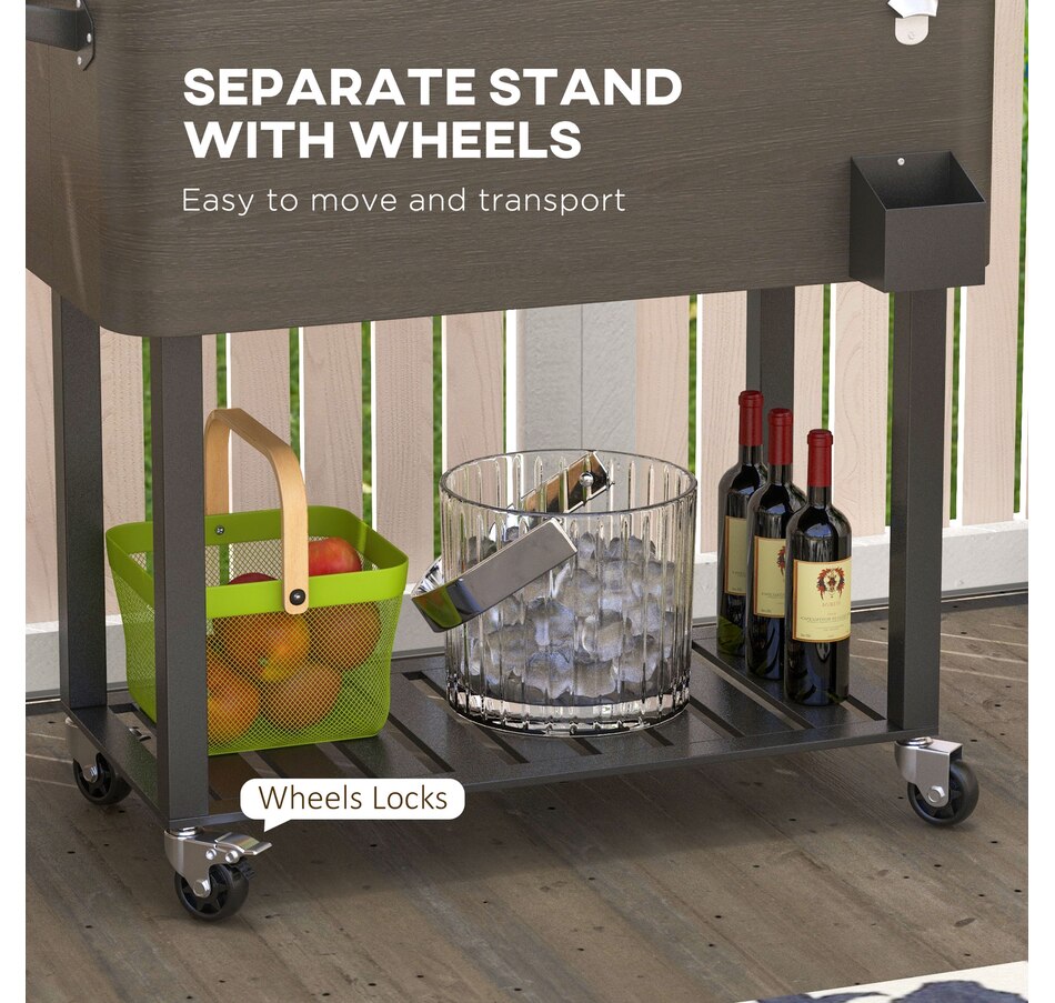Bring the party with you wherever you go with our cooler cart from Outsunny. With a large volume of 67qt, a weather resistant outer shell, and an inner box for insulation, this standing cooler keeps your beverages cool for longer periods. Whether you're hosting a backyard BBQ or enjoying a picnic, this ice chest with wheels is a must have to keep your refreshments chilled and easily accessible. Elevate your outdoor entertaining with the Outsunny outdoor cooler.