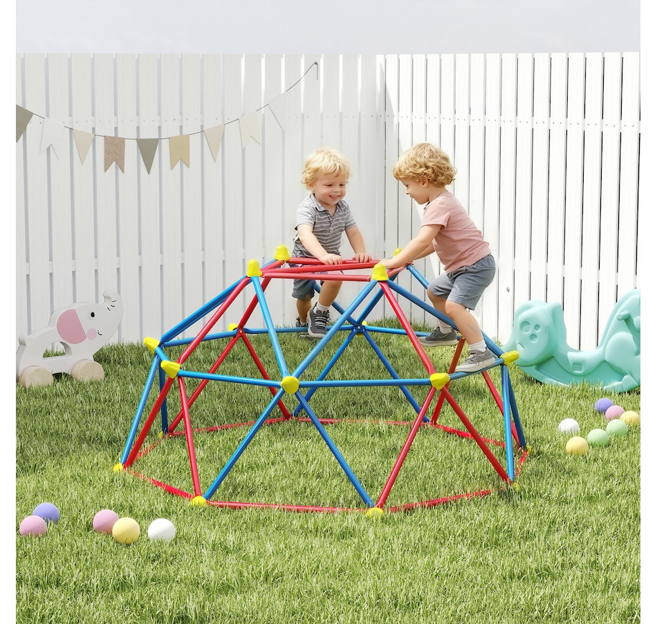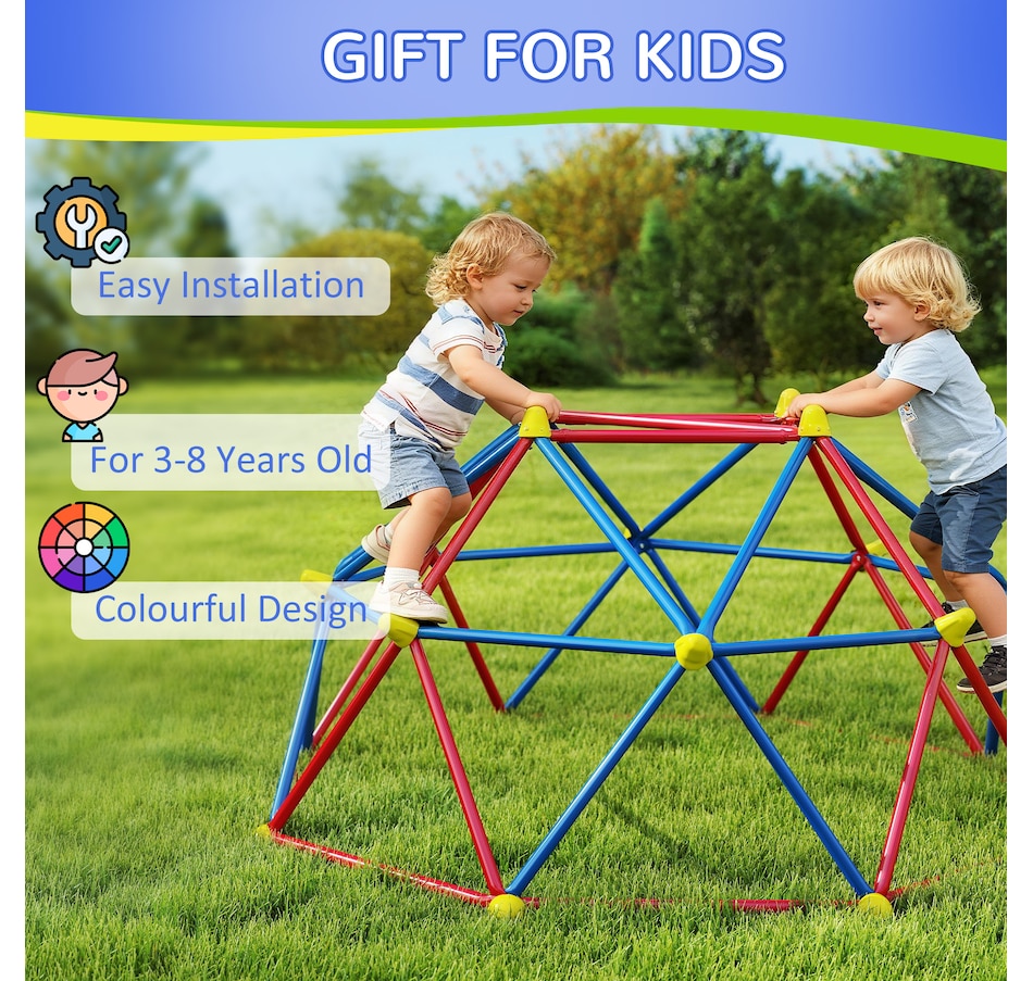 Ignite boundless excitement with our kids climbing dome! Crafted with a metal frame, it can withstand hours of energetic play. Ideally suited for 1-4 children, each up to 99 lbs. (45 kg), it encourages social interaction and enhances motor skills. Let their imagination run wild as they conquer new challenges and create unforgettable memories. Elevate their playtime to new heights with this thrilling climbing frame!Features: