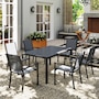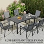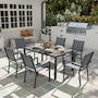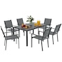 Transform your backyard with the Outsunny patio table and chairs, featuring a chic 59.1" (150 cm) rectangle table crafted from all-weather wood-plastic composite and six stackable chairs. Whether hosting a barbecue or enjoying a quiet meal, this dining table set combines style and functionality, ensuring a comfortable seating experience with its breathable mesh chairs. Suitable for any outdoor space!