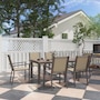 Love enjoying breakfast, lunch, or dinner outdoors during summer? The Outsunny 7-piece patio dining set is the great choice for family gatherings al fresco. It includes a large rectangular table and six matching chairs, all with powder-coated steel frames for weather resistance. Breathable mesh fabric chairs keep you cool, and their stackable design saves space in the off-season.