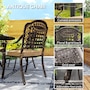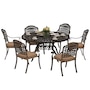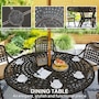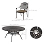 Enjoy weekend brunches and evening dinners outside with this Outsunny outdoor dining set for 6, featuring a round table and six matching chairs. Powder-coated cast aluminum frames with antique floral and grid patterns mean a strong and beautiful backyard furniture set. Each chair comes with a soft padded seat cushion to keep you comfortable. Aluminum top table features a center hole to hold a parasol, keeping shaded as you relax on the outdoor table and chairs set.Features: