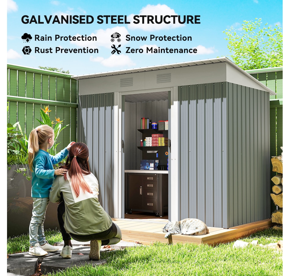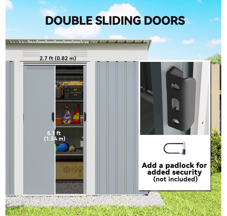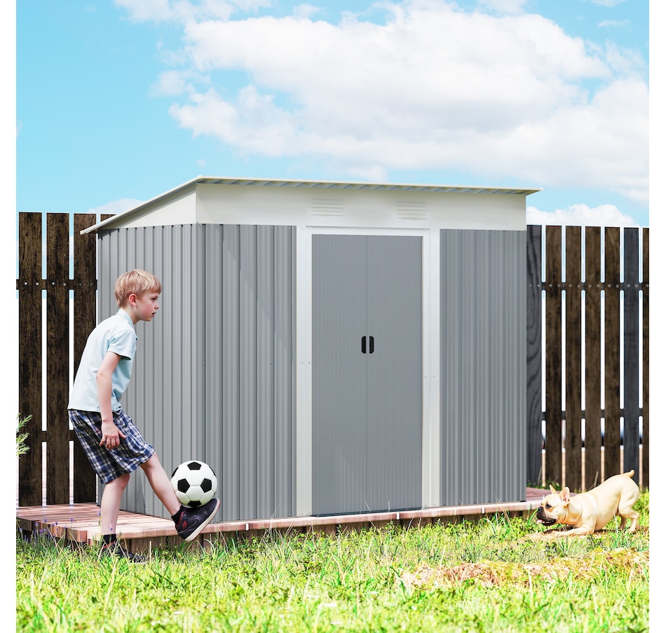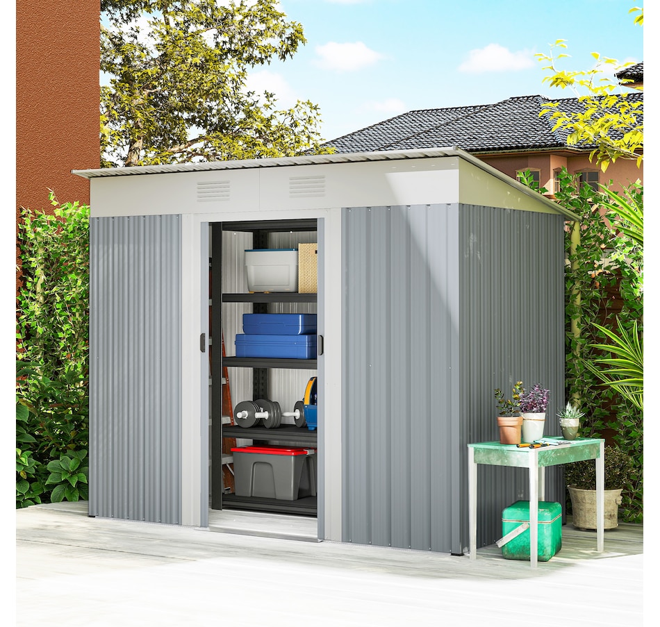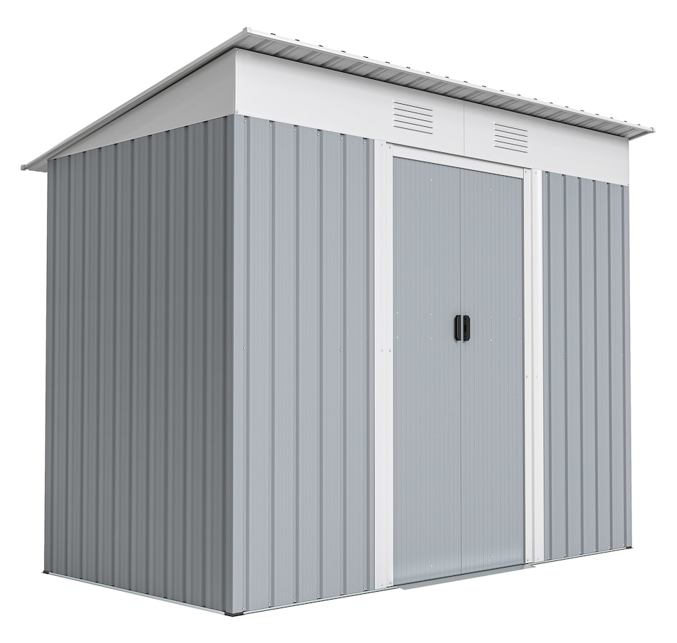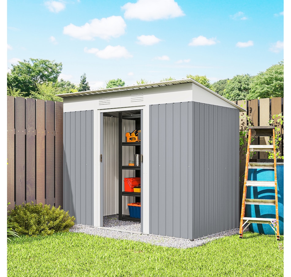 7' x 4' Metal Outdoor Storage Shed w/ Sliding Doors Grey