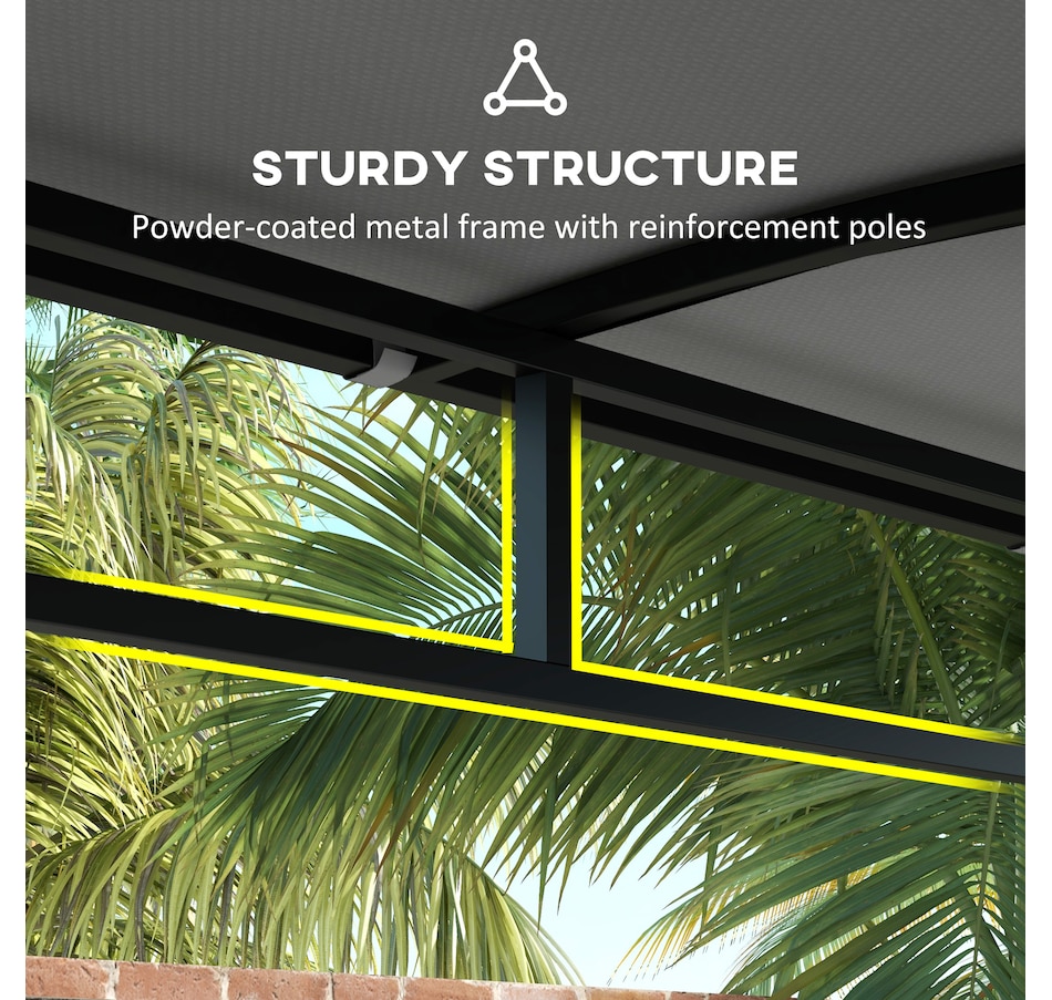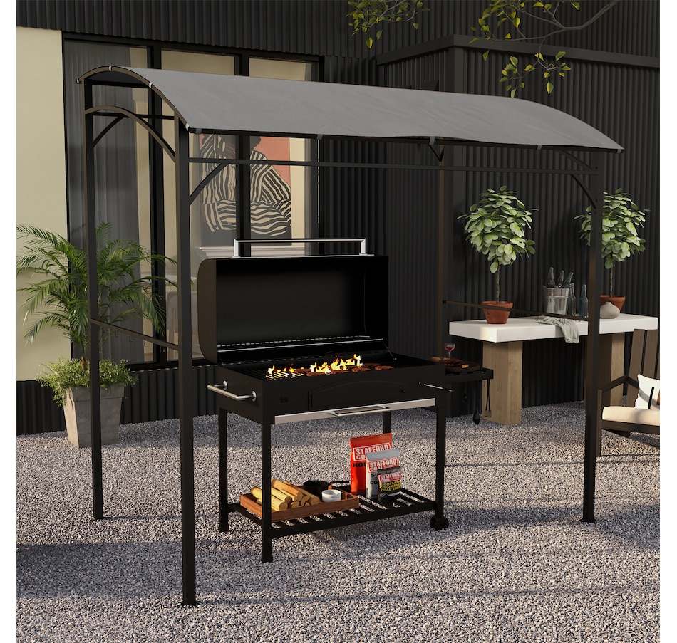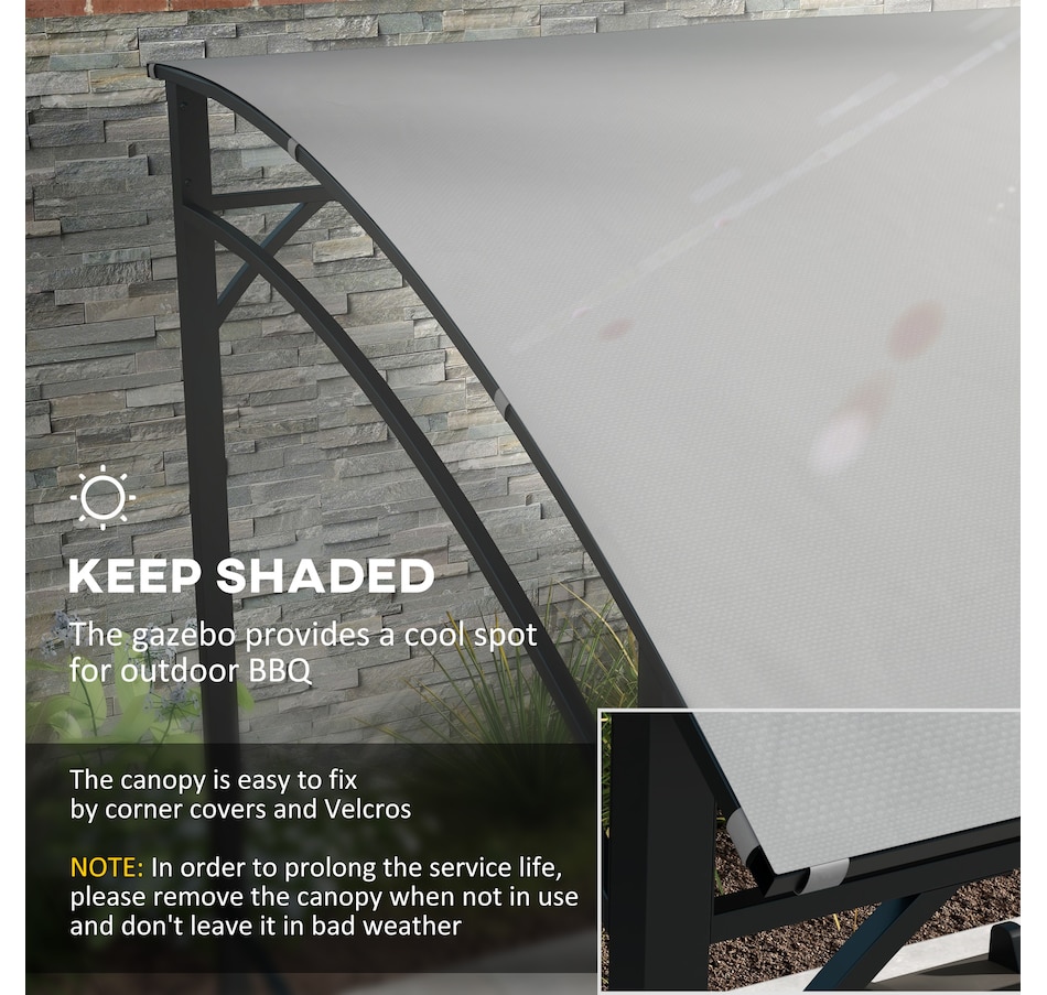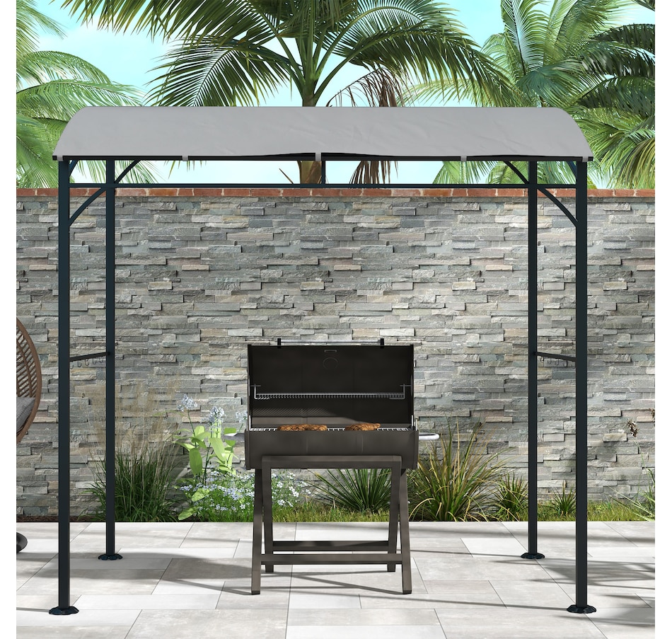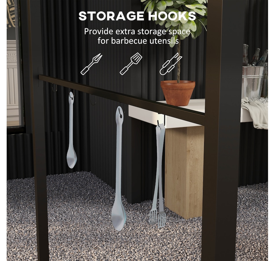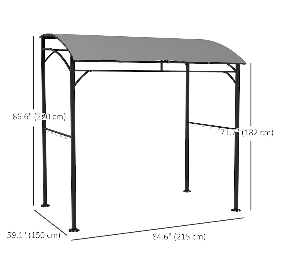 Protect your grill from the weather with this Outsunny gazebo for grill. The powder-coated steel frame is tough, and the polyester fabric is faded and water-resistant. The BBQ canopy gazebo includes hooks for hanging grill utensils or providing space to store food. The unique curved canopy design not only protects your grill, but it's also good-looking! Make grilling convenient in any weather condition with this grill tent.