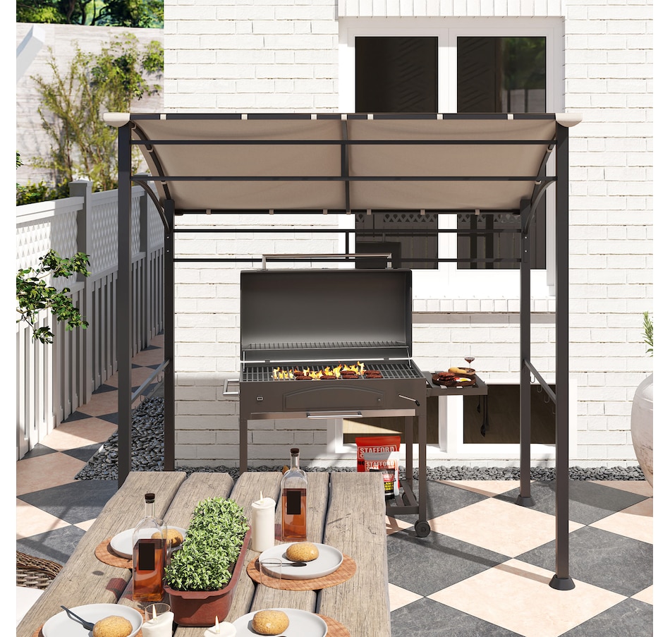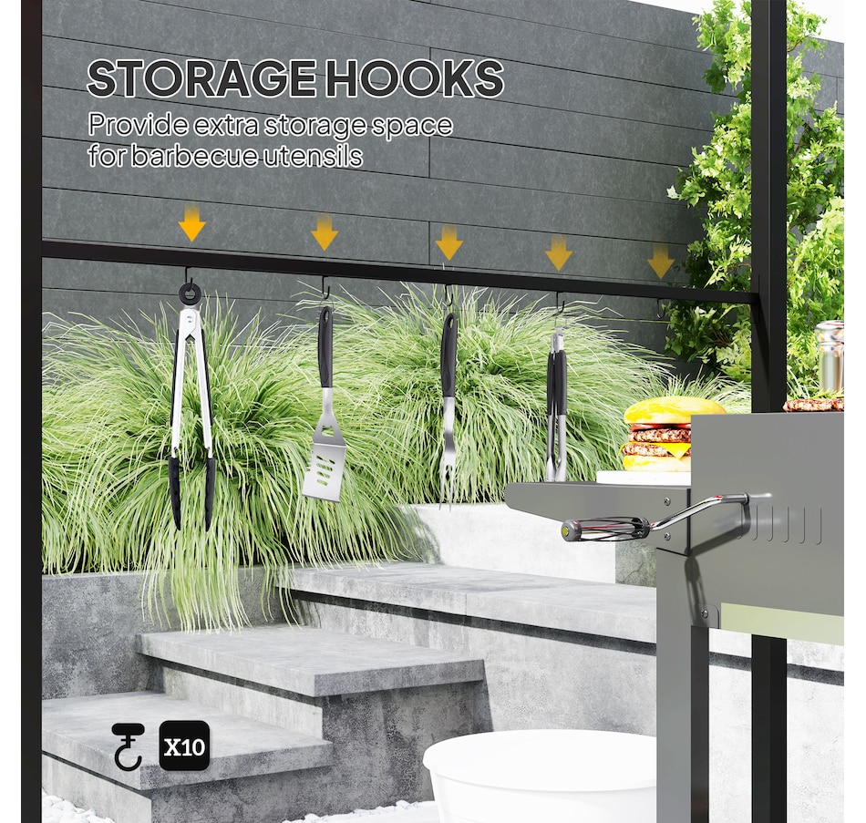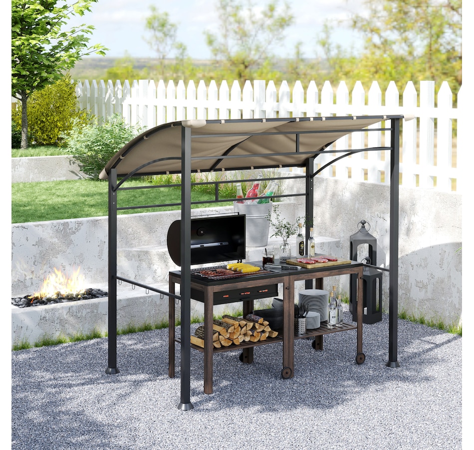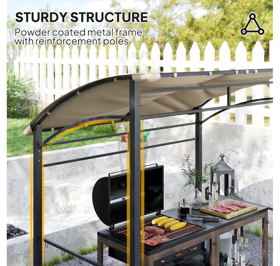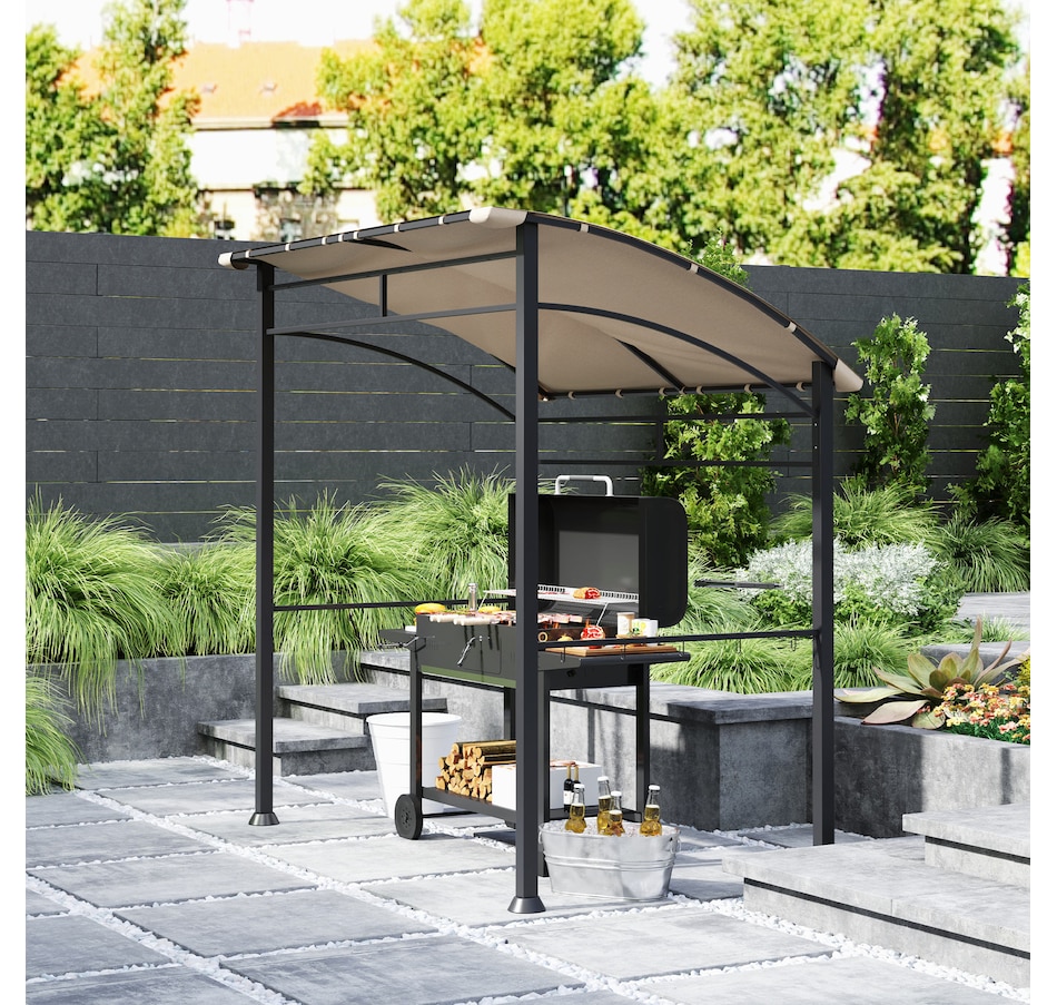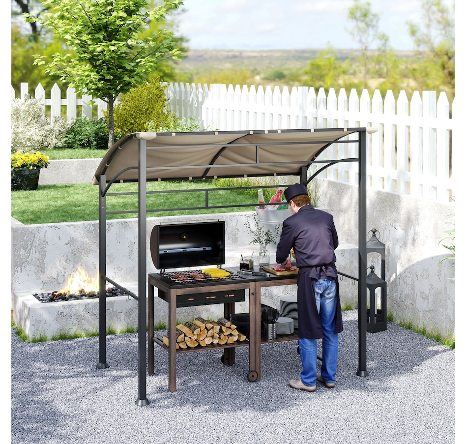 Protect your grill from the weather with this Outsunny gazebo for grill. The powder-coated steel frame is tough, and the polyester fabric is faded and water-resistant. The BBQ canopy gazebo includes hooks for hanging grill utensils or providing space to store food. The unique curved canopy design not only protects your grill, but it's also good-looking! Make grilling convenient in any weather condition with this grill tent.