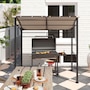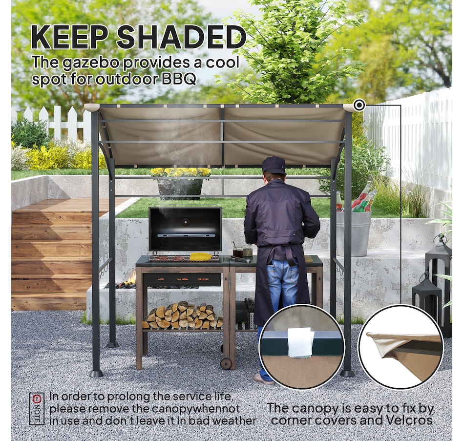 7' x 5' BBQ Grill Gazebo Tent with Steel Frame Hooks Khaki