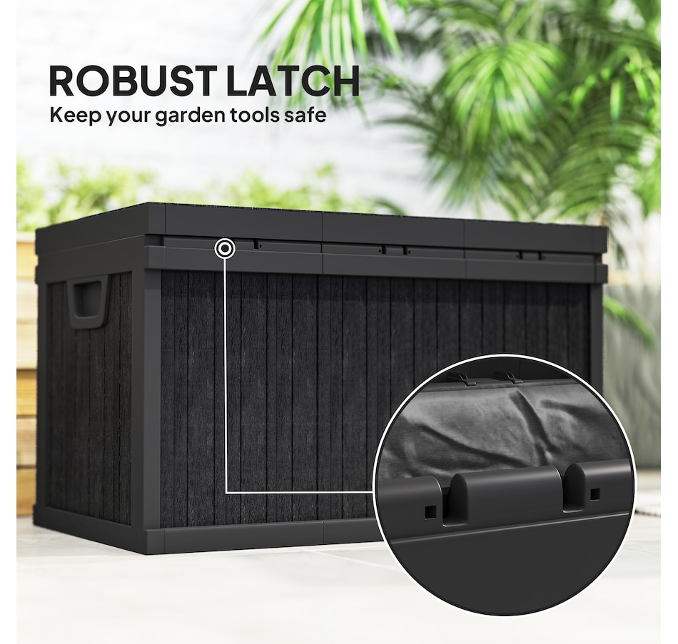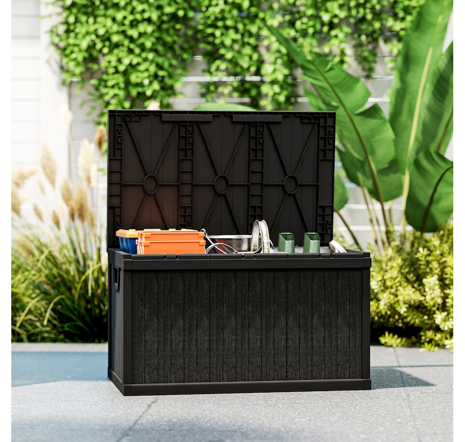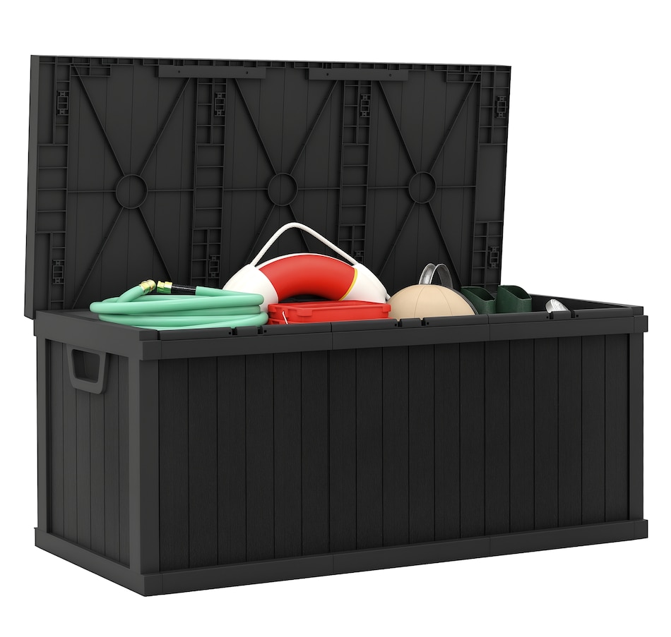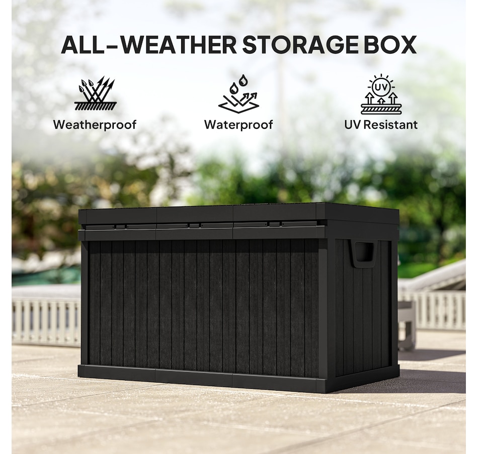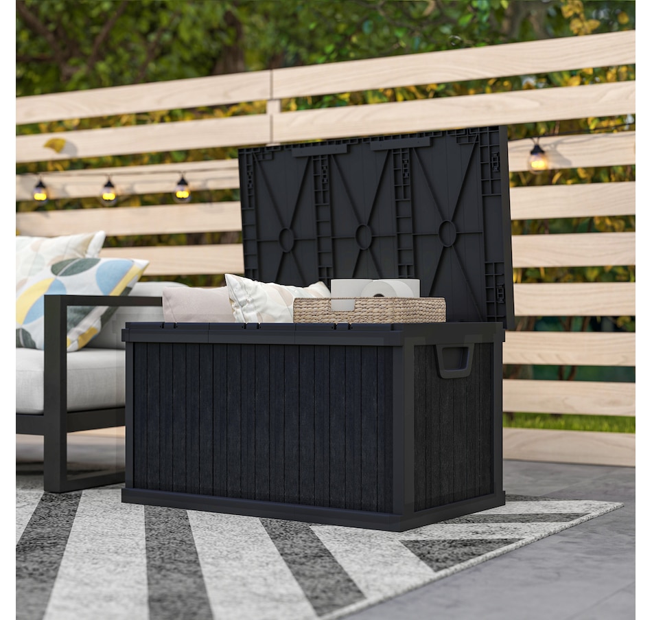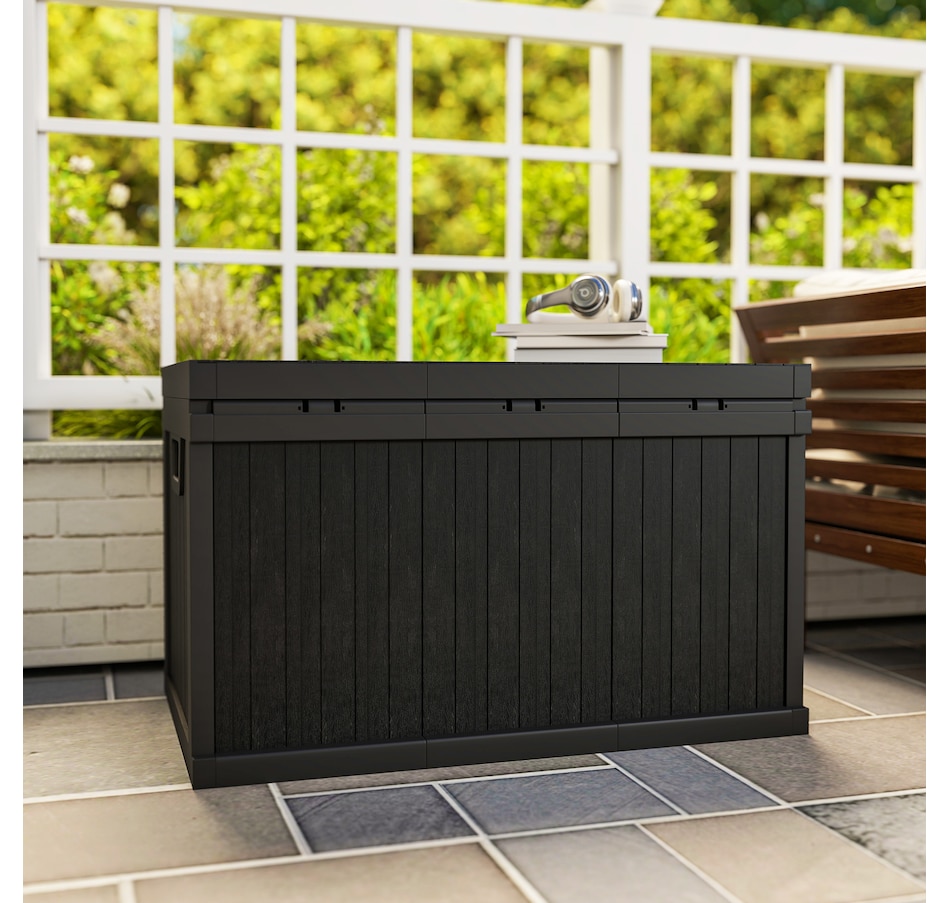 70 Gallon Deck Box, Resin Outdoor Storage Box with Handles, Black