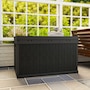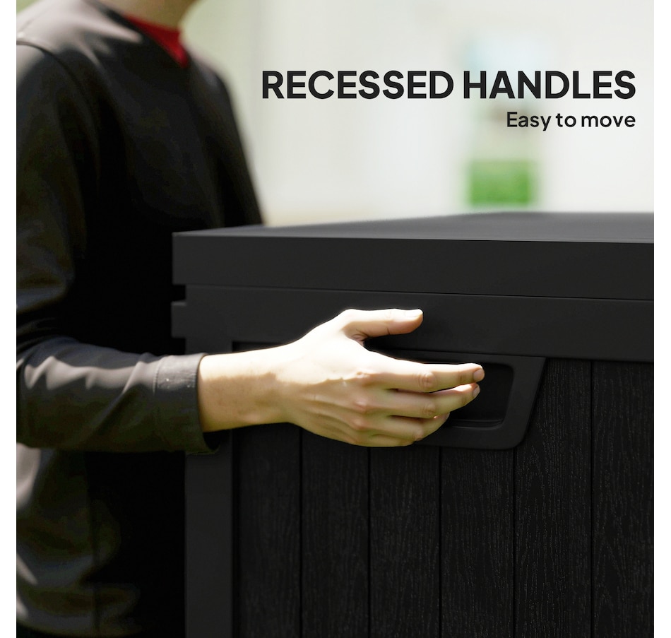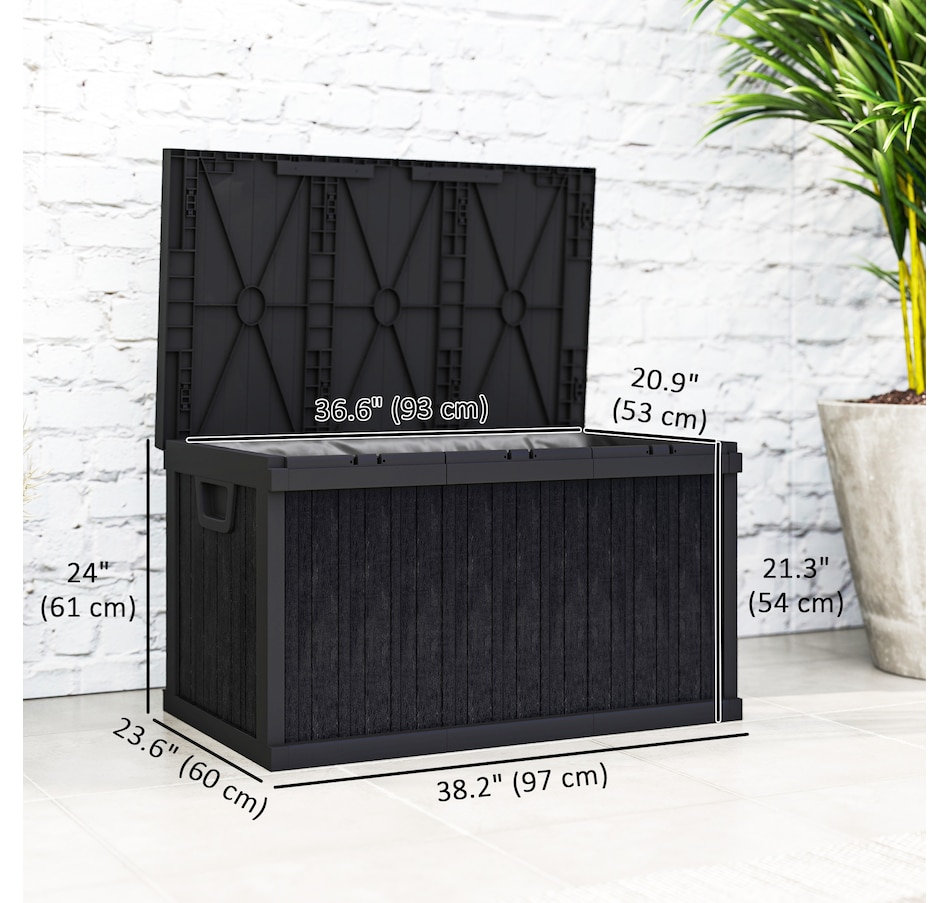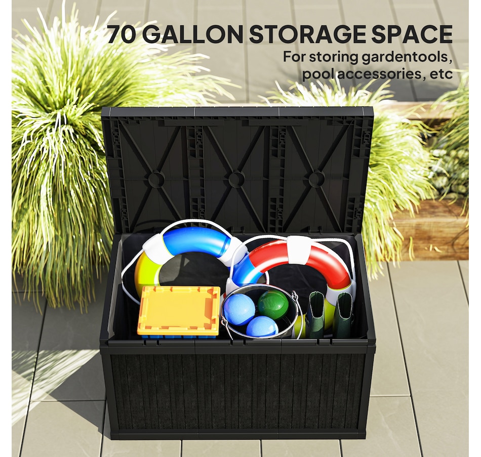Discover the Outsunny outdoor storage box, your new ally in organizing outdoor spaces! Boasting a roomy 70-gallon interior, this deck storage box crafted from waterproof PP material shields your belongings from weather woes. Plus, the built-in handles make accessing your patio storage box a breeze, ensuring everything stays safe and within reach.Features: