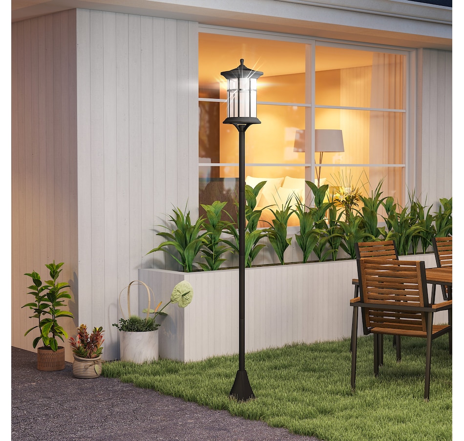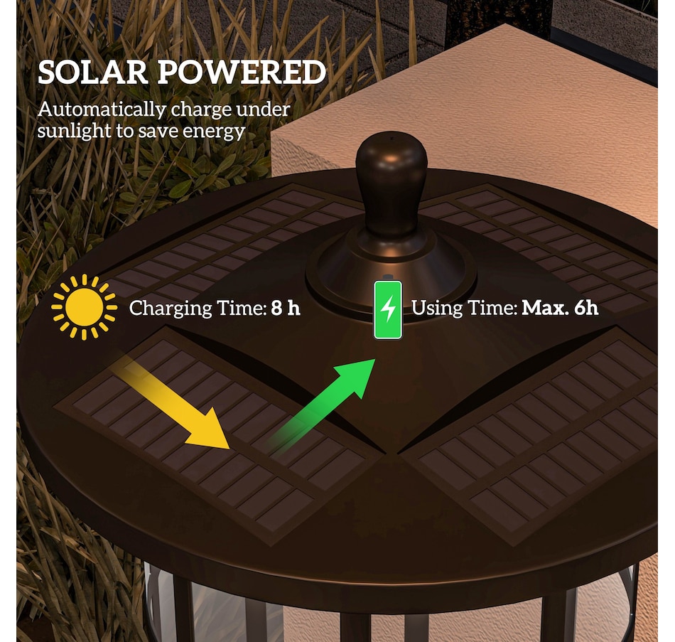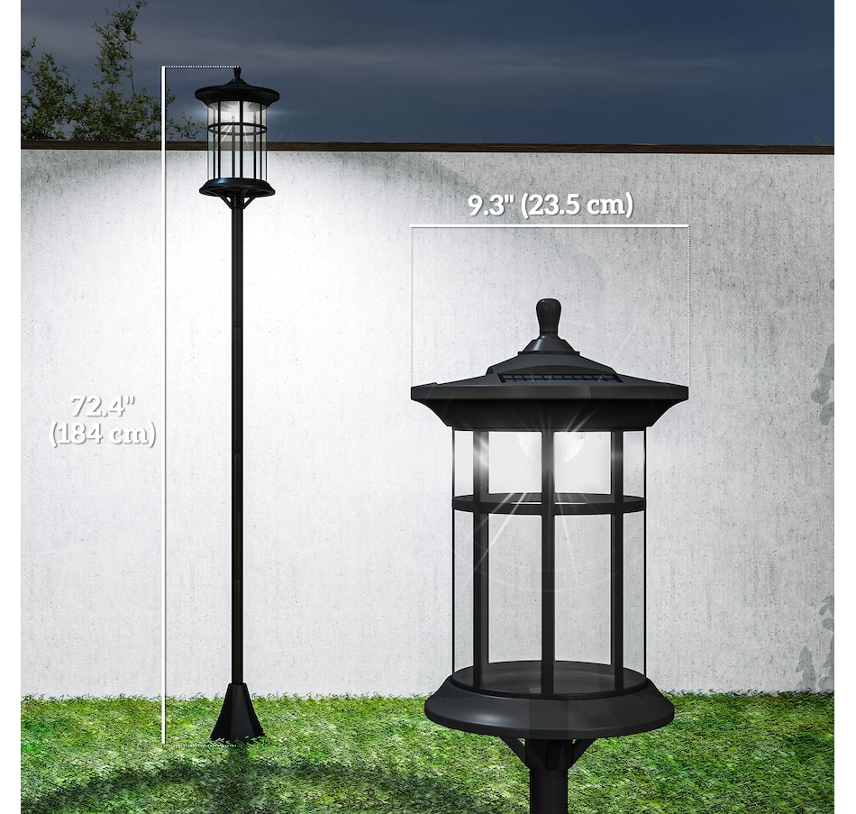 Bask in the glow of Outsunny's solar post light, designed to charge under normal sunlight for 8 hours and illuminate your outdoors for 6 hours. As day turns to night, it automatically lights up your space and fades with the dawn, ensuring seamless transition. Weatherproof with an IP44 rating, this solar street lamp stands tall in any condition, effortlessly anchoring into the soil.Features: