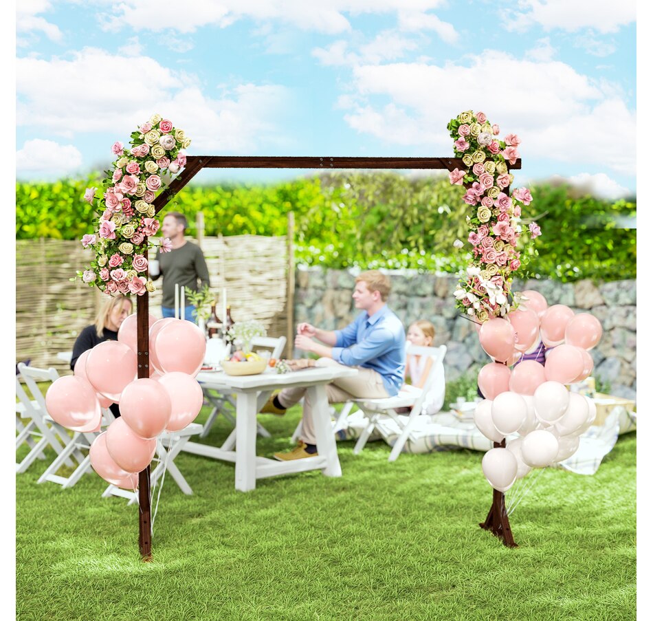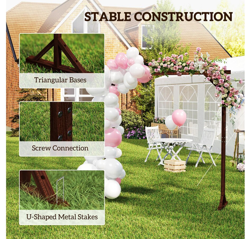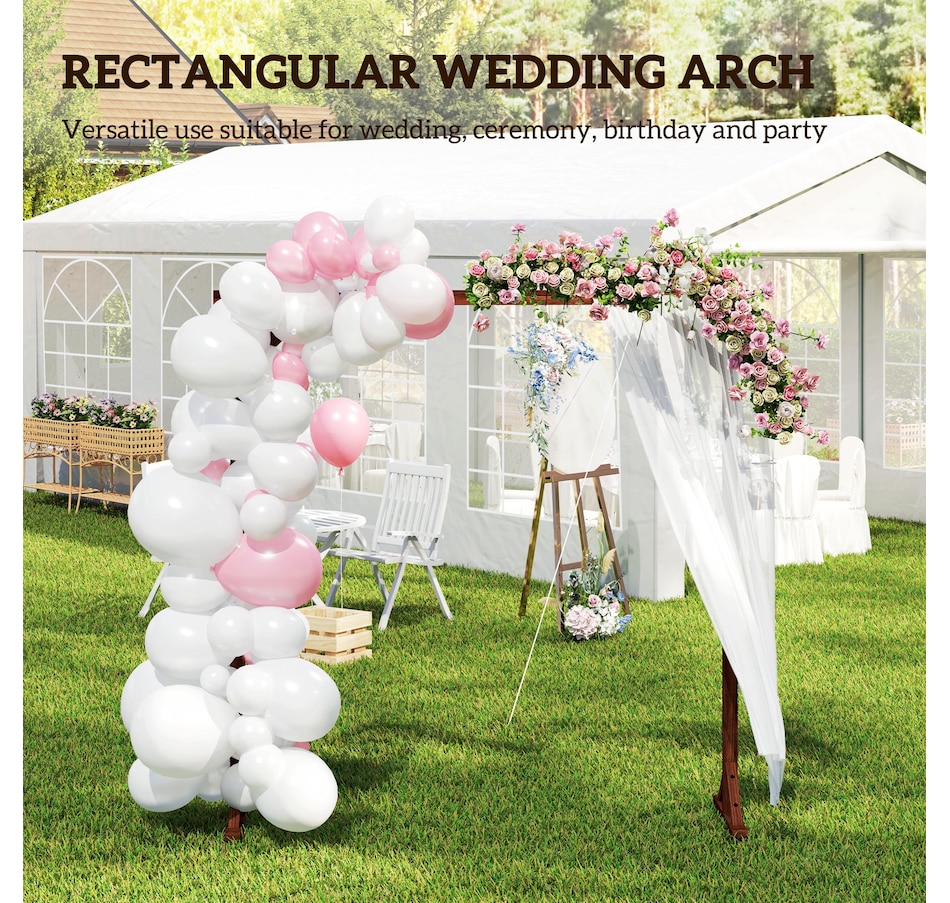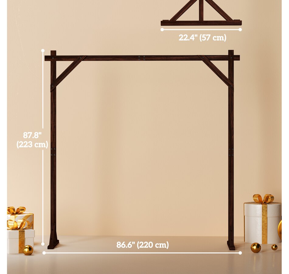 Transform your garden into a picturesque haven with the Outsunny arch backdrop. Its classic rectangular shape effortlessly complements any setting, while the natural fir wood offers lasting charm with its polished and painted finish. Stable triangular bases, secured by screws and U-shaped stakes, ensure stability, making it's suitable for weddings, or a delightful arch stand for celebrations.Features: