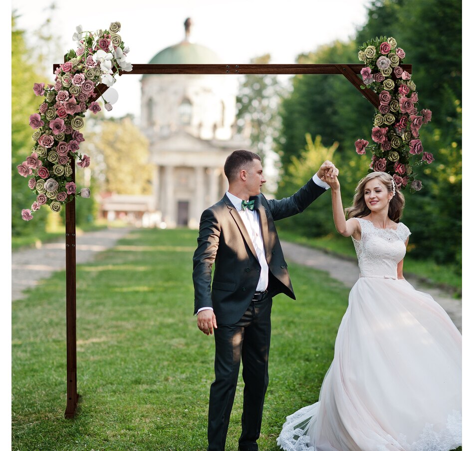 7FT Wedding Arch, Rectangular Wooden Arch for Ceremony, Dark Brown