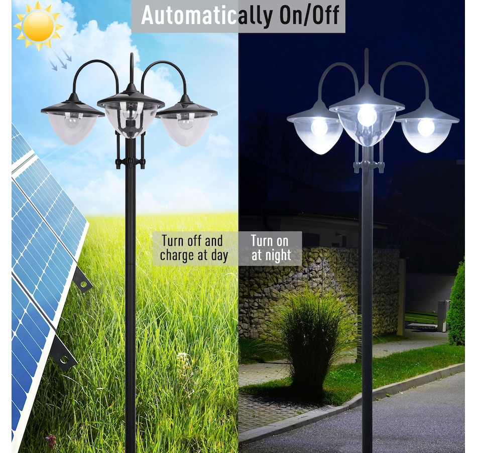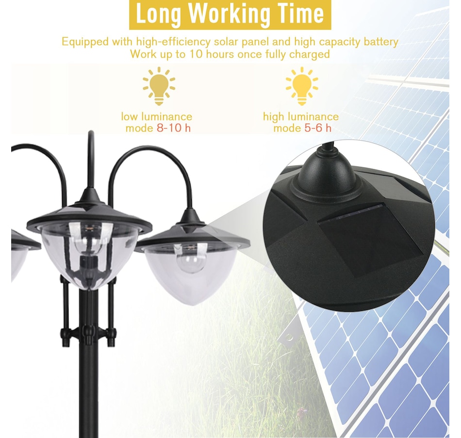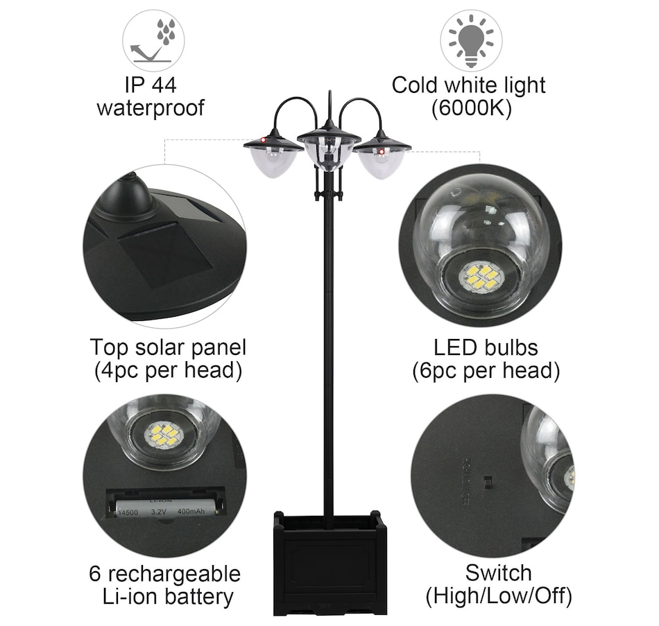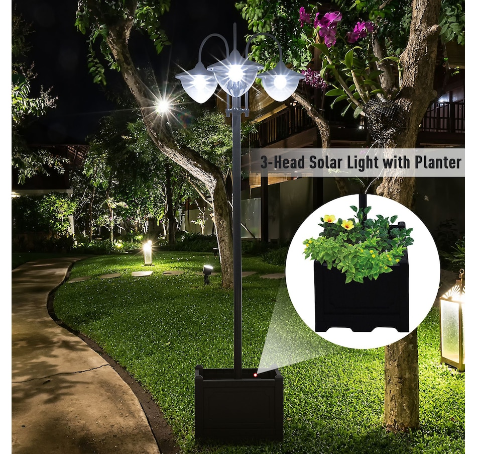 74.5" 3-head Solar Lamp Post Street Light with Planter