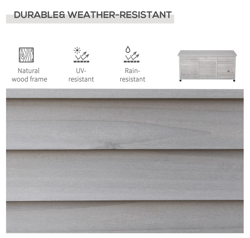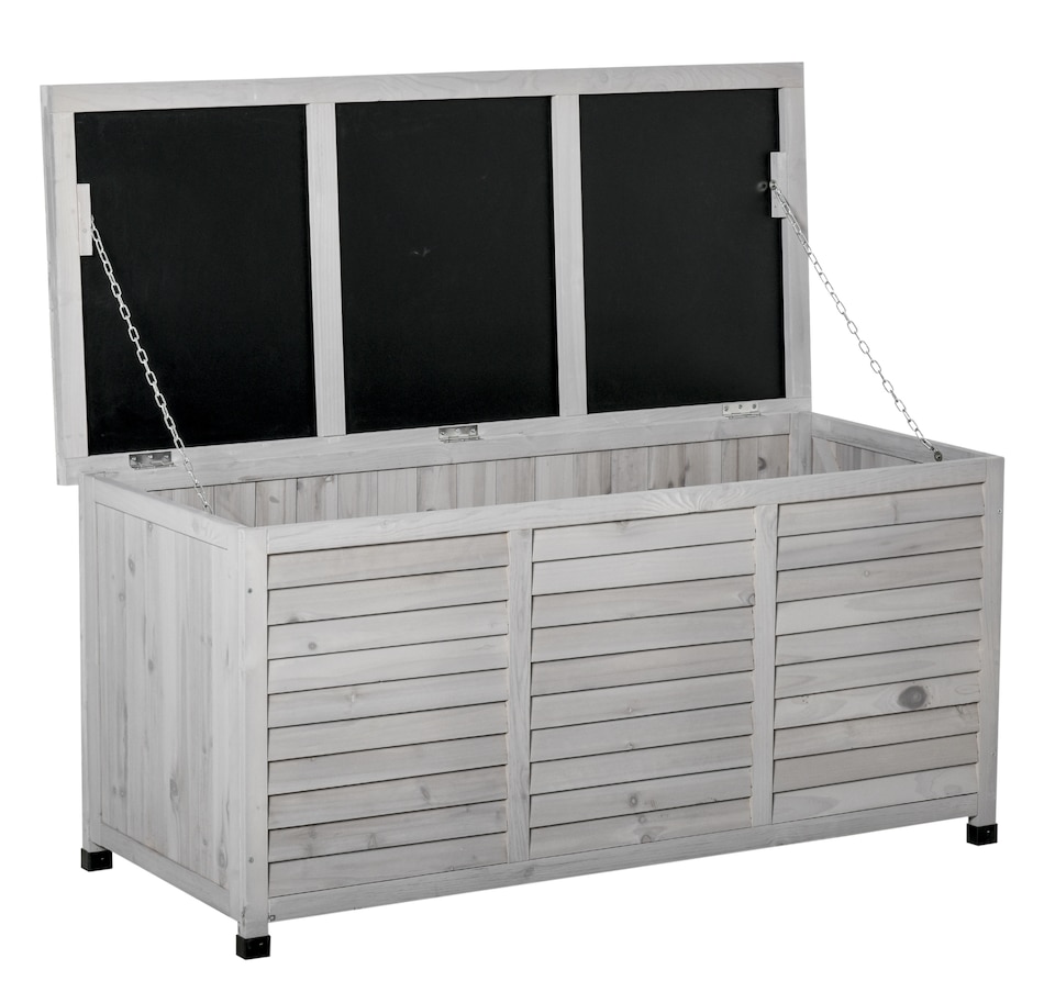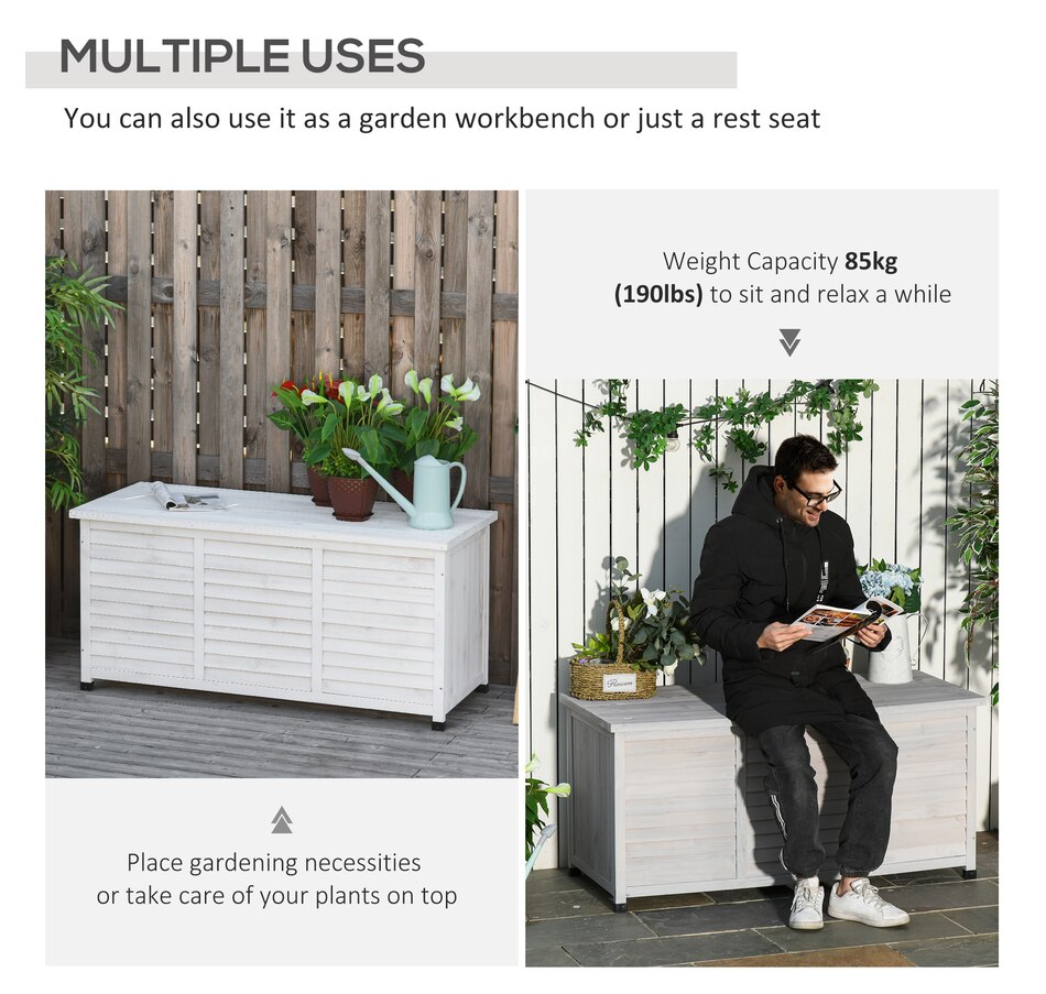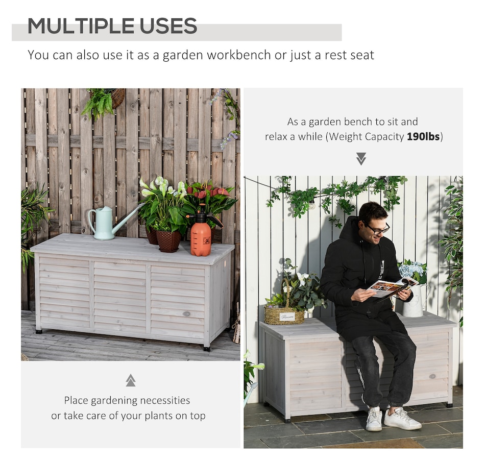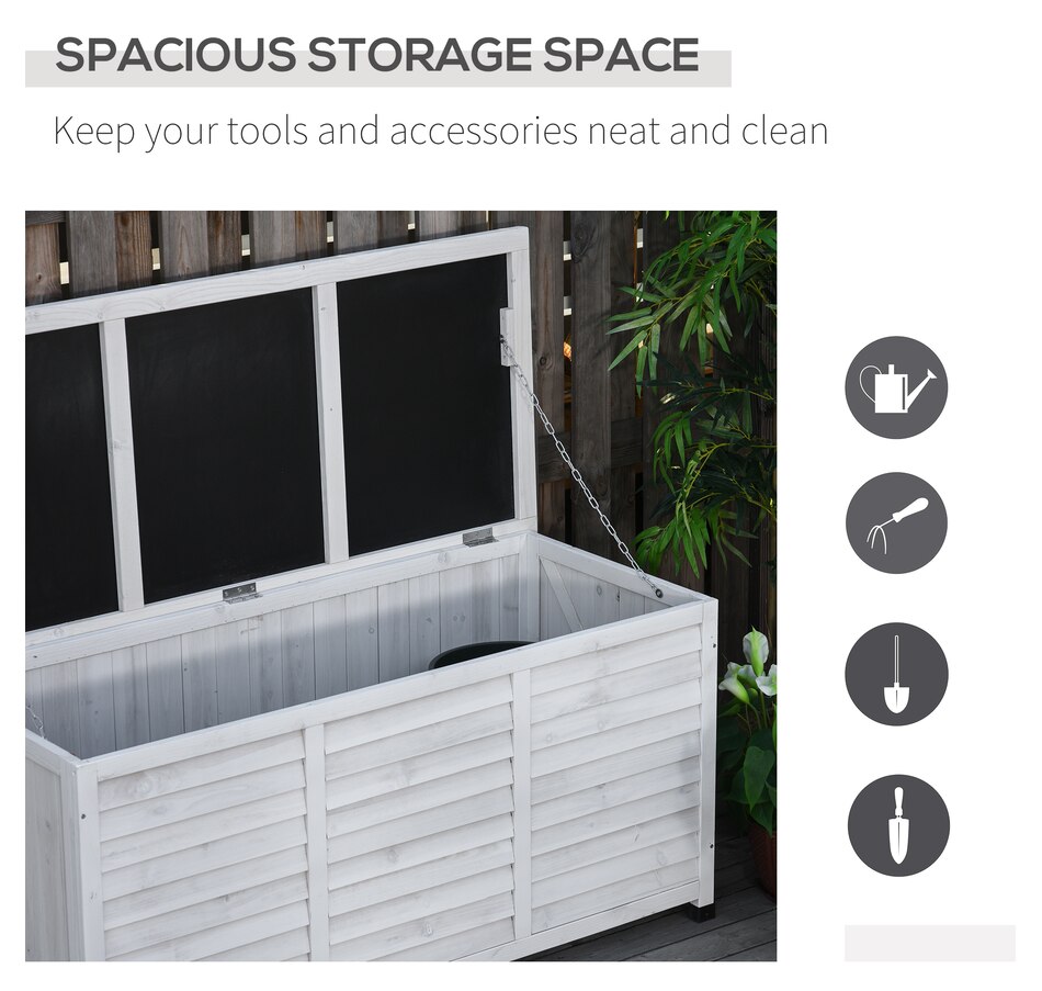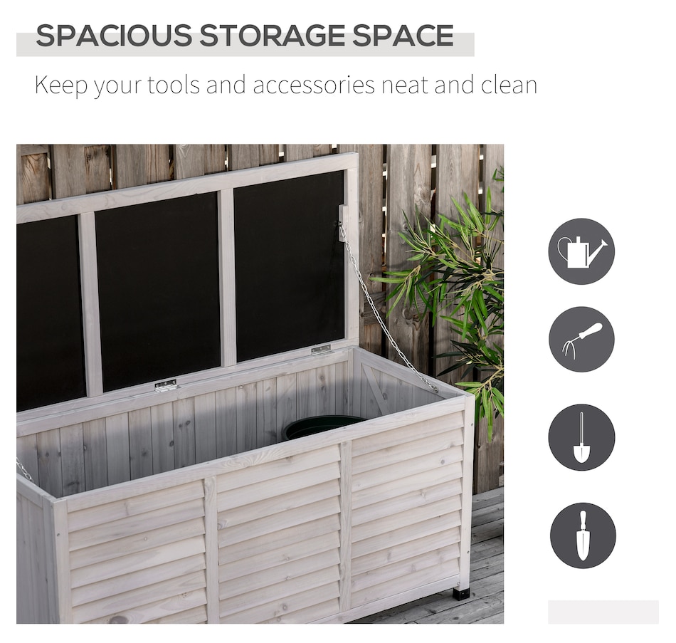This Outsunny outdoor storage box is an great solution to have in your garden, backyard, and deck. With a large size, the deck box is a great place to store tools and garden equipment. Made with wood and water-fighting paint, the wood storage box is protected from the surrounding, and sure to last. Furthermore, it could also be used as a garden workbench or just as a nice place to sit and rest. Check out this outdoor storage box from Outsunny, and get a place to store your outdoor tools.